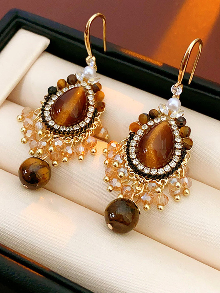 Pendientes vintage de aleación con diamantes de imitación y circonitas para mujer