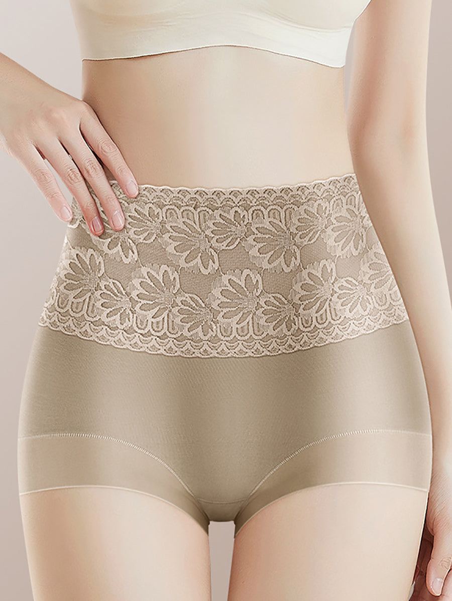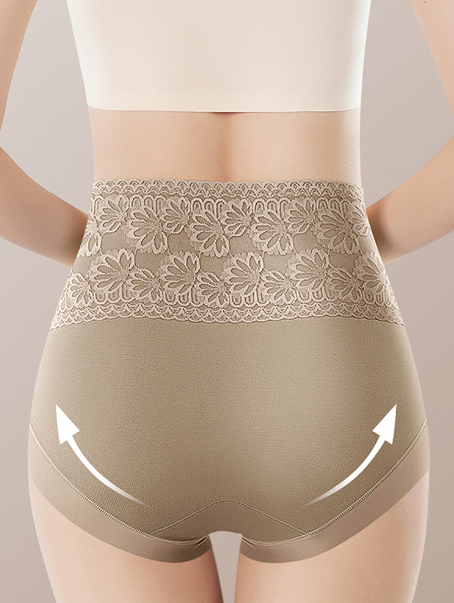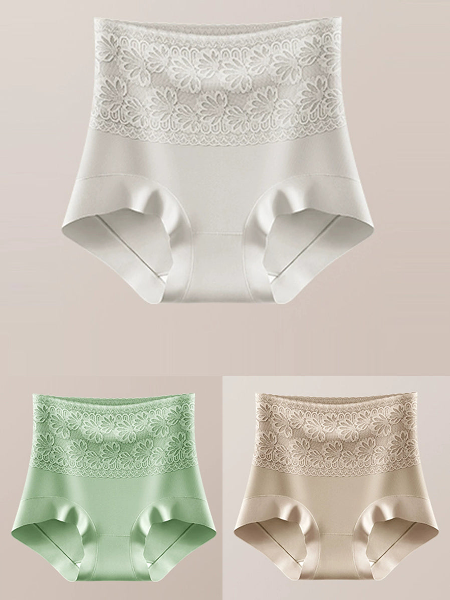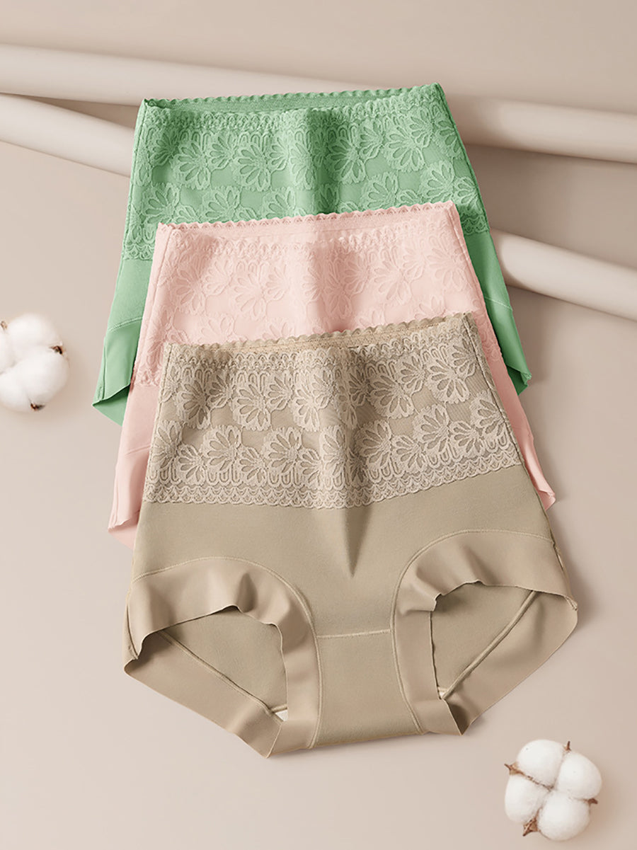 3 piezas de ropa interior de cintura alta con flores artísticas para mujer