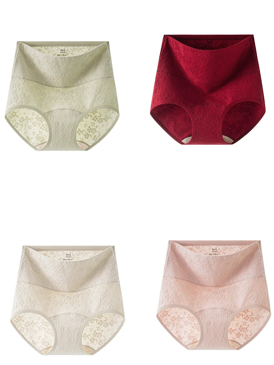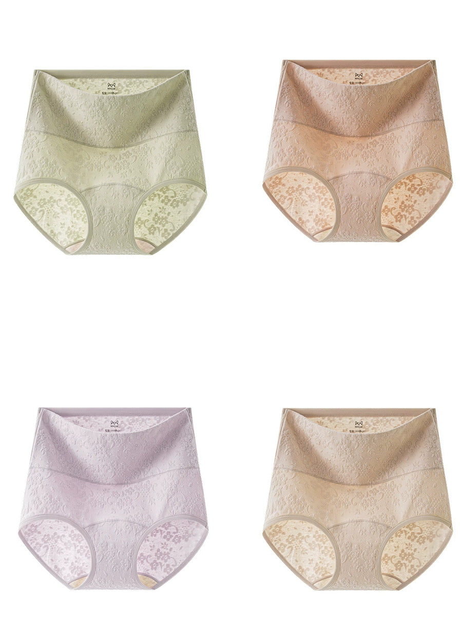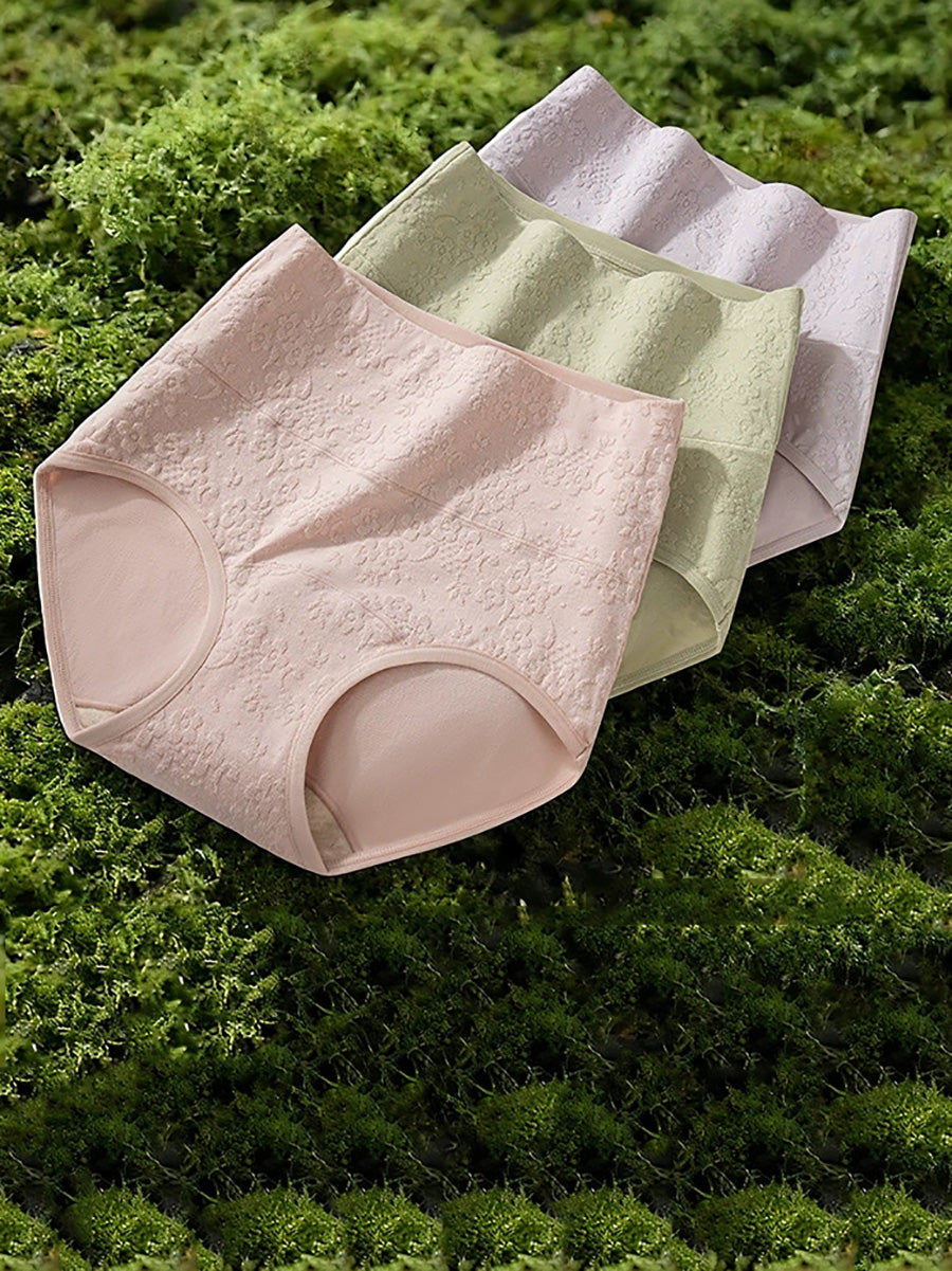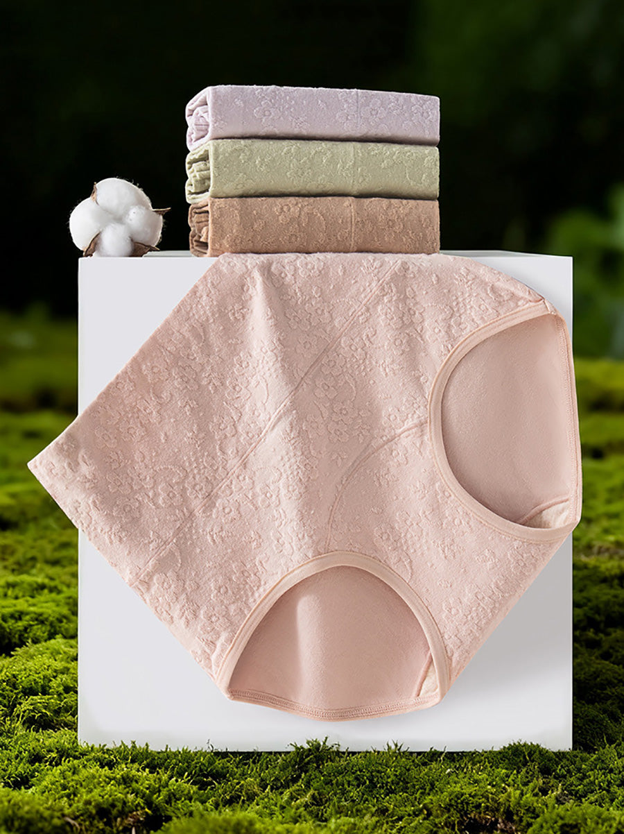 4 piezas de ropa interior de cintura alta con estampado floral artístico para mujer