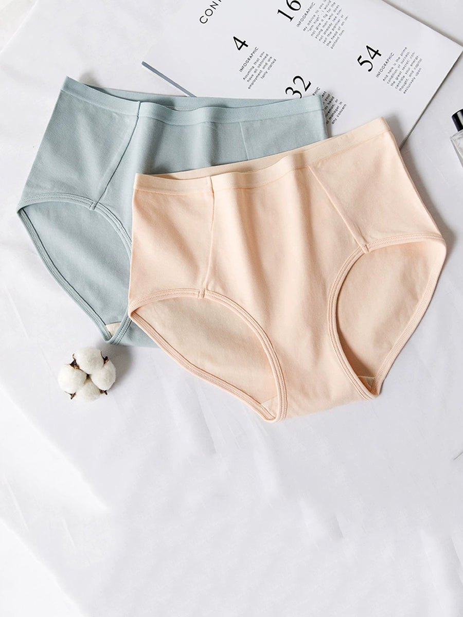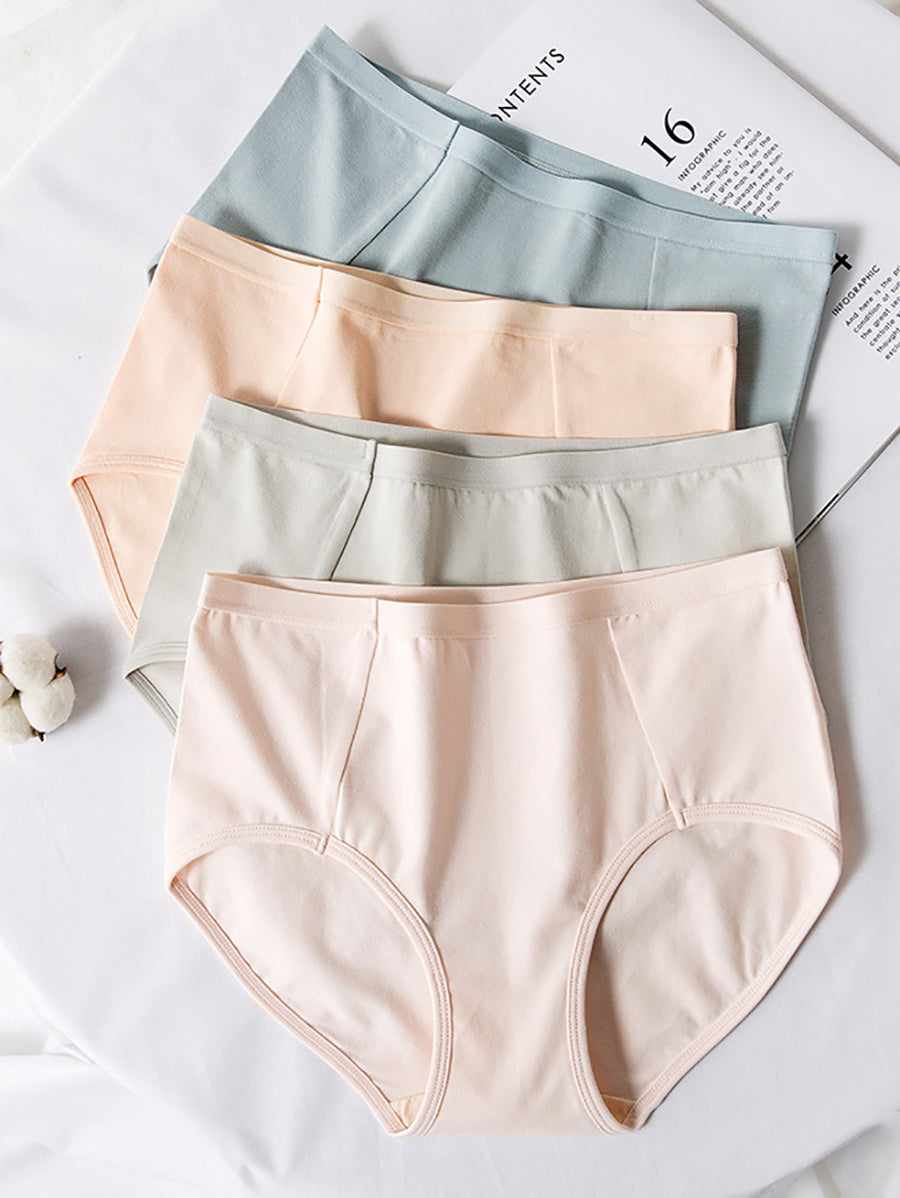 4 piezas de ropa interior casual de cintura alta de color puro para mujer