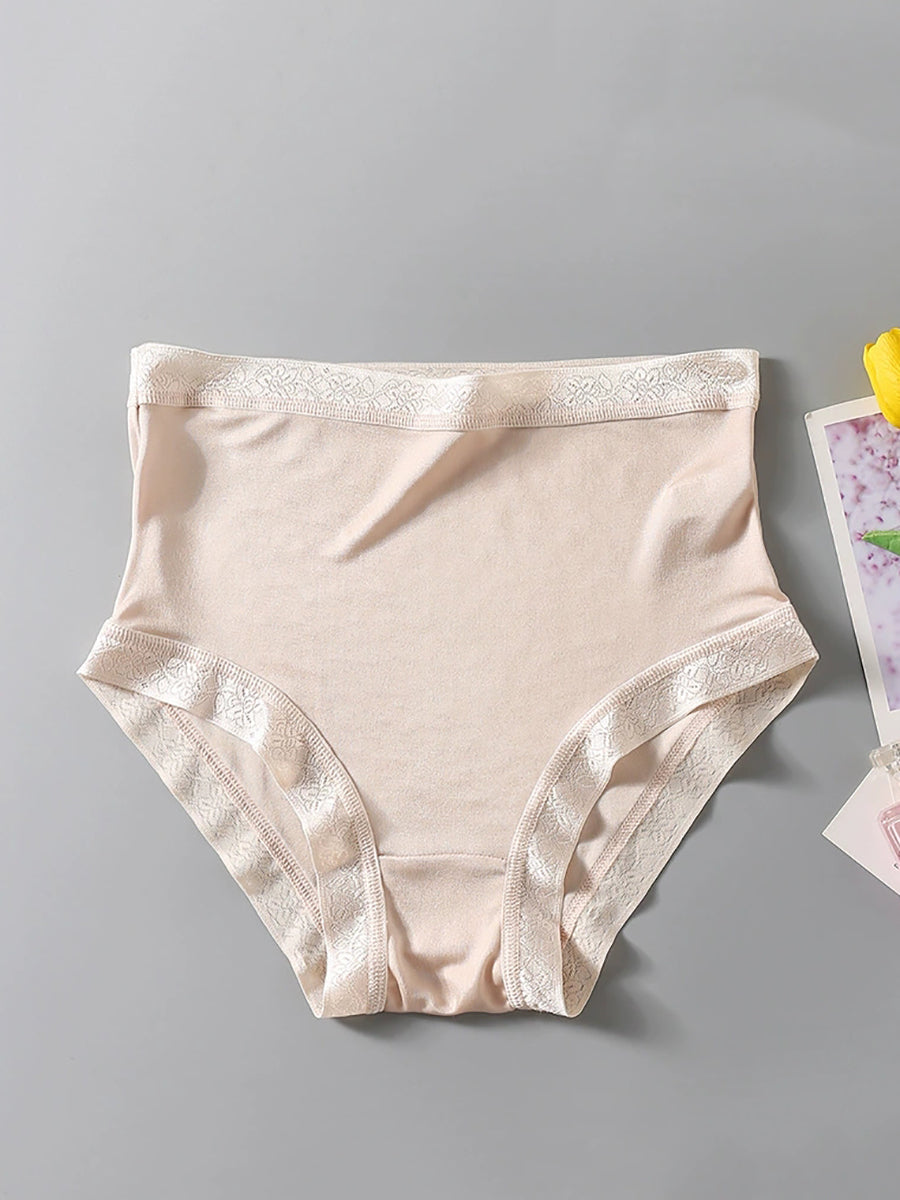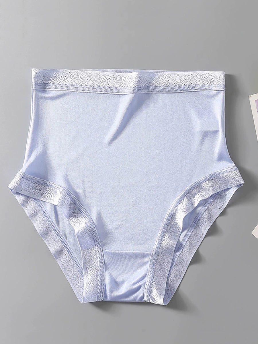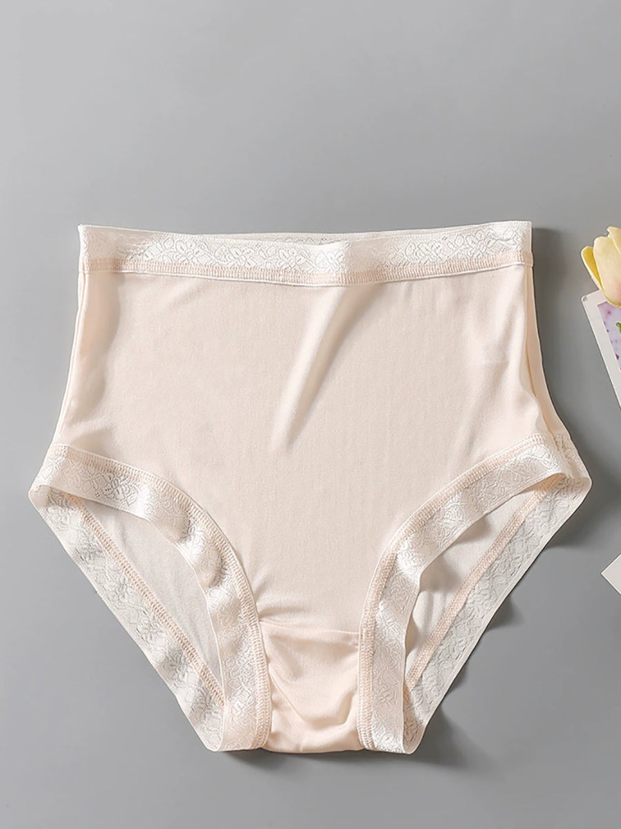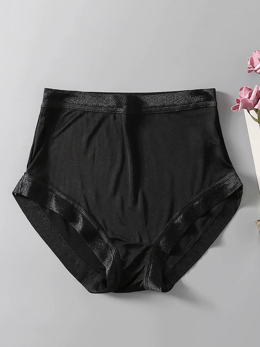 Ropa interior de seda de cintura alta de color puro y artístico para mujer