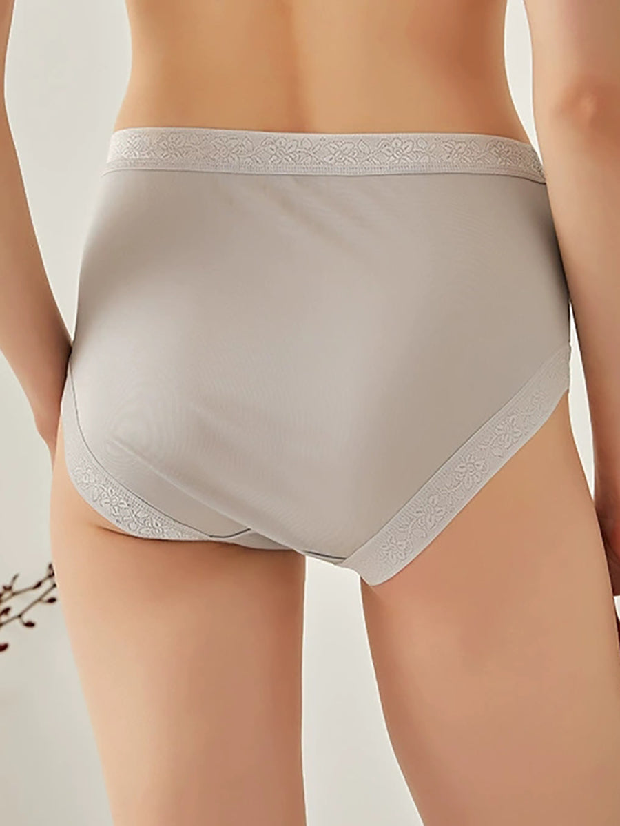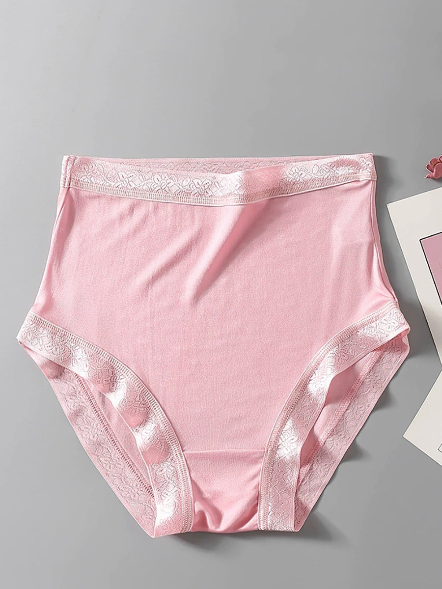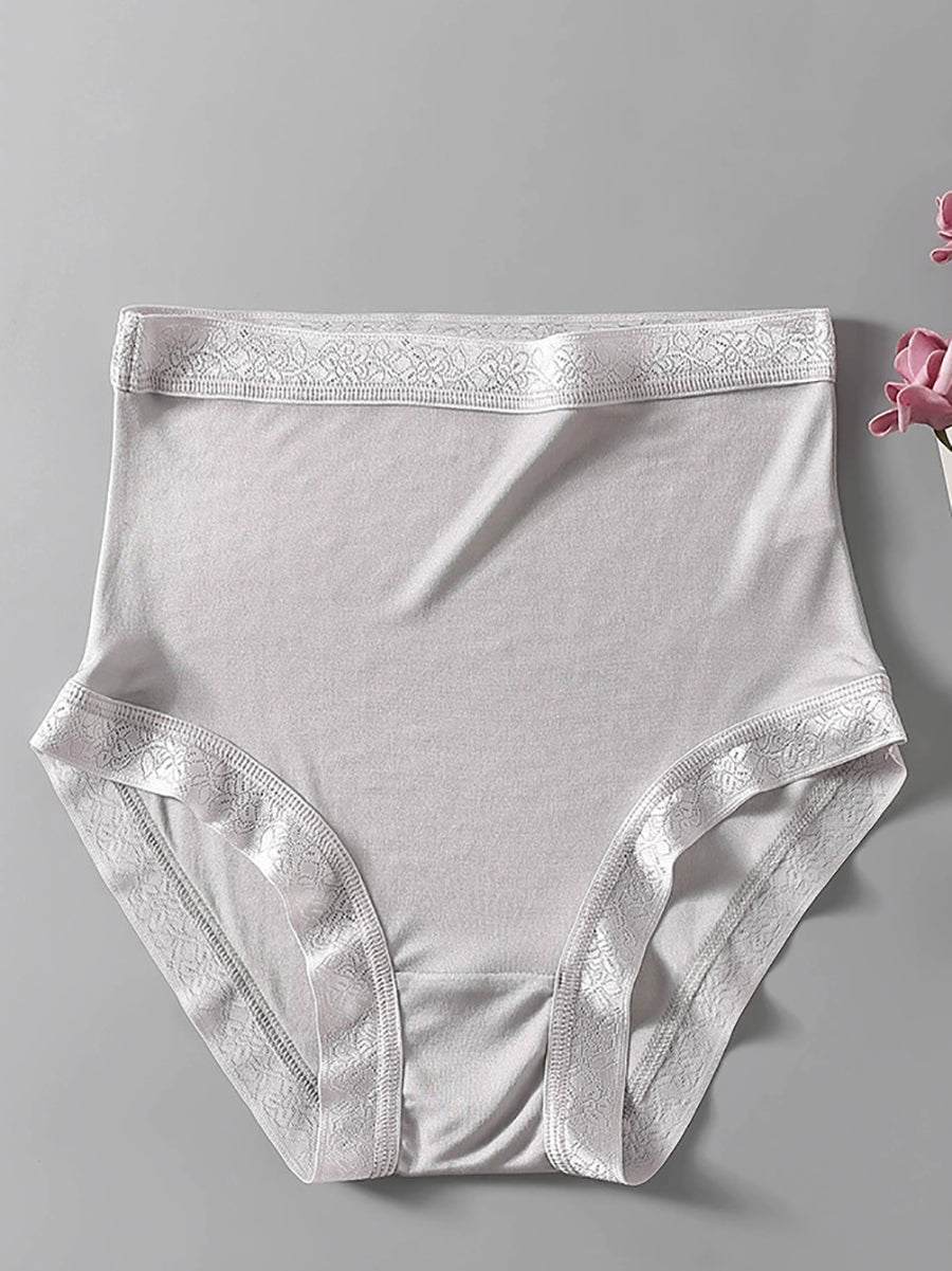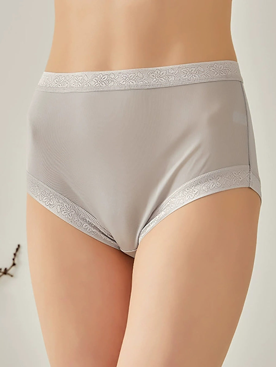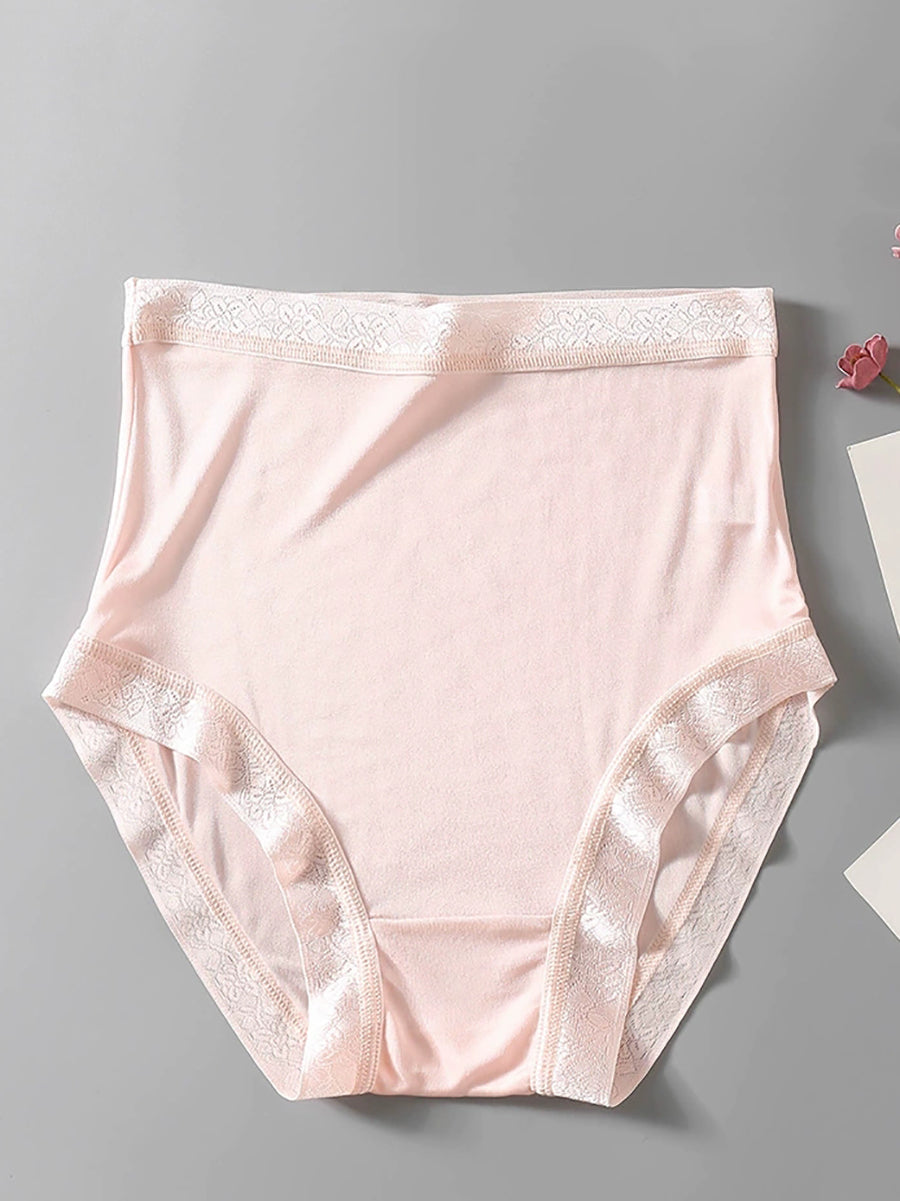 Ropa interior de seda de cintura alta de color puro y artístico para mujer