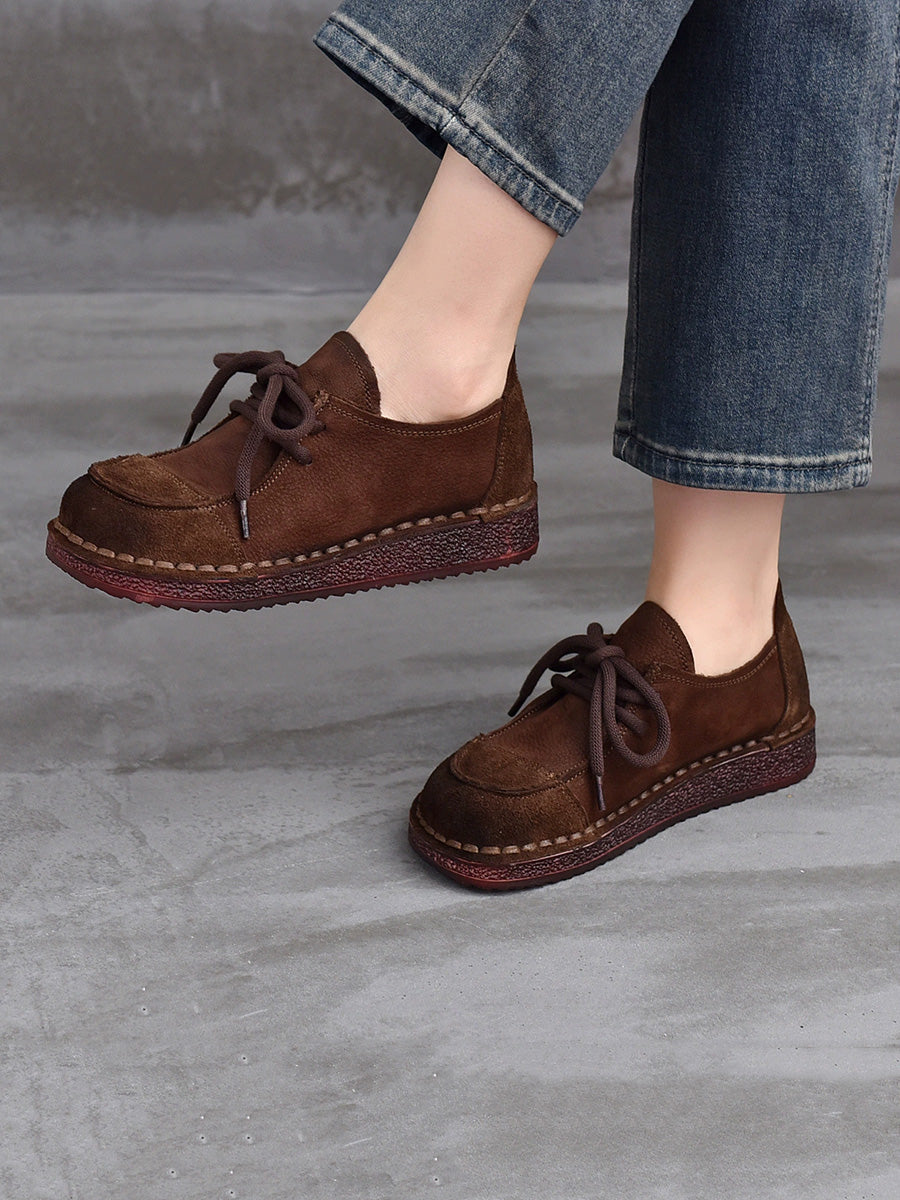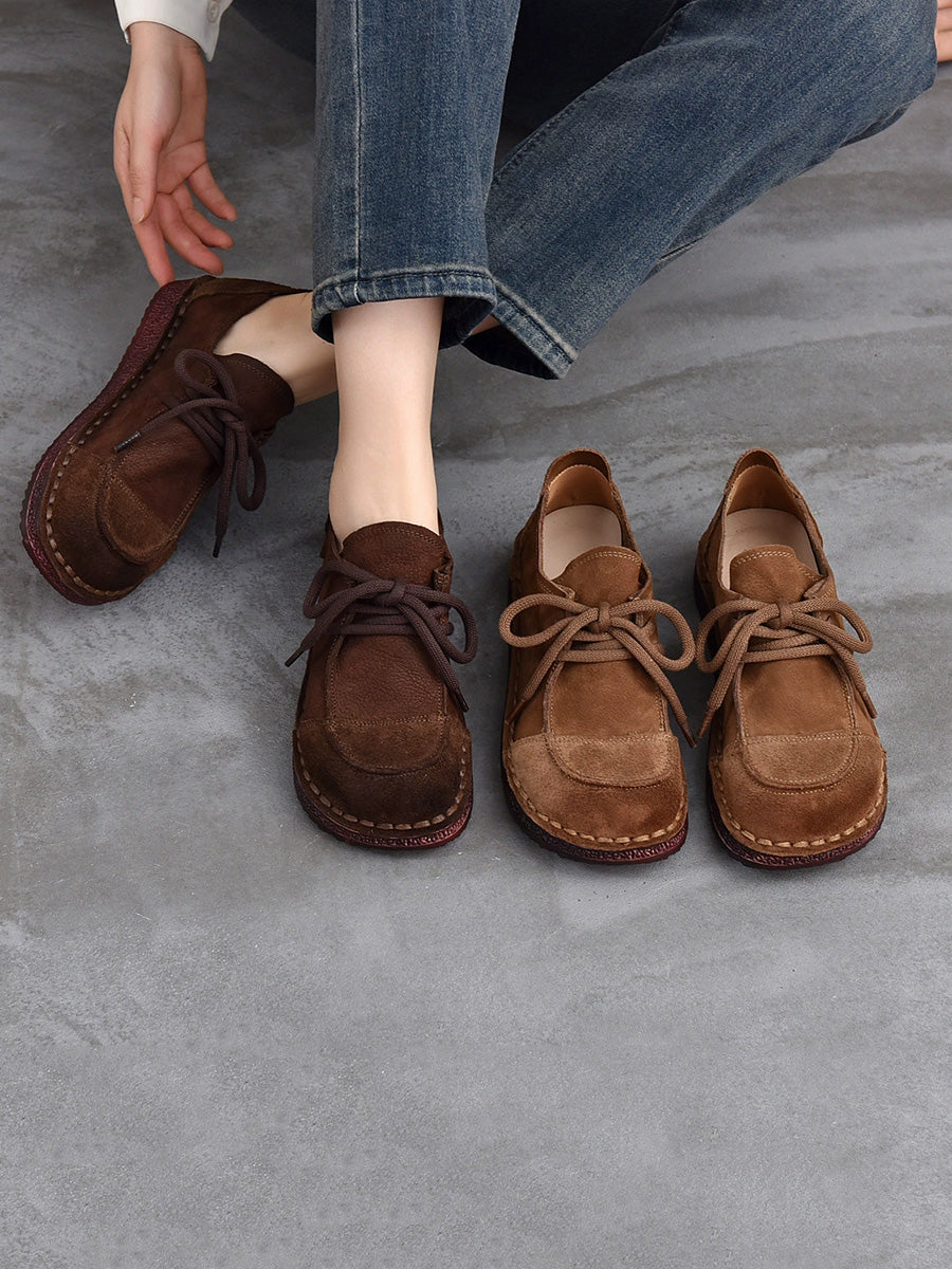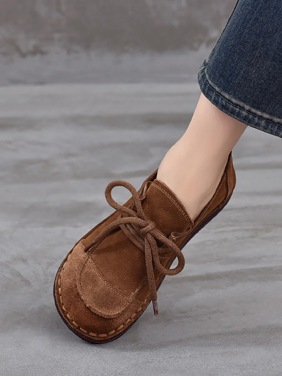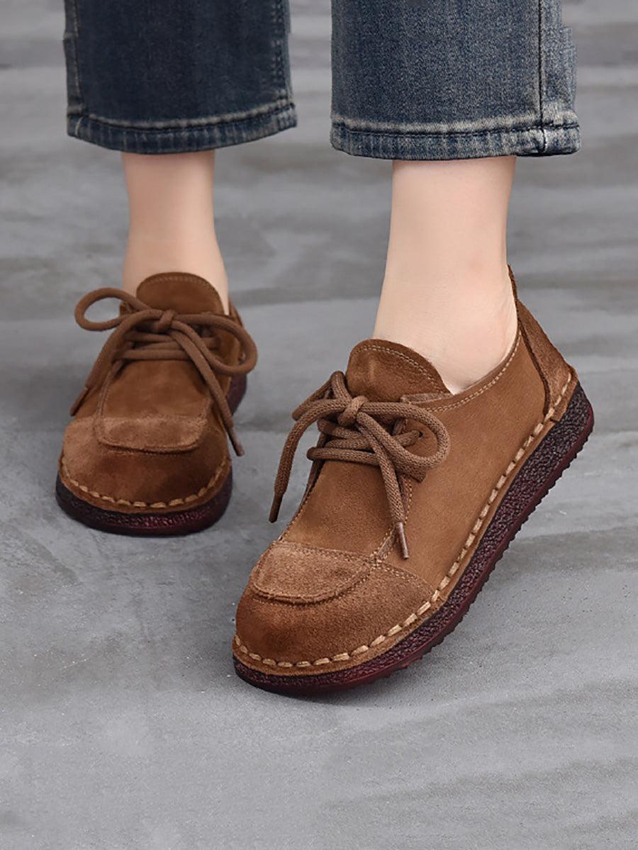Zapatos planos retro de piel auténtica con gamuza para mujer
