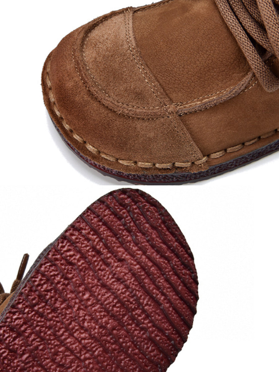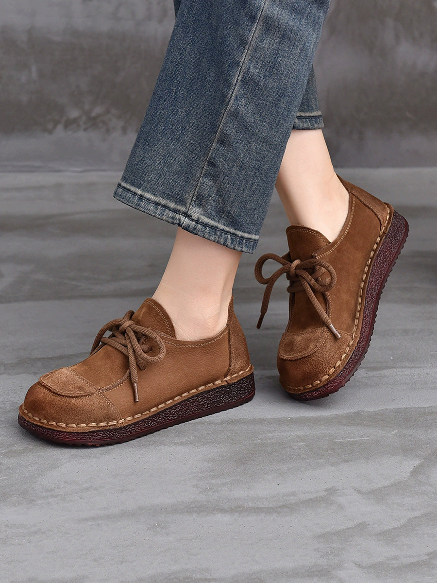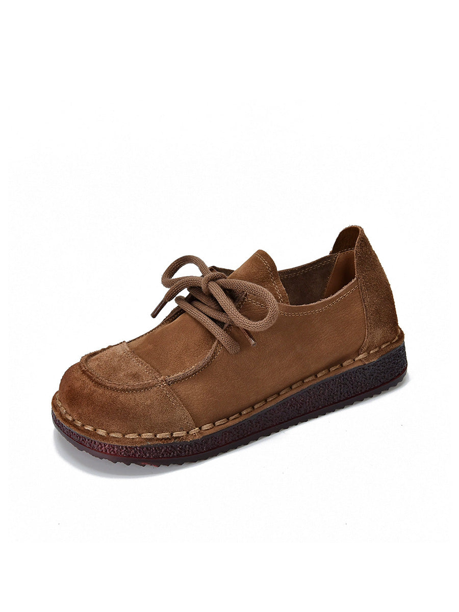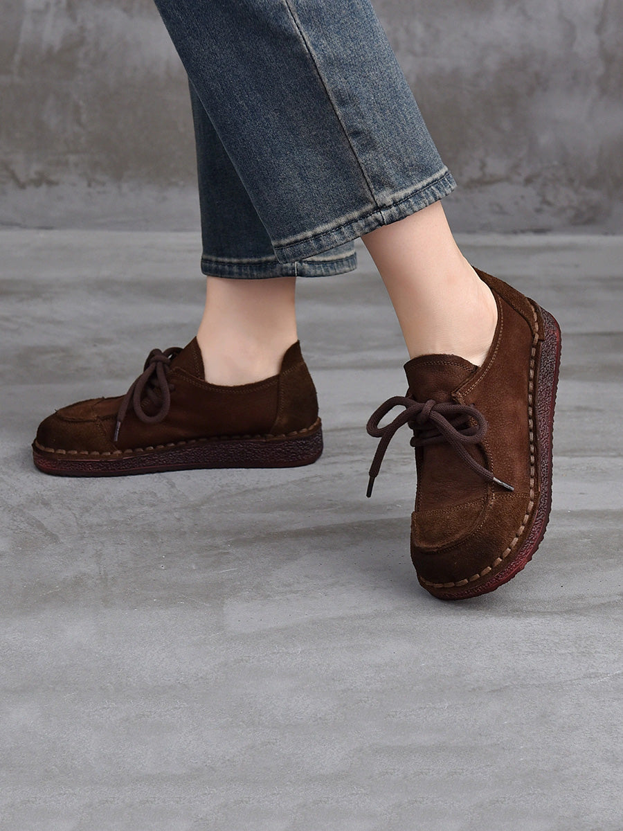 Zapatos planos retro de piel auténtica con gamuza para mujer