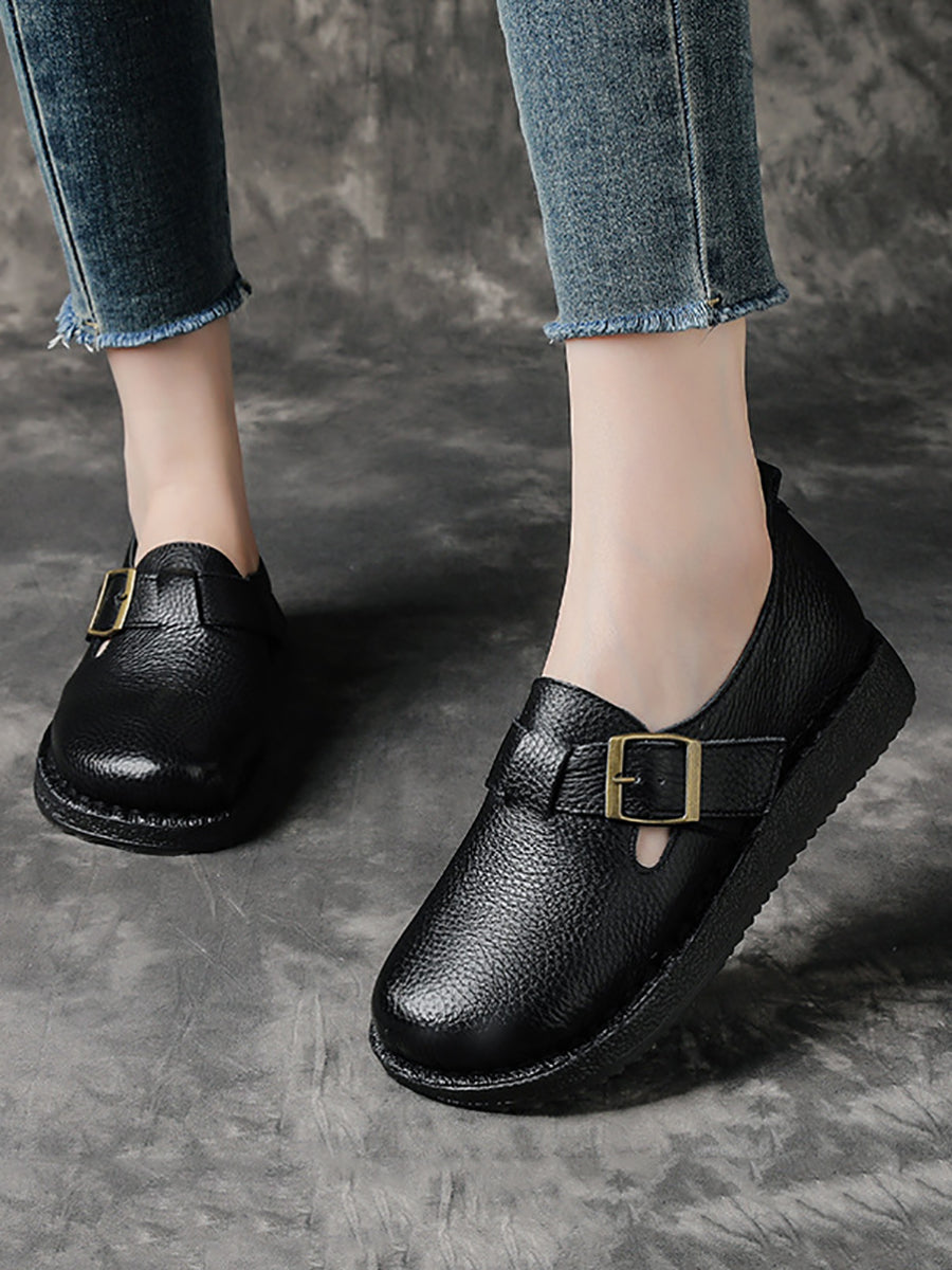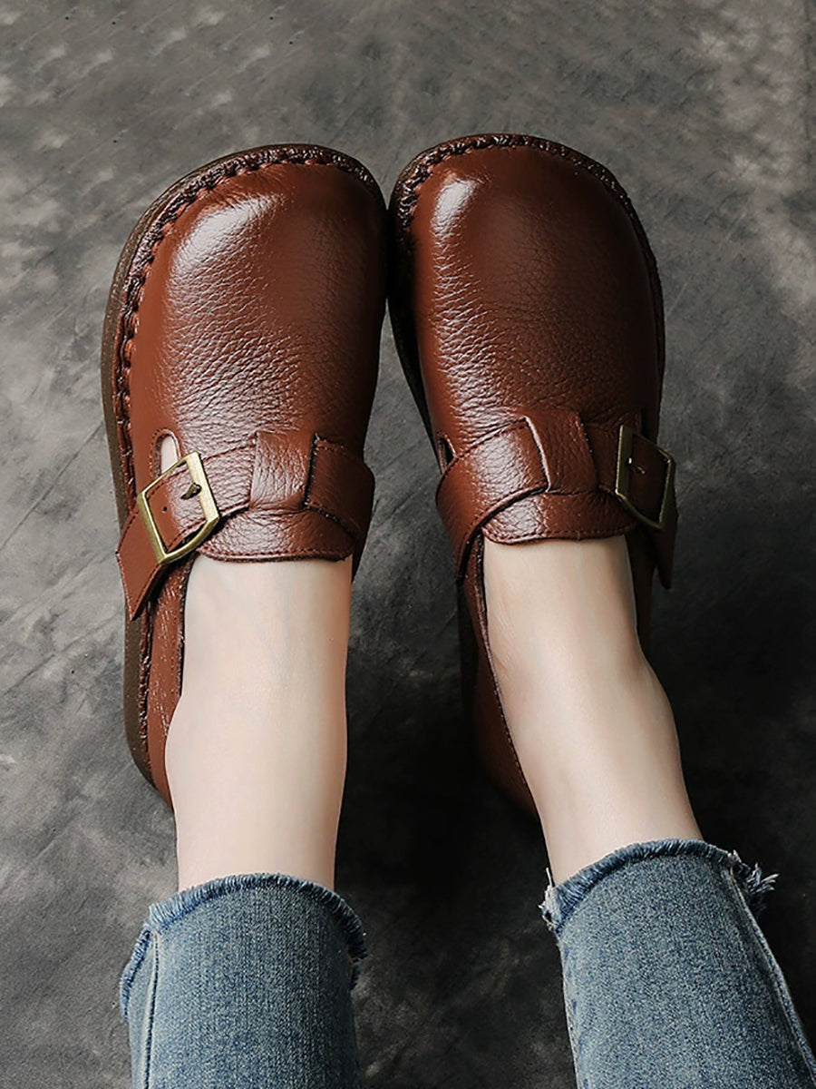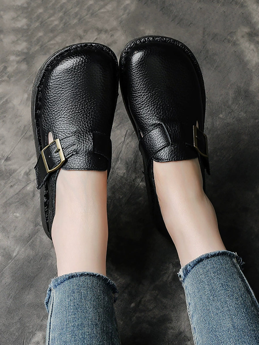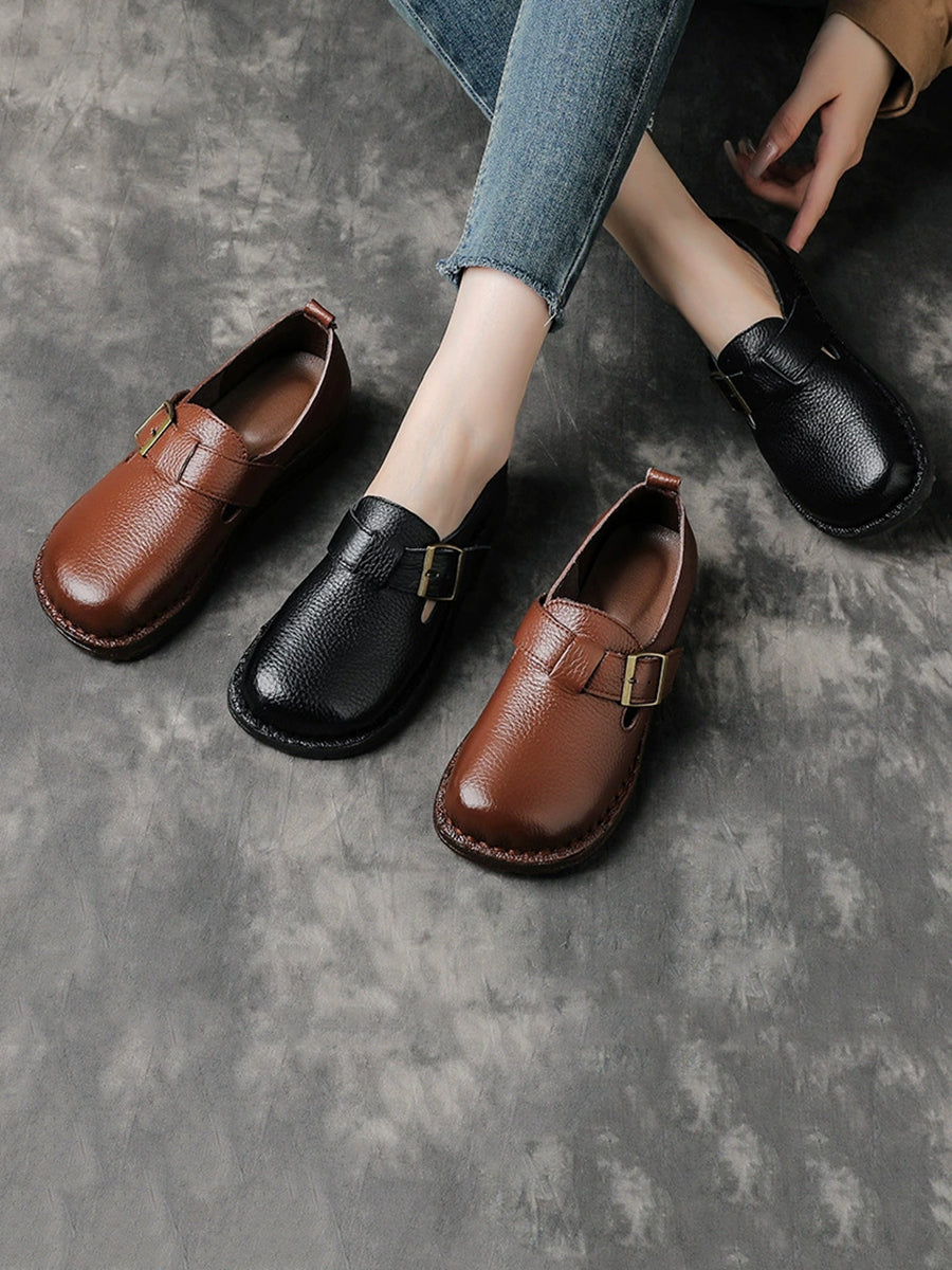 Zapatos planos vintage de piel auténtica para mujer, de primavera