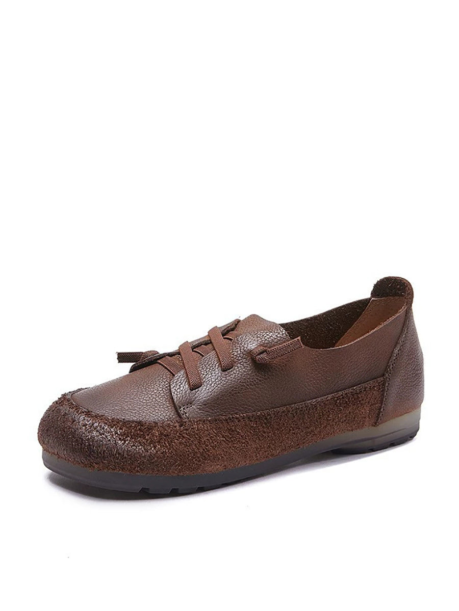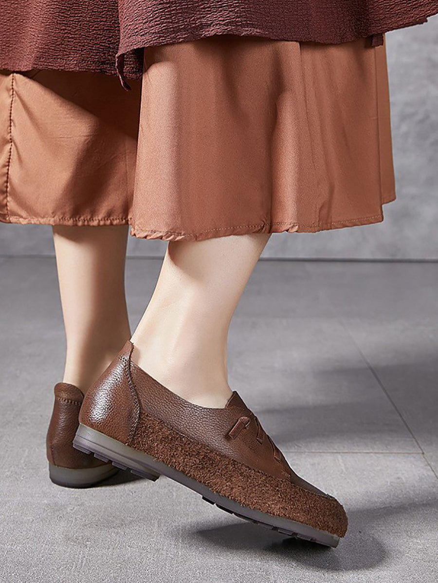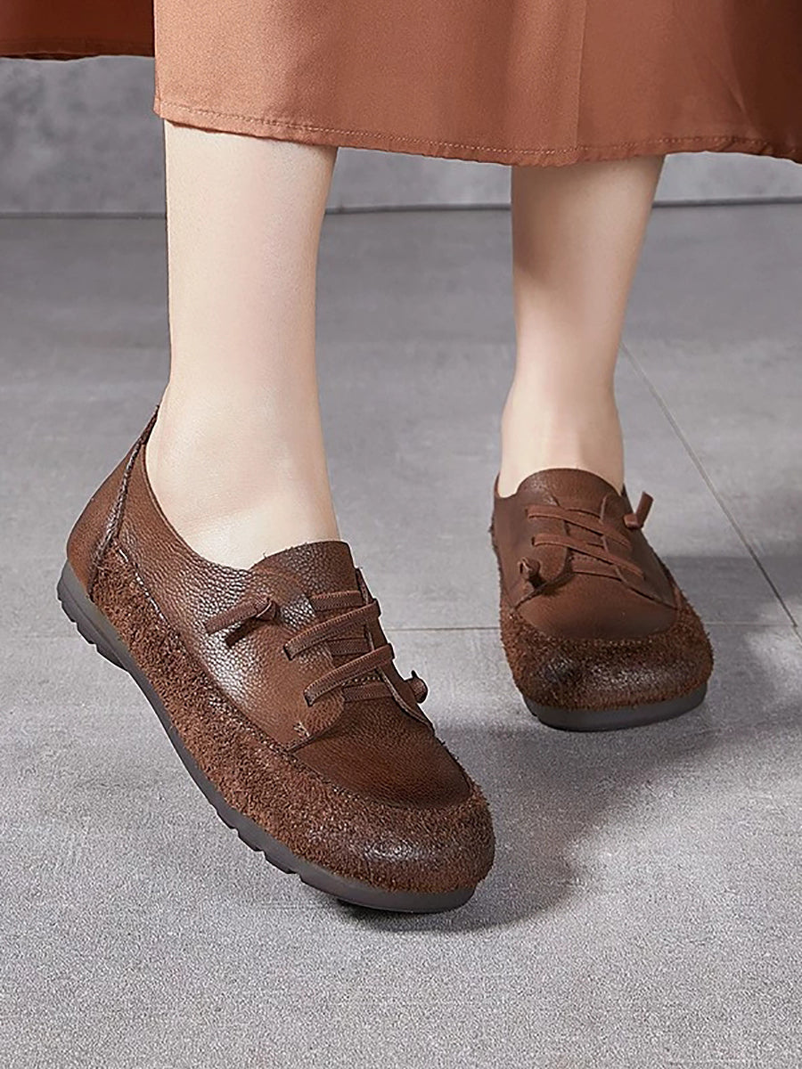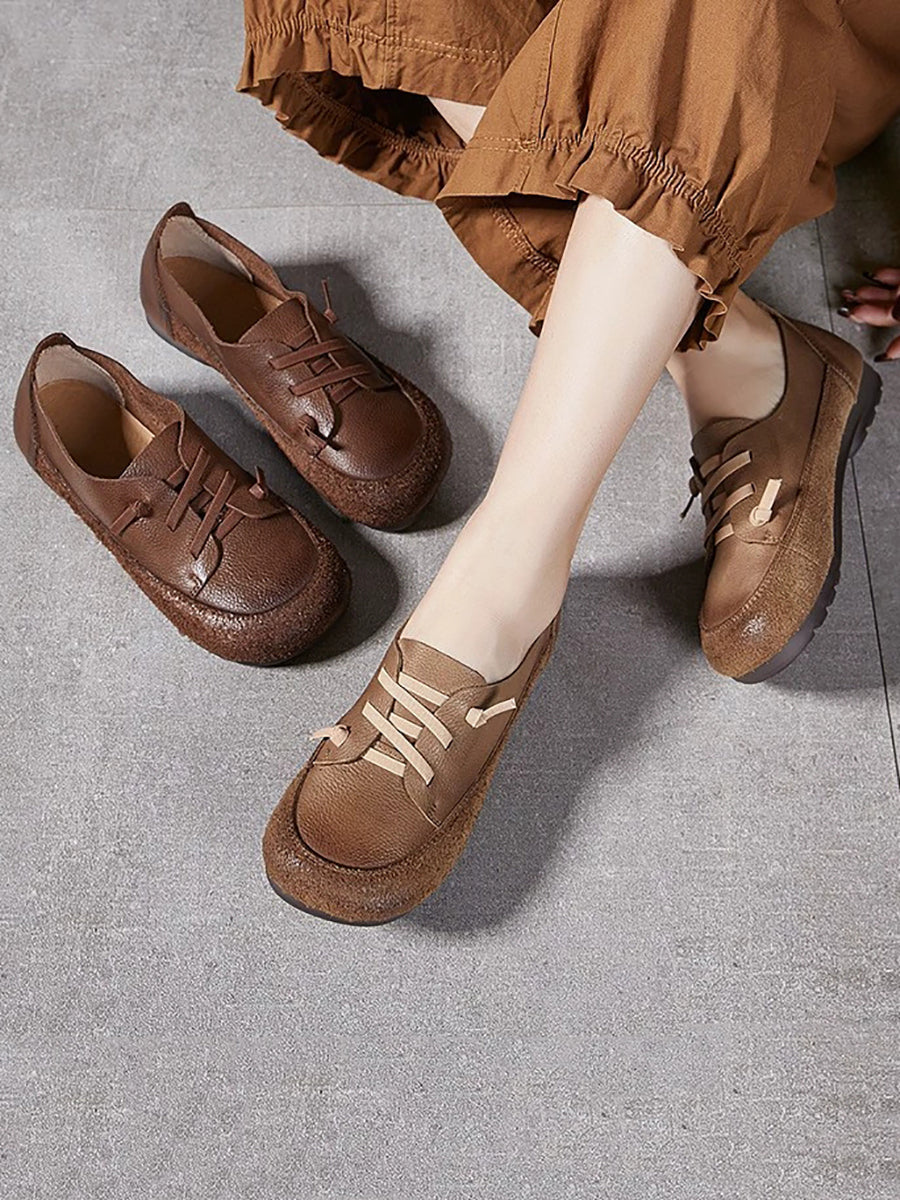 Zapatos de tacón bajo vintage de piel auténtica para mujer