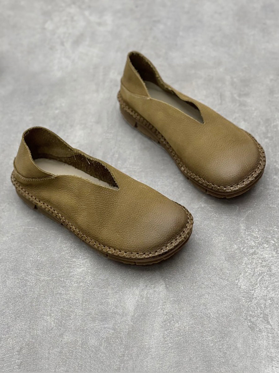 Zapatos planos suaves de cuero sólido vintage de verano para mujer