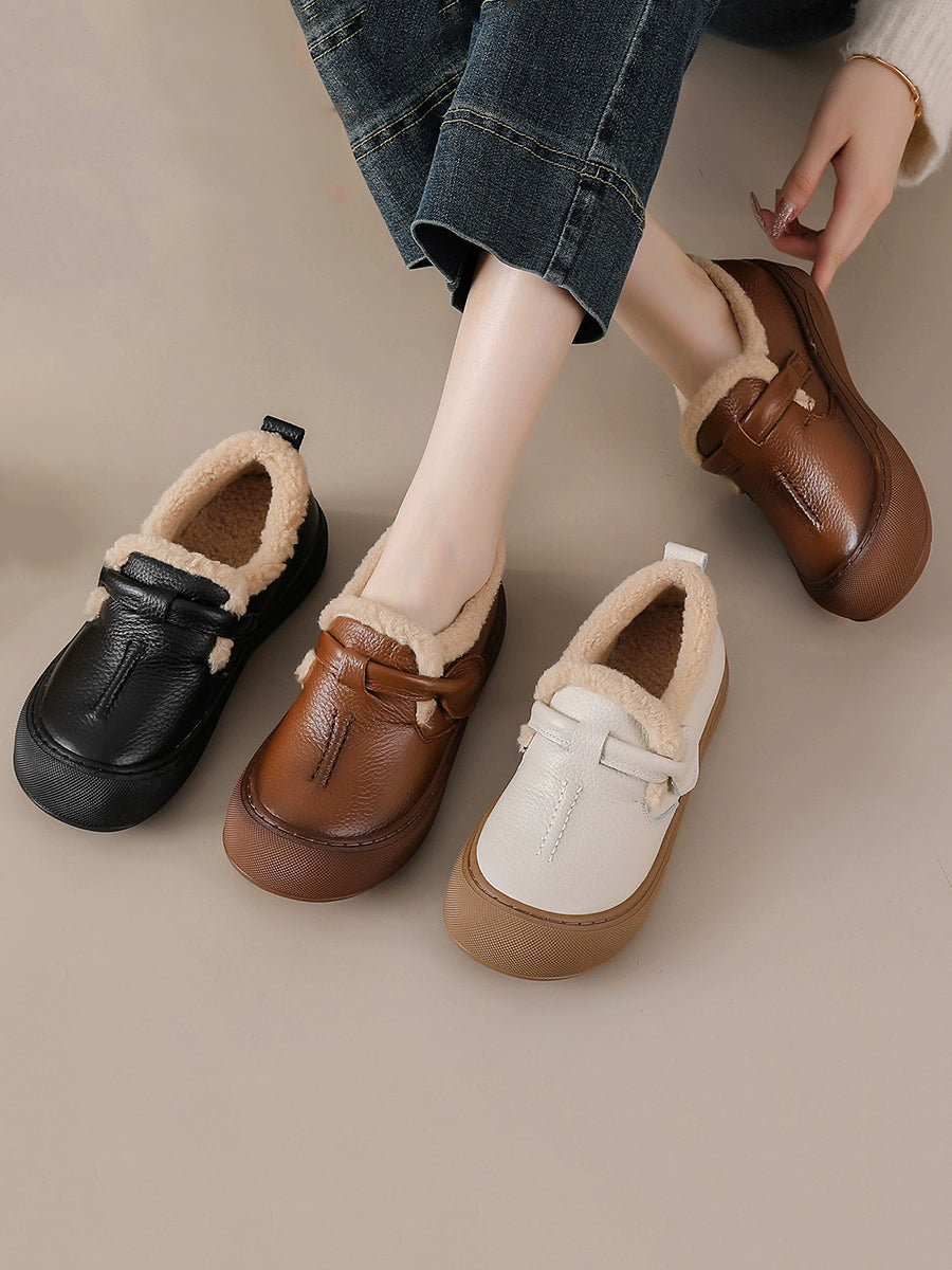 Zapatos de invierno para mujer de piel auténtica con forro polar