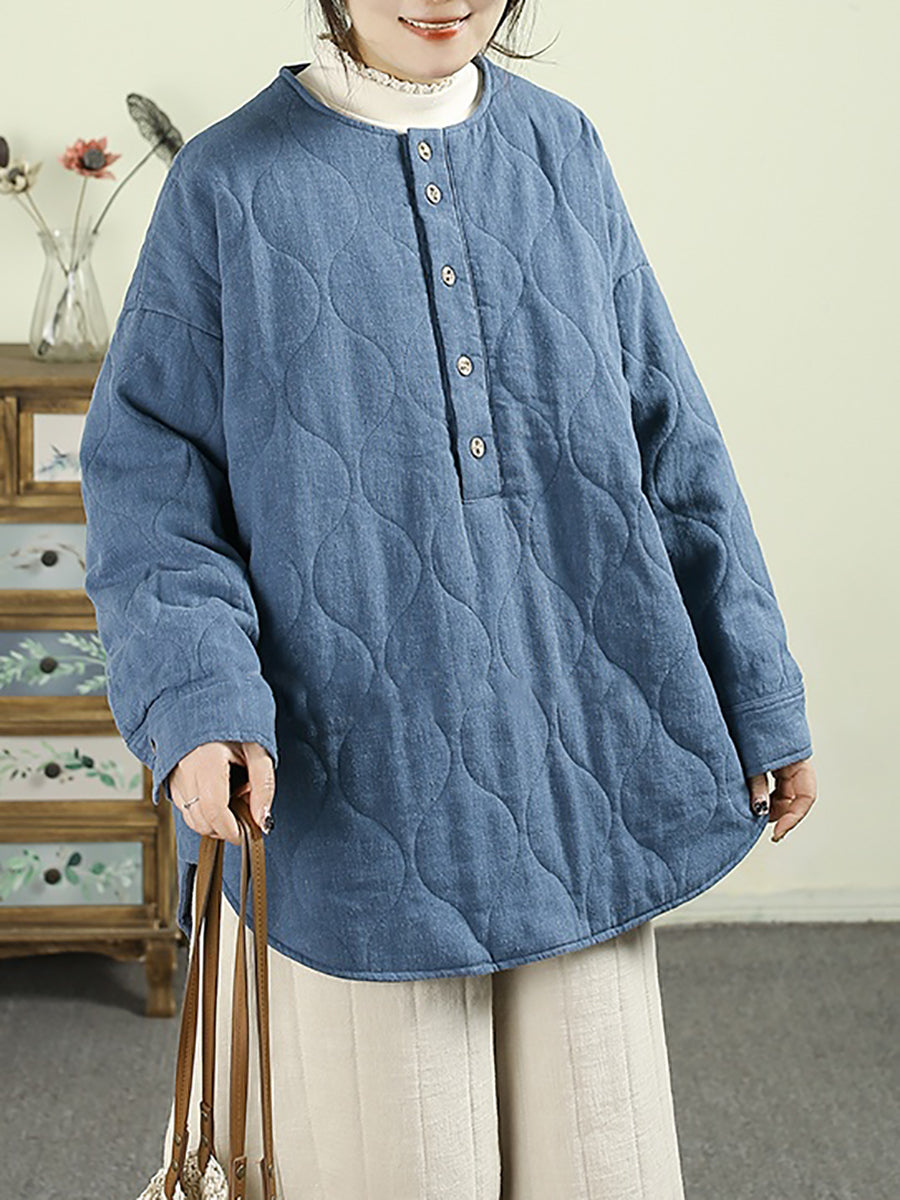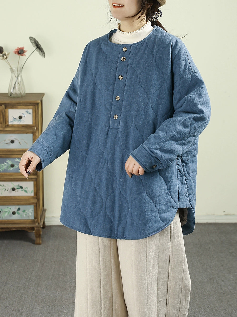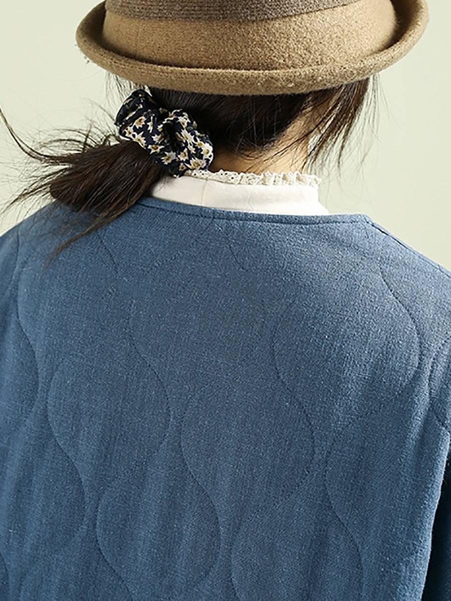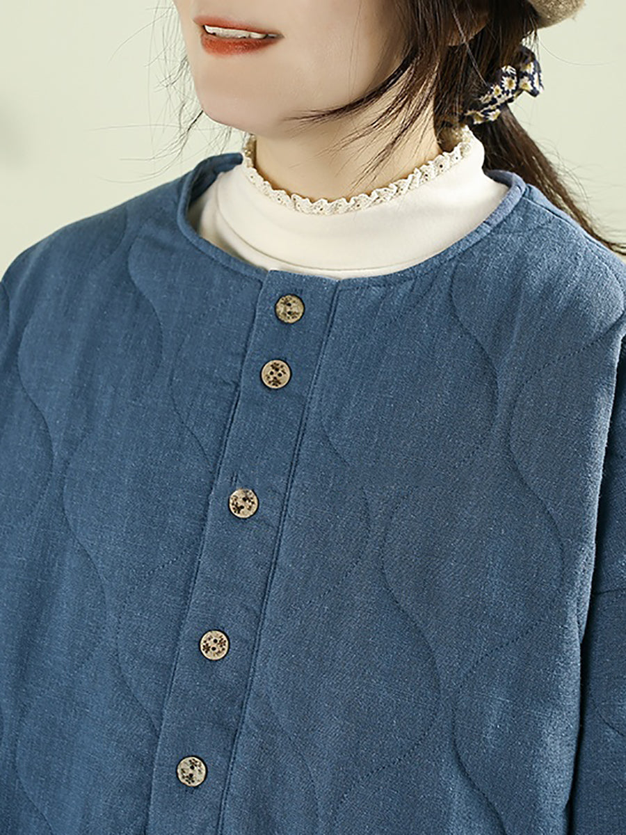 Abrigo acolchado informal de invierno para mujer, 100 % lino, con cuello redondo