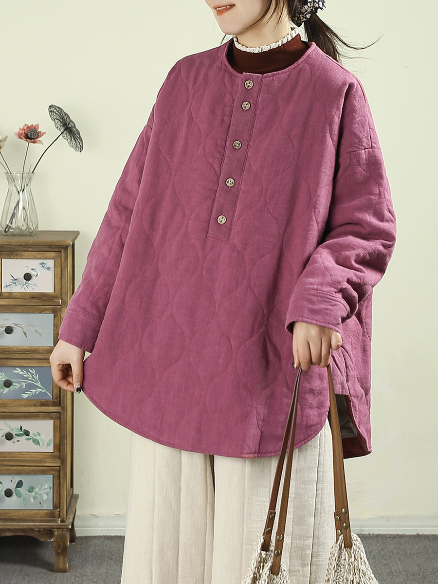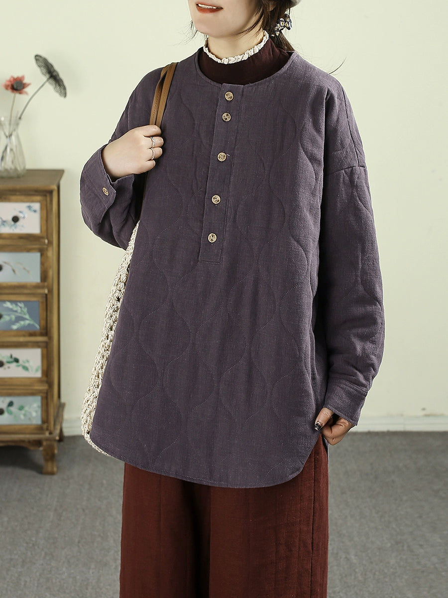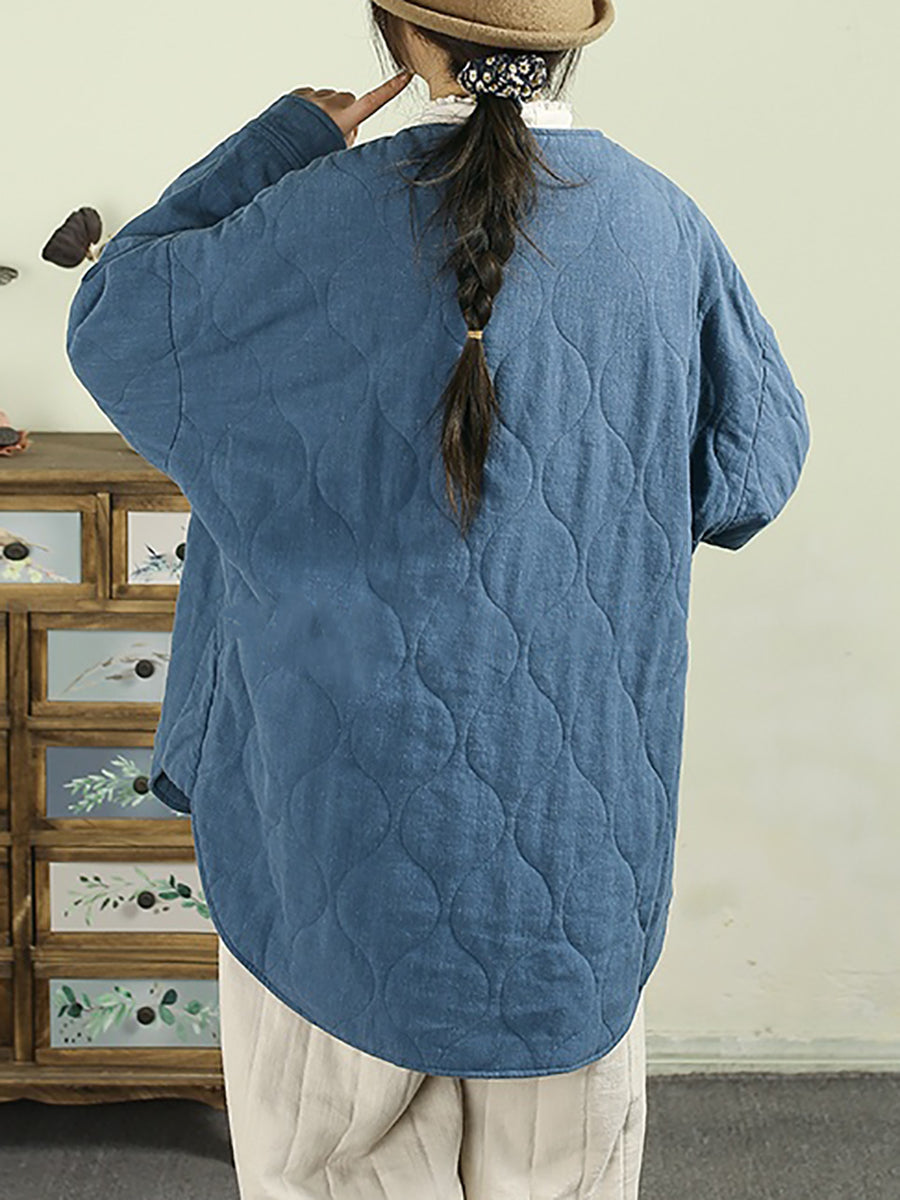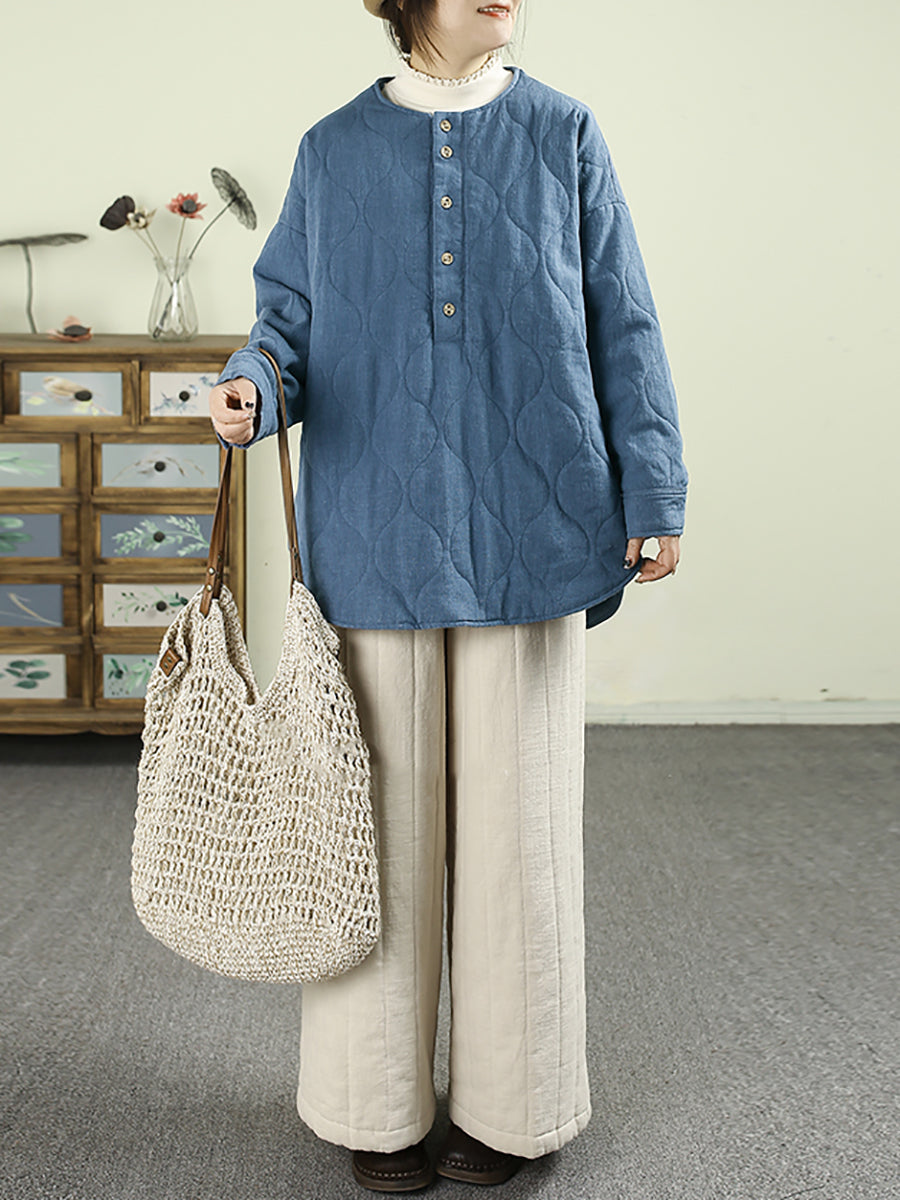 Abrigo acolchado informal de invierno para mujer, 100 % lino, con cuello redondo
