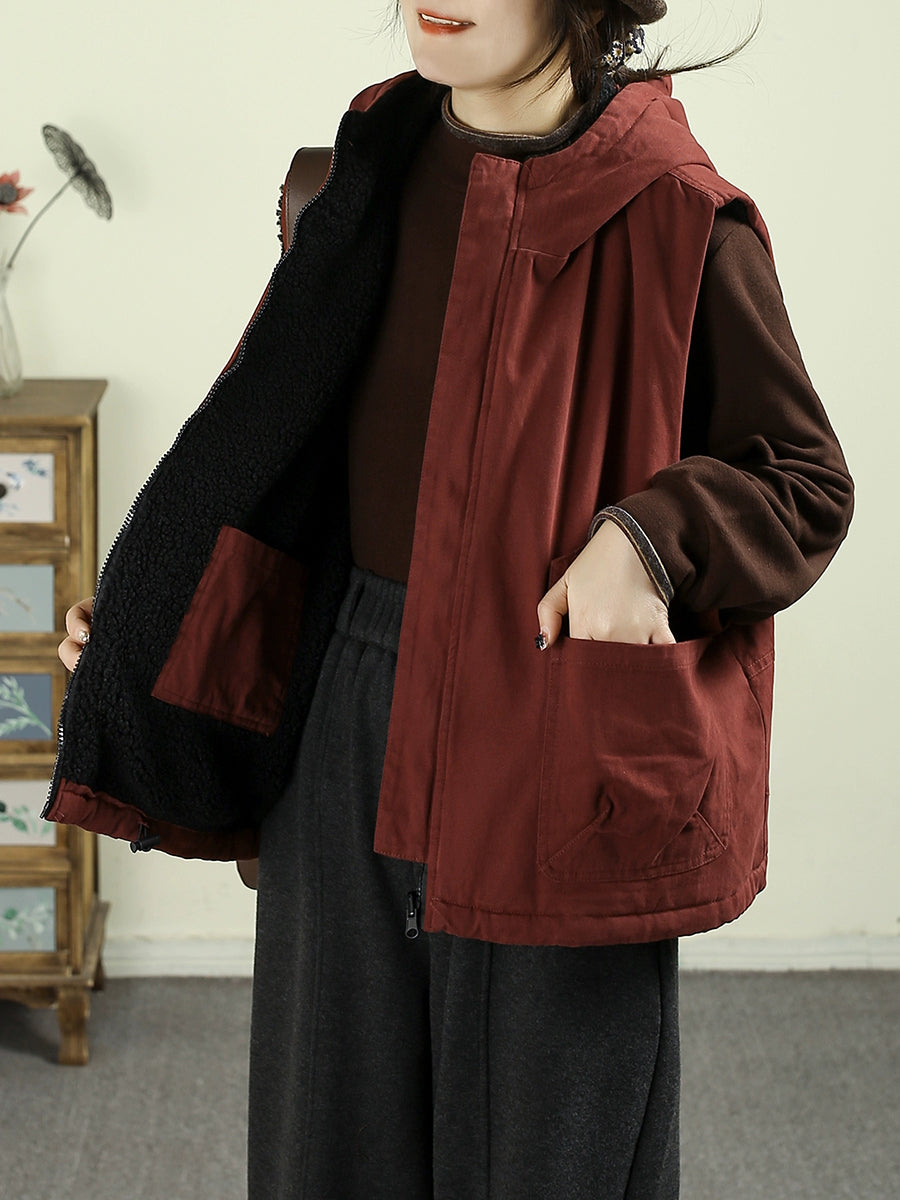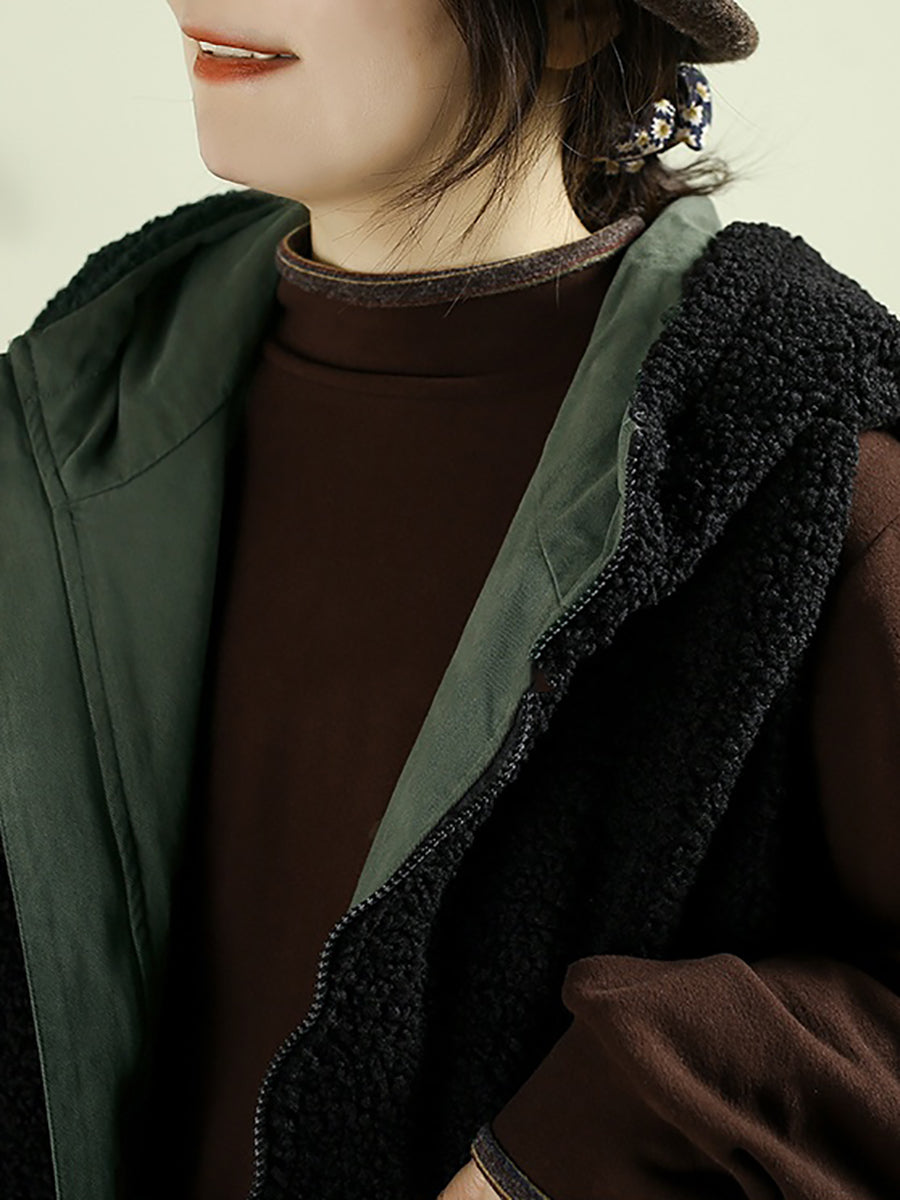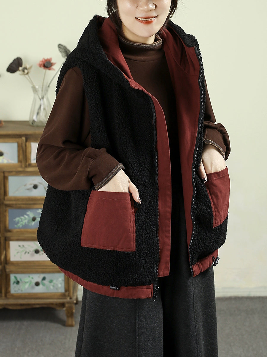 Chaleco con capucha de dos lados vintage de invierno para mujer