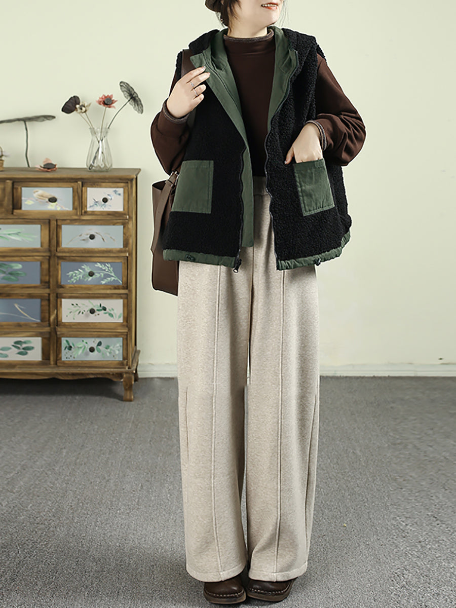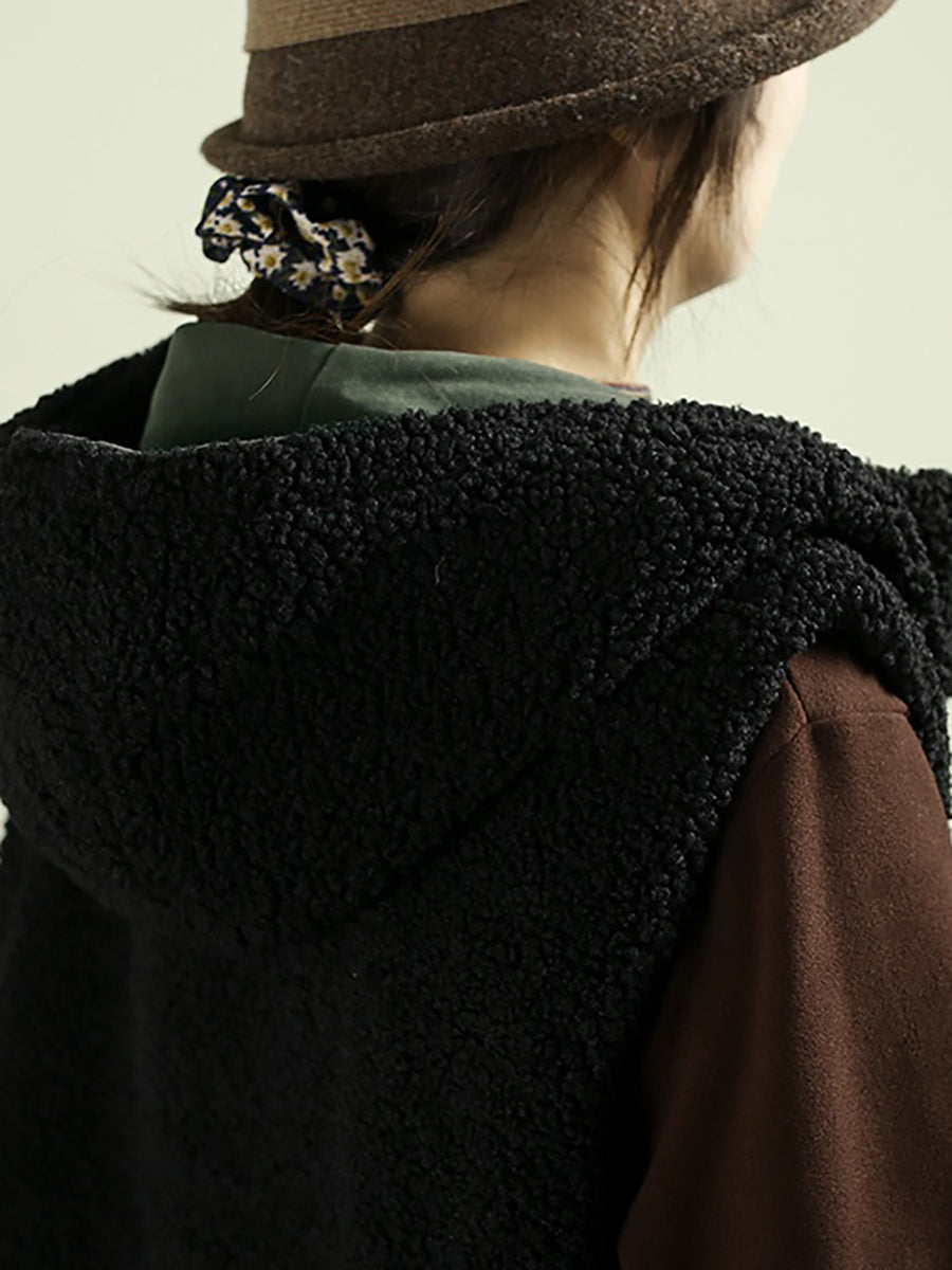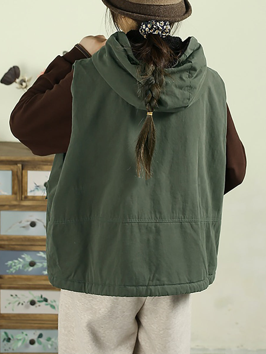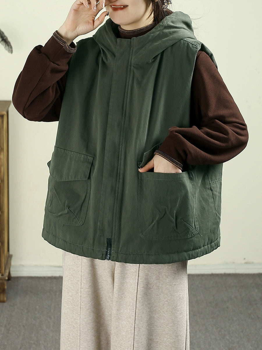 Chaleco con capucha de dos lados vintage de invierno para mujer