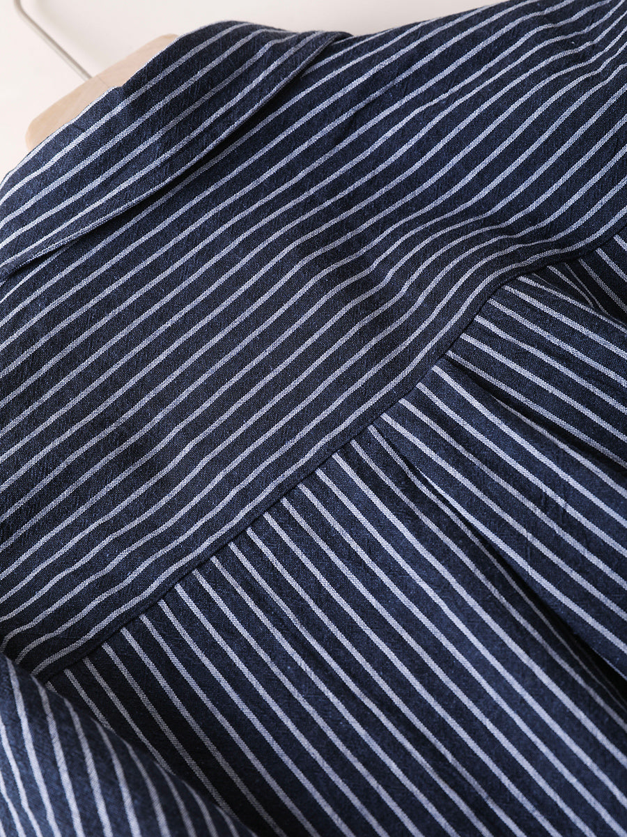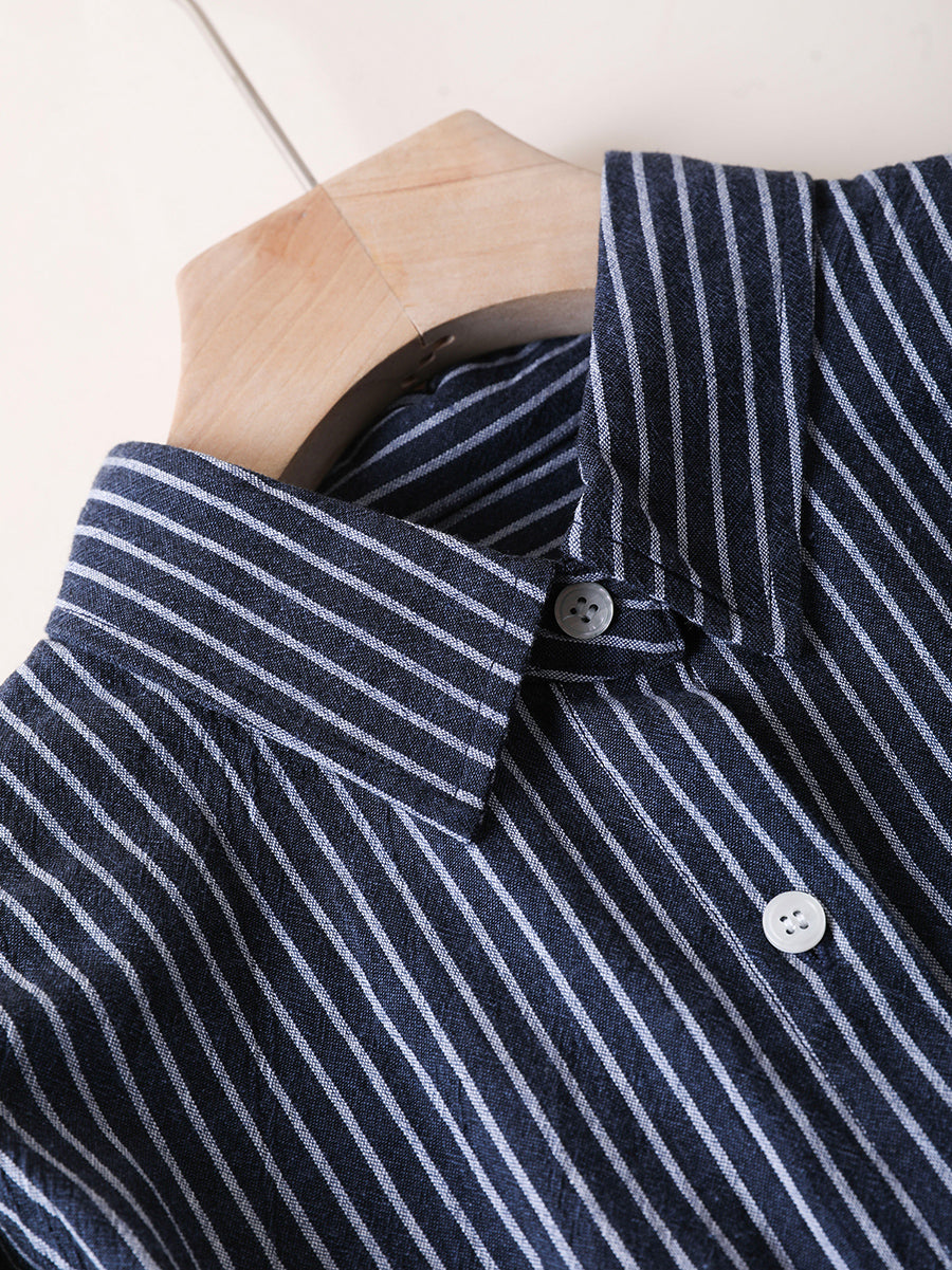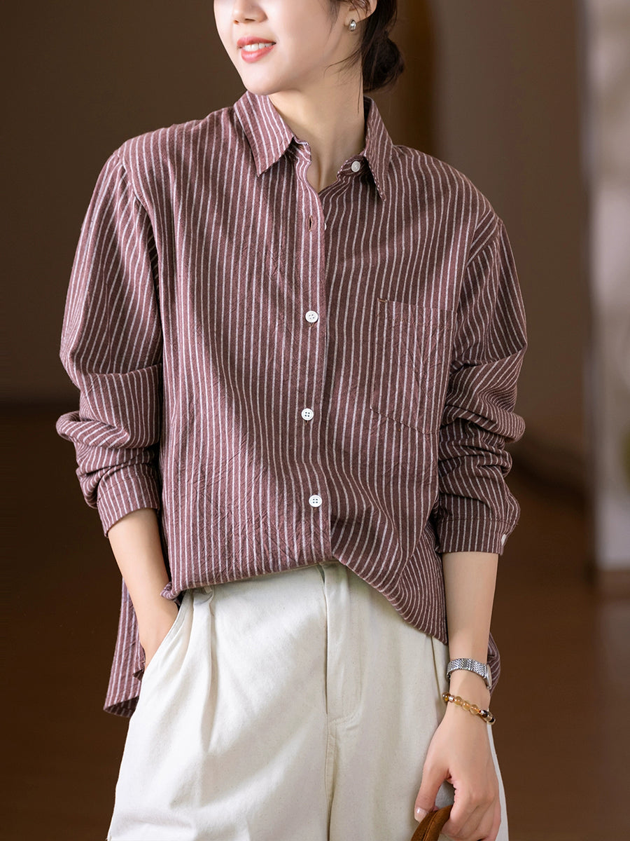 Camisa de mujer 100 % algodón con cuello vuelto y rayas de otoño