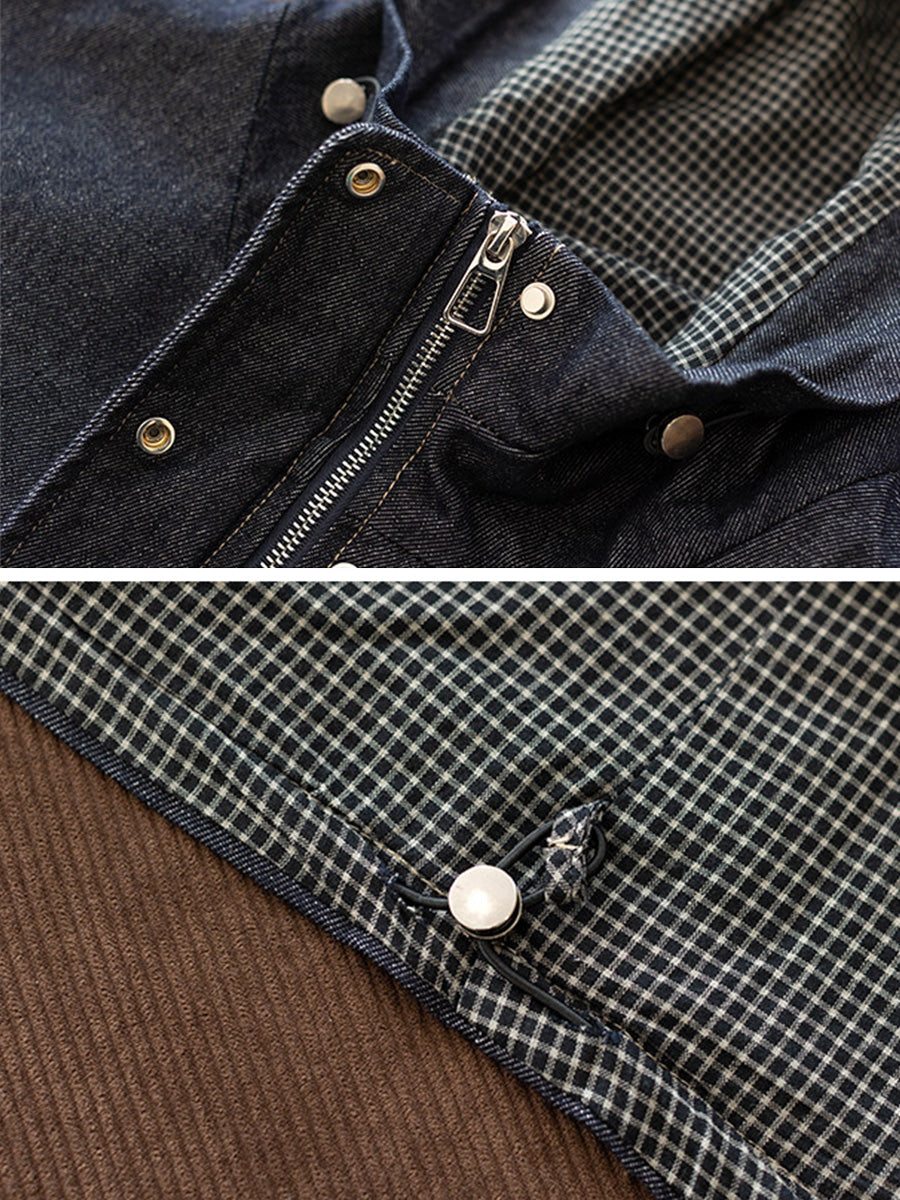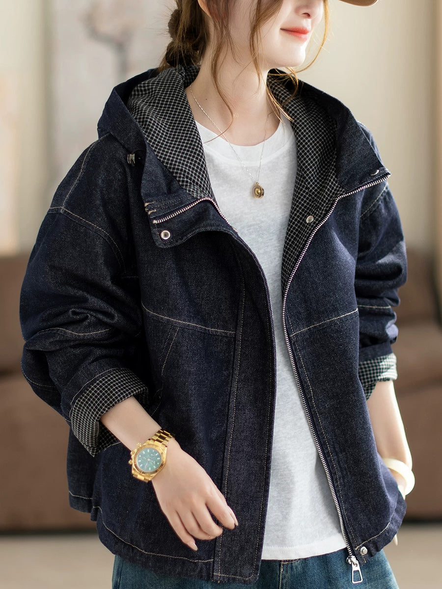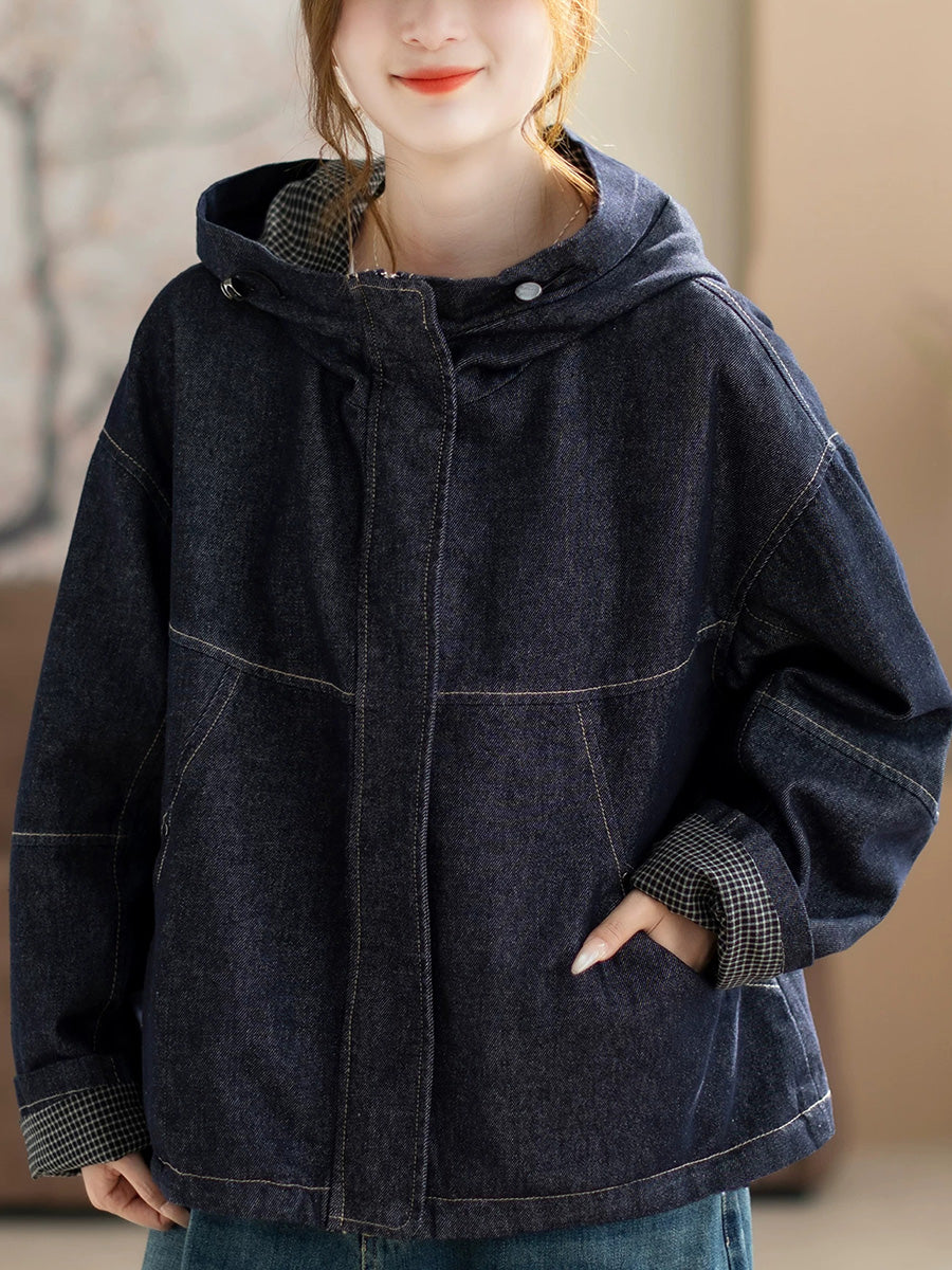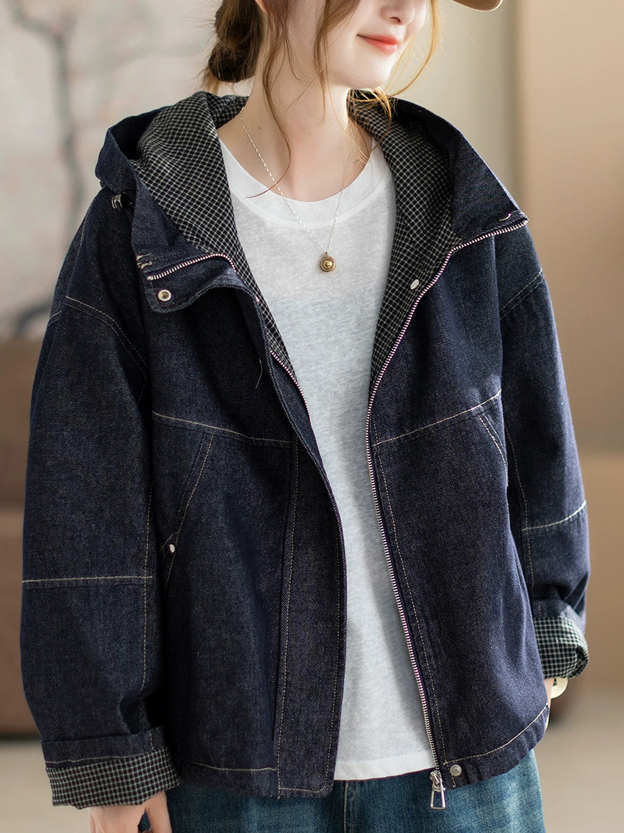 Abrigo con capucha de mezclilla de color puro retro de primavera para mujer