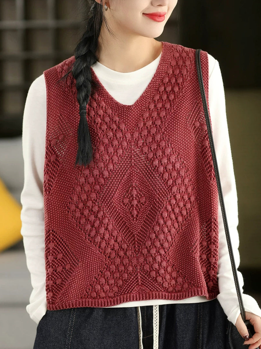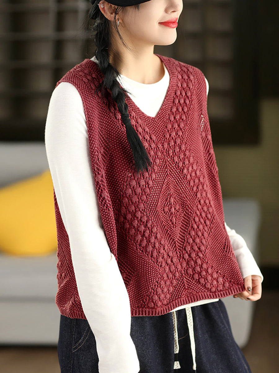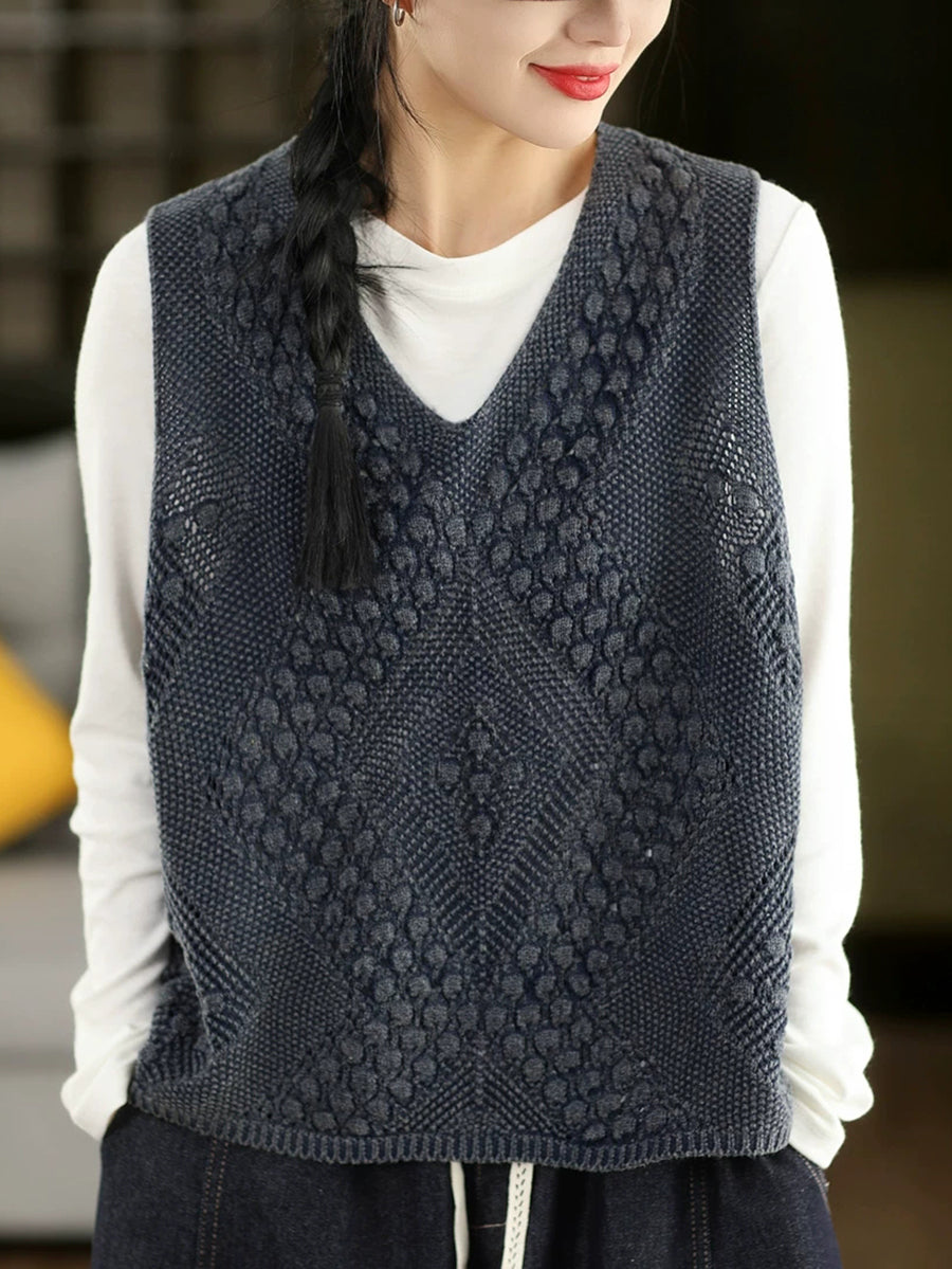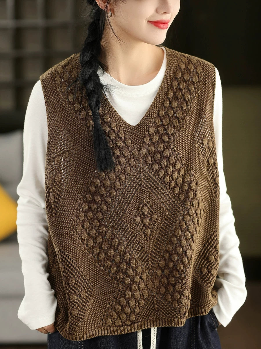Chaleco de punto con cuello en V artístico de primavera para mujer
