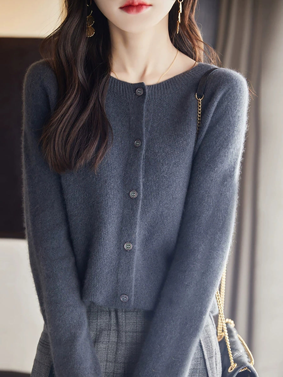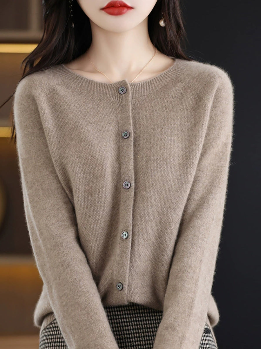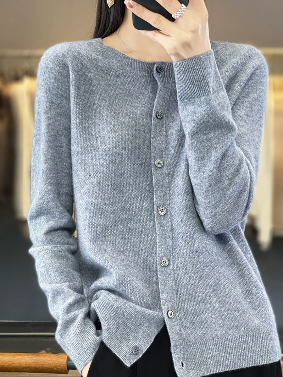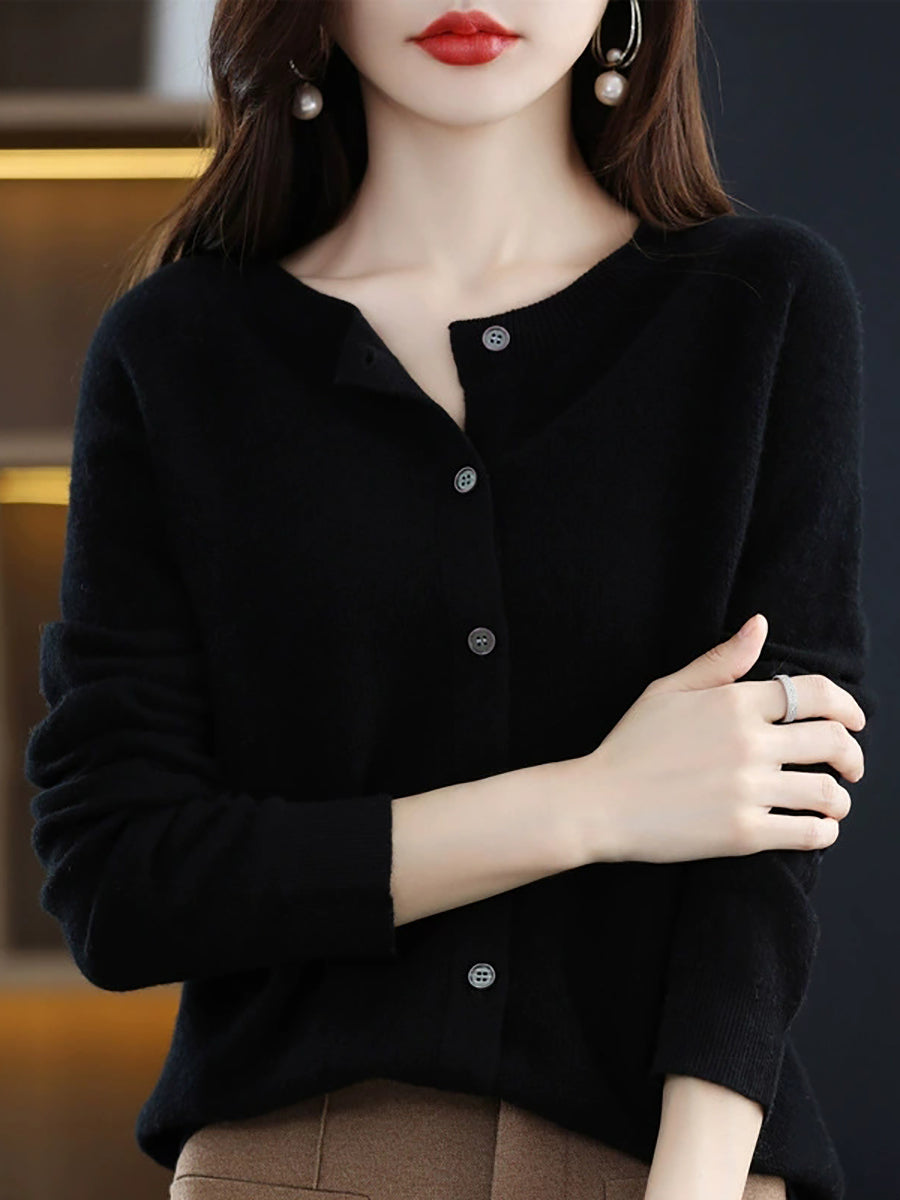 Suéter casual de primavera para mujer, color puro, cuello redondo