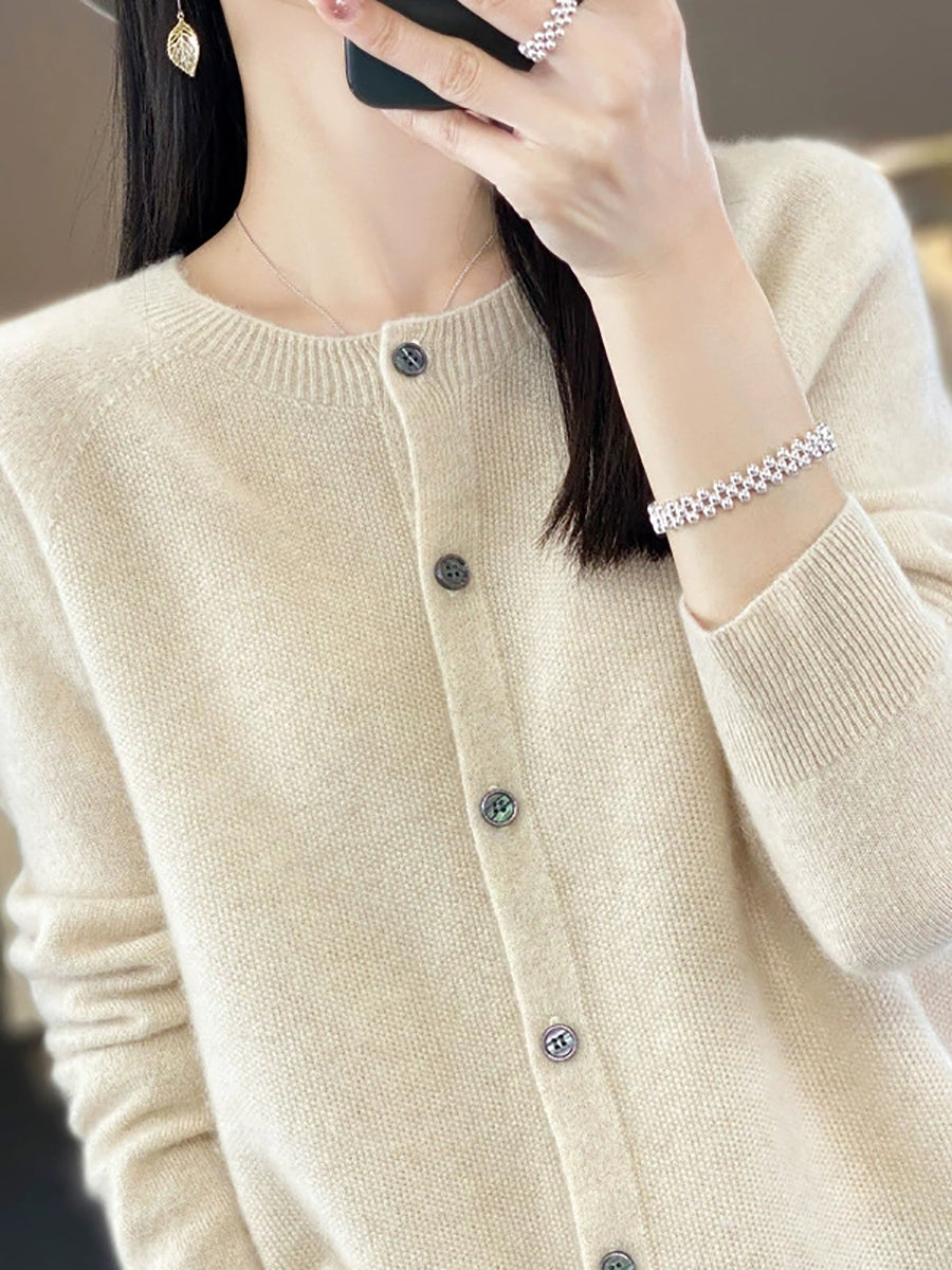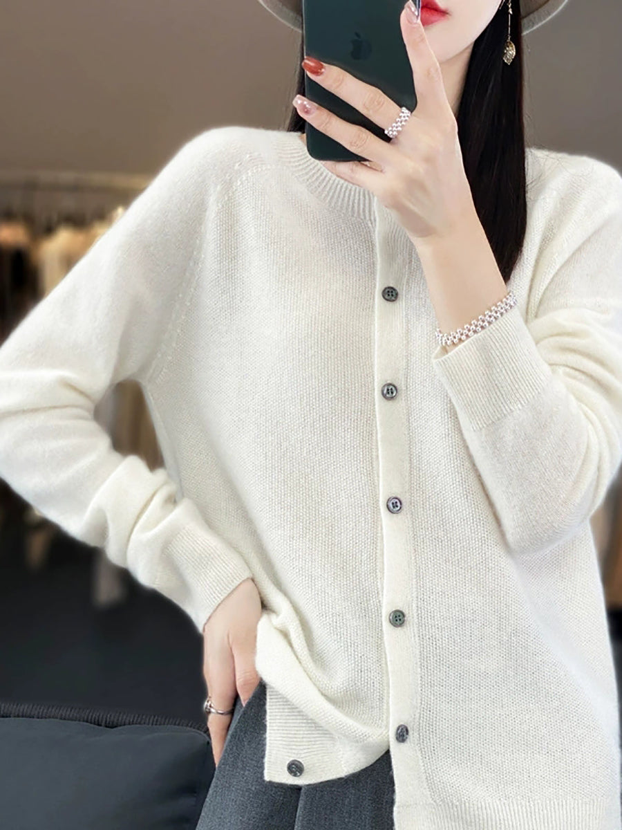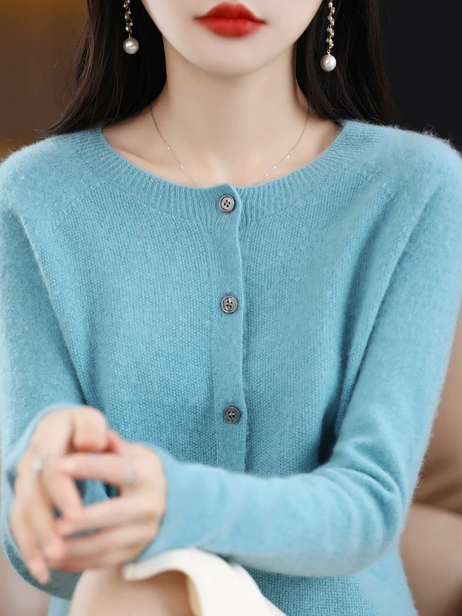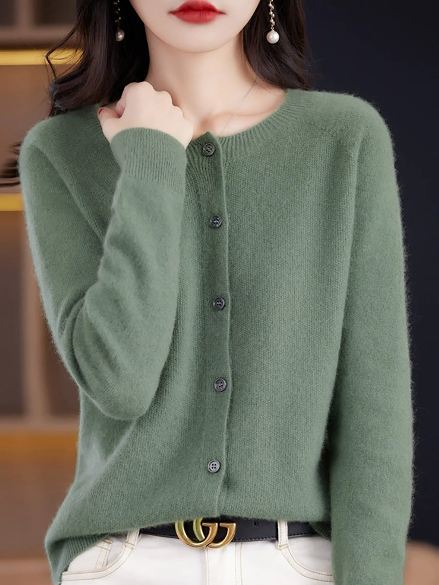 Suéter casual de primavera para mujer, color puro, cuello redondo