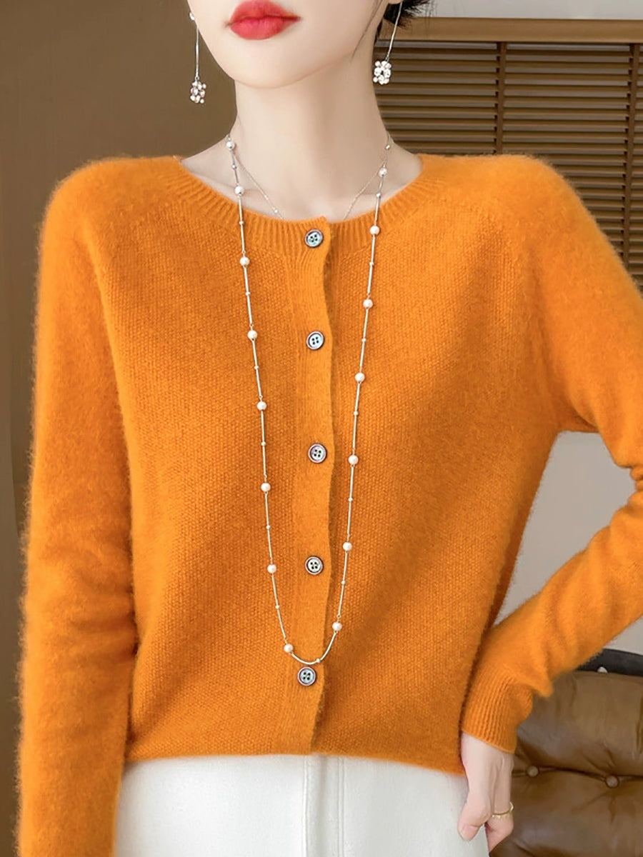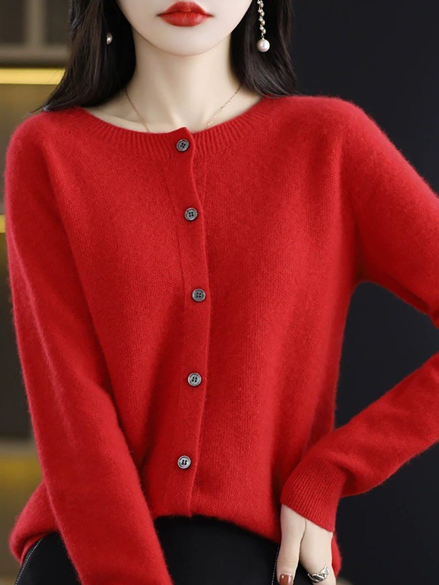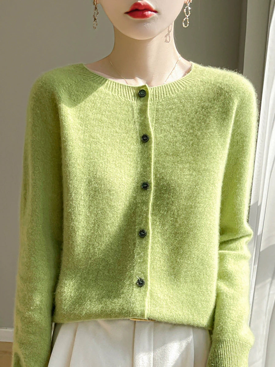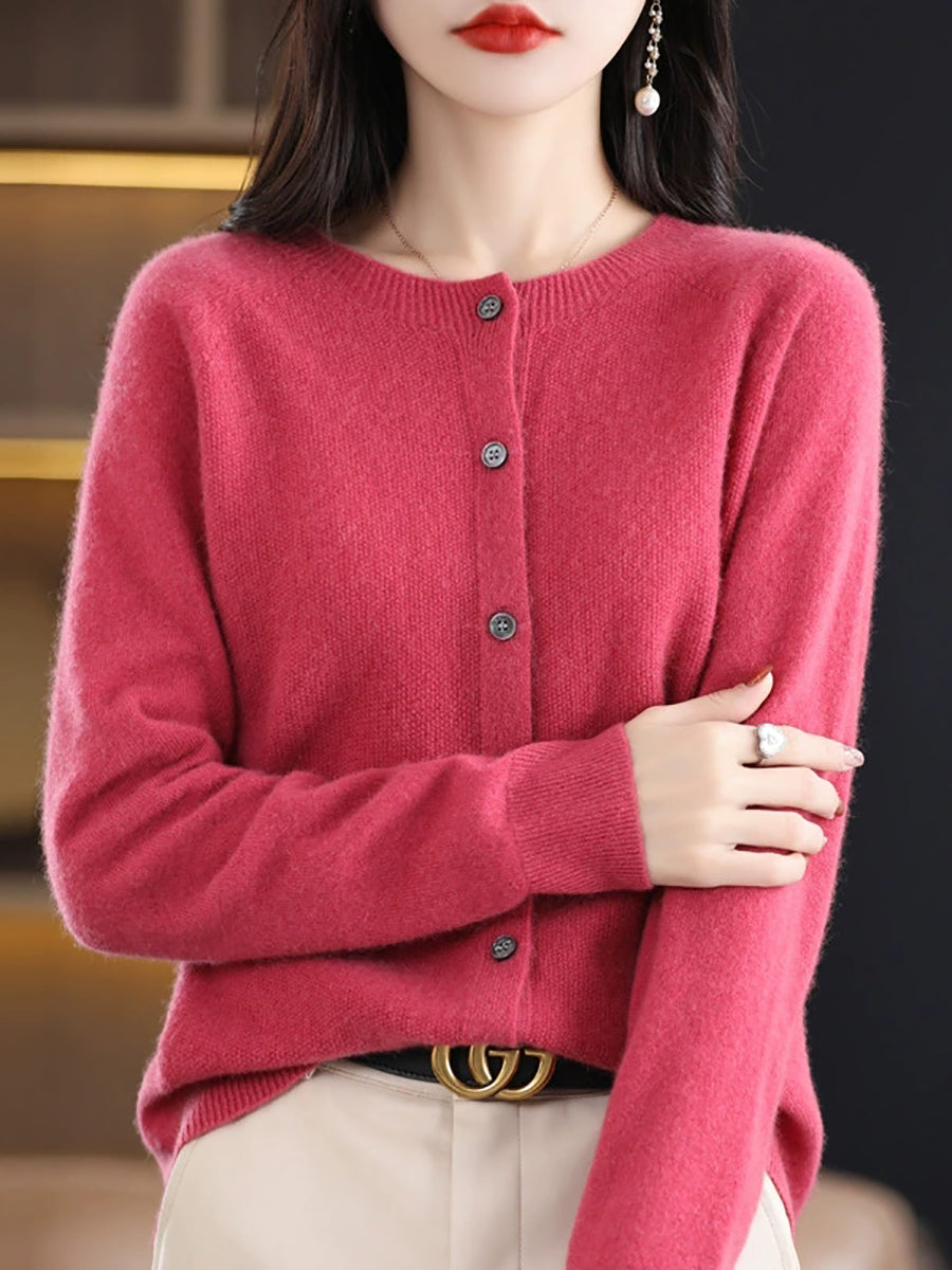 Suéter casual de primavera para mujer, color puro, cuello redondo