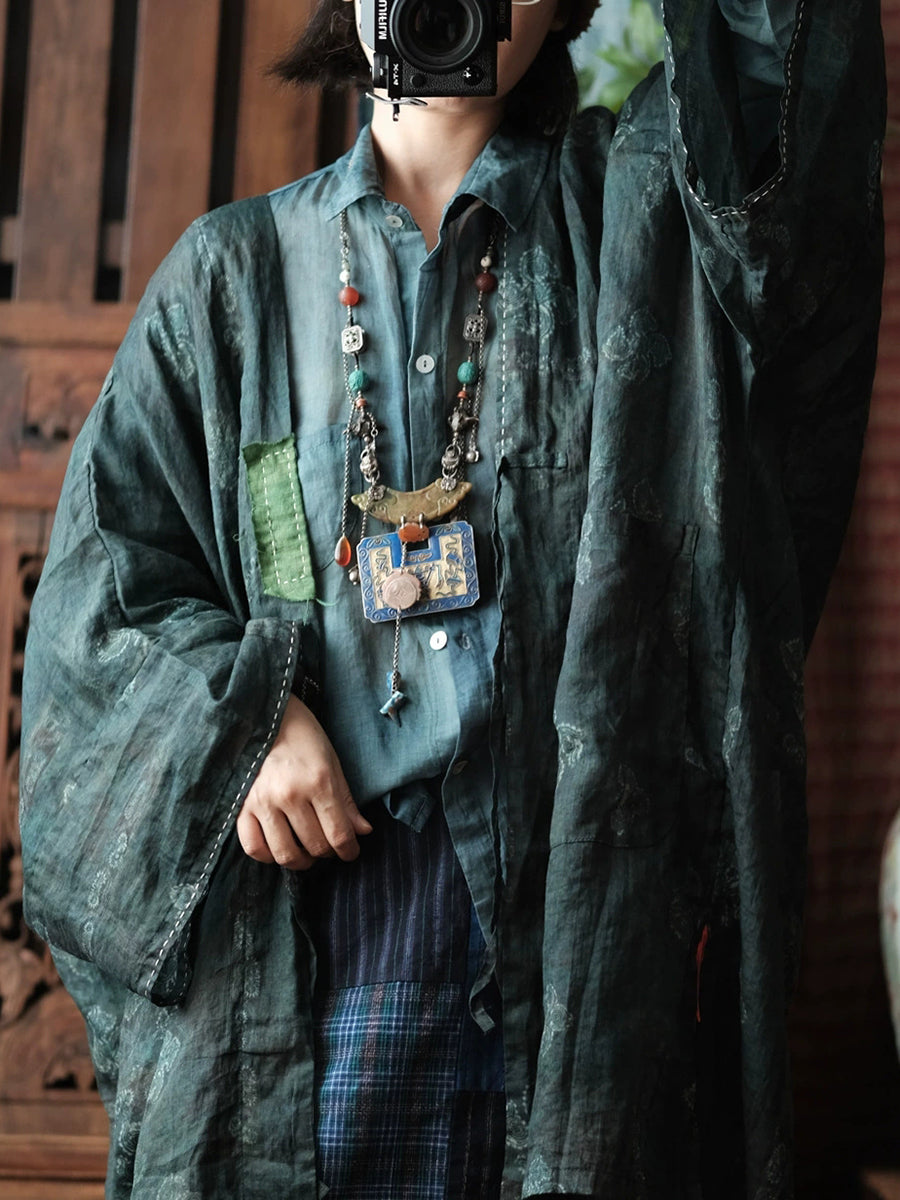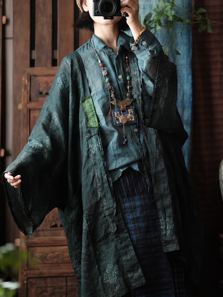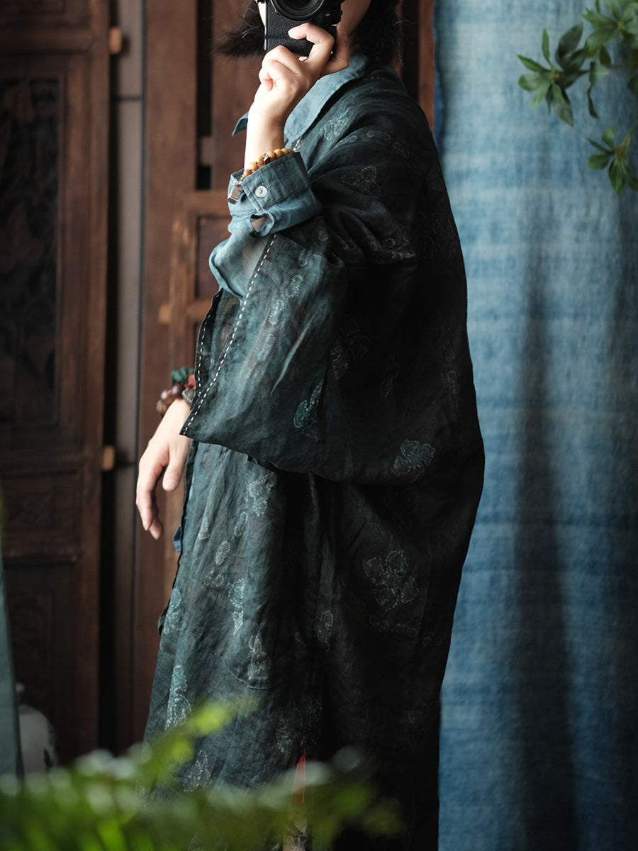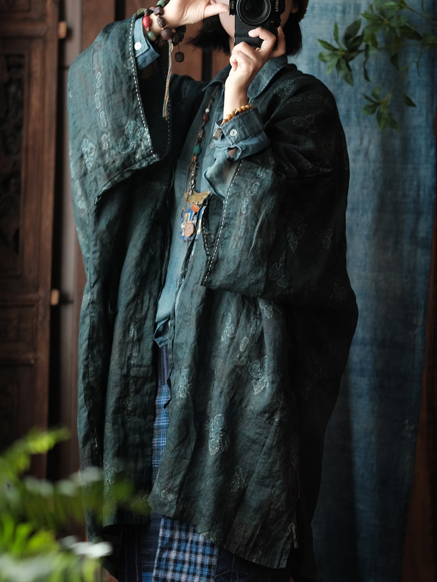 Abrigo de ramio con cuello en V y flores vintage de primavera para mujer