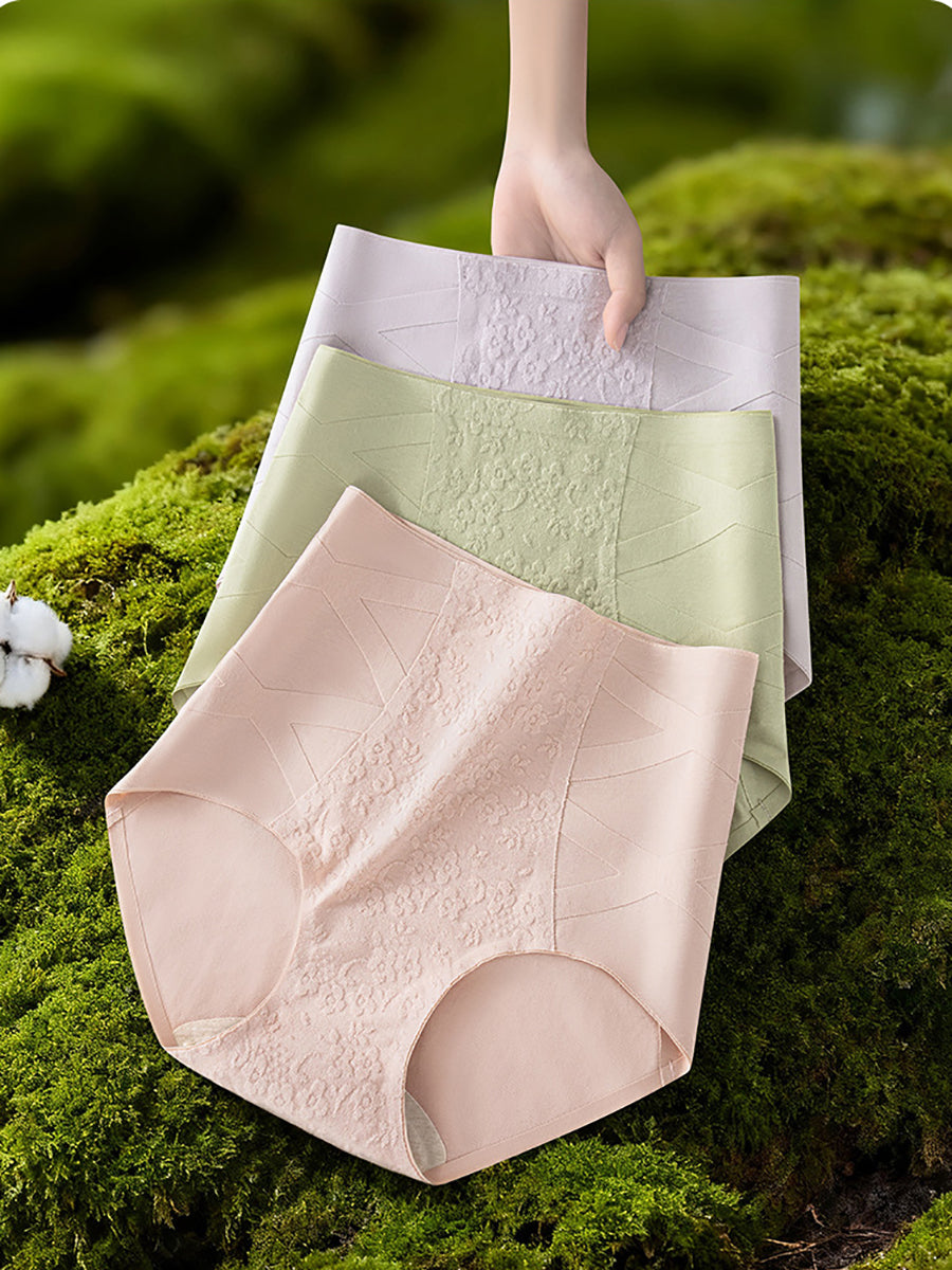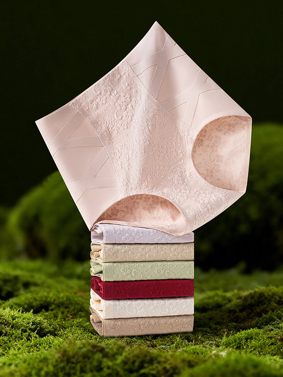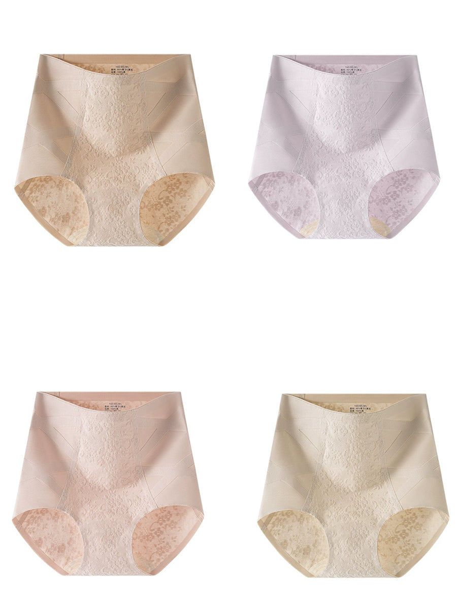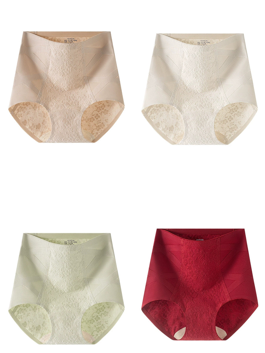 4 piezas de ropa interior de cintura alta de jacquard artístico para mujer