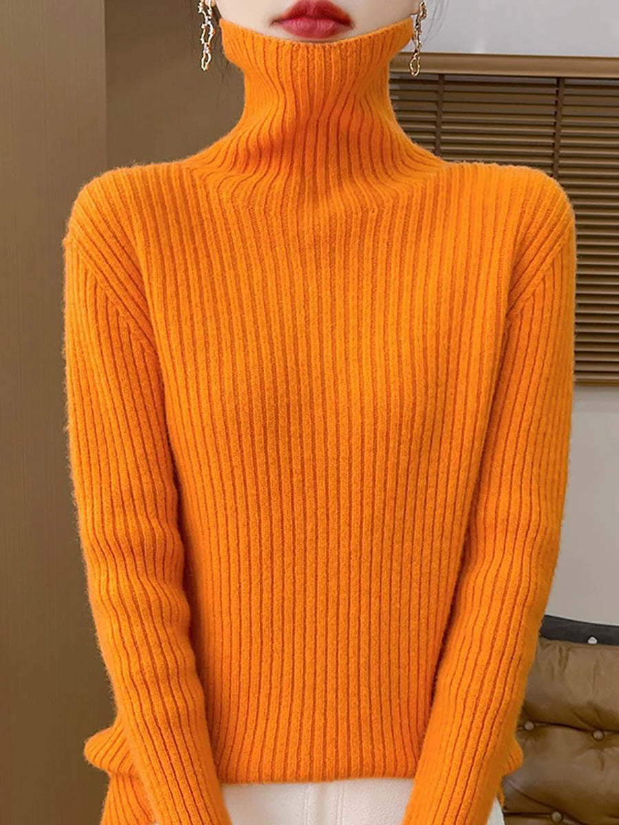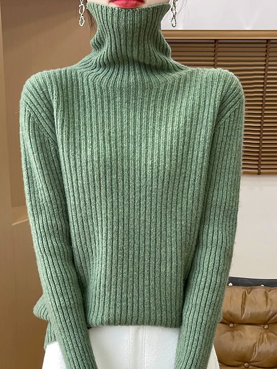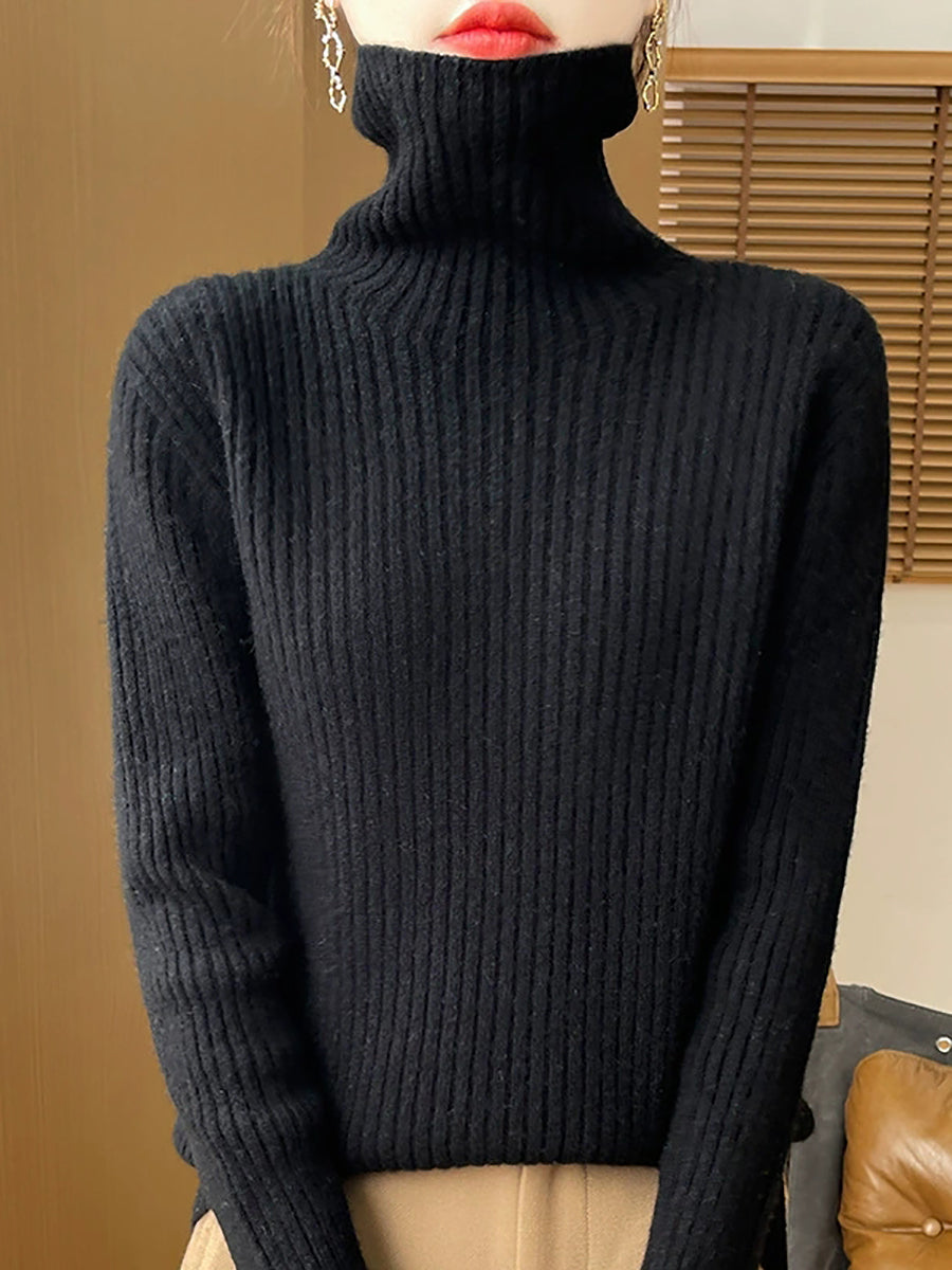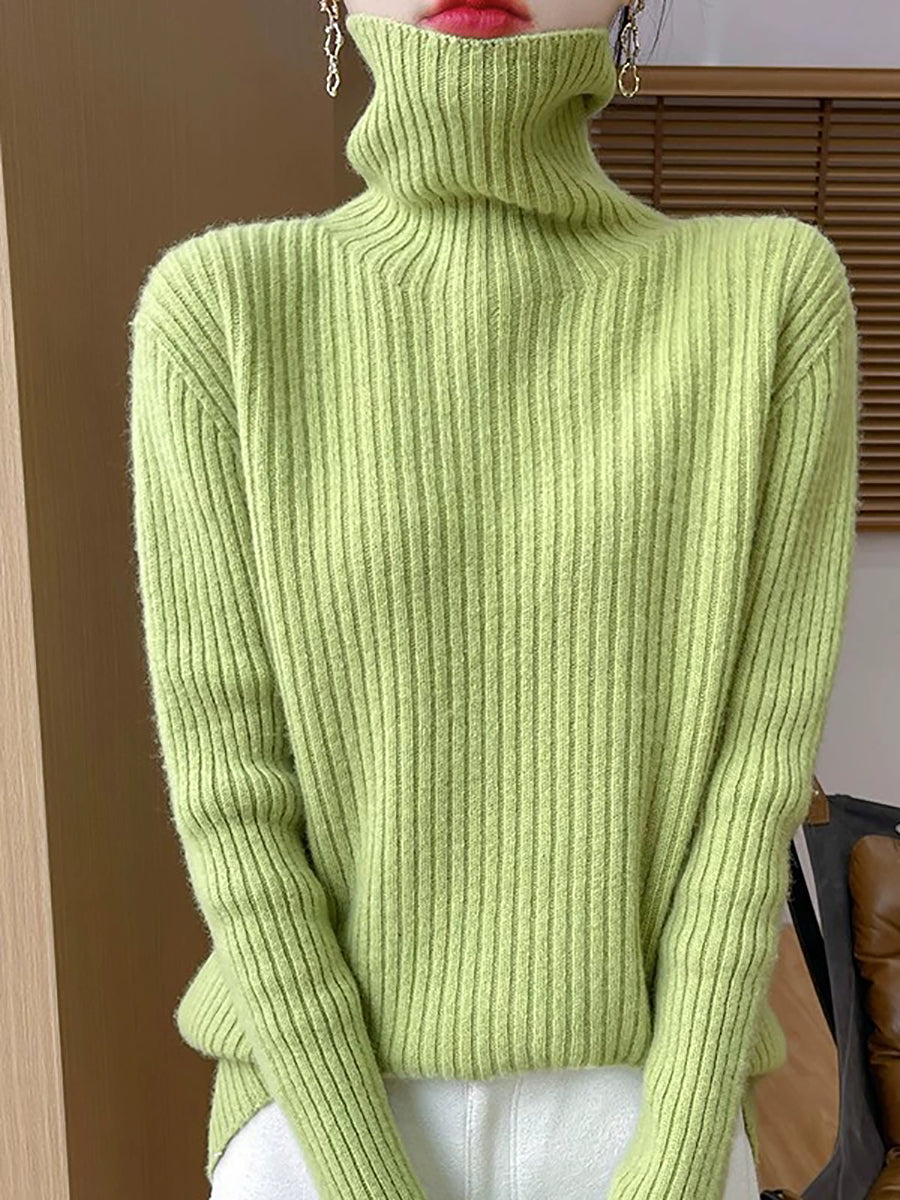 Suéter de lana de cuello alto de color puro informal de primavera para mujer