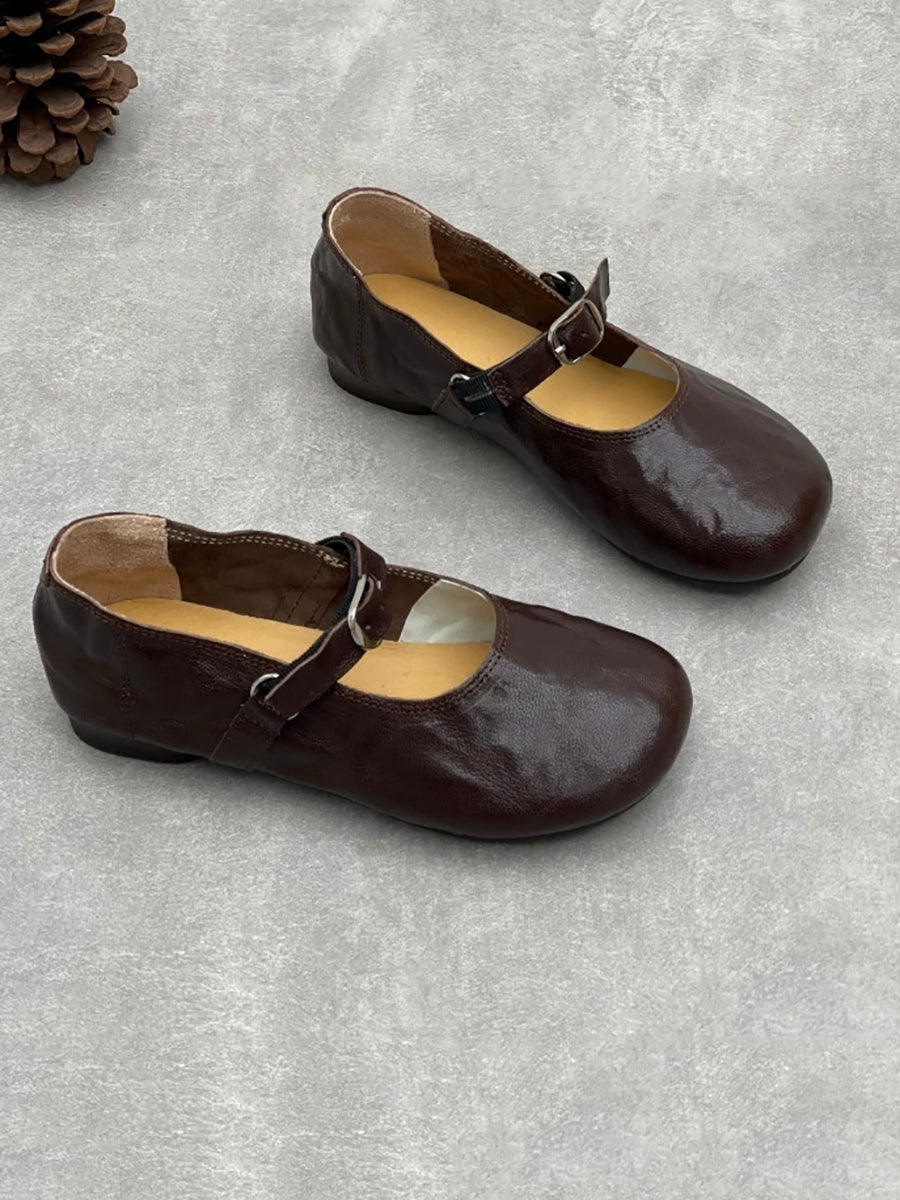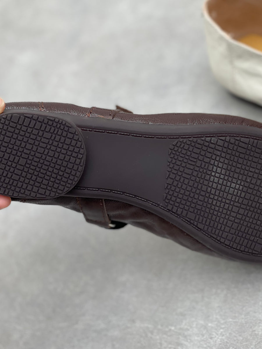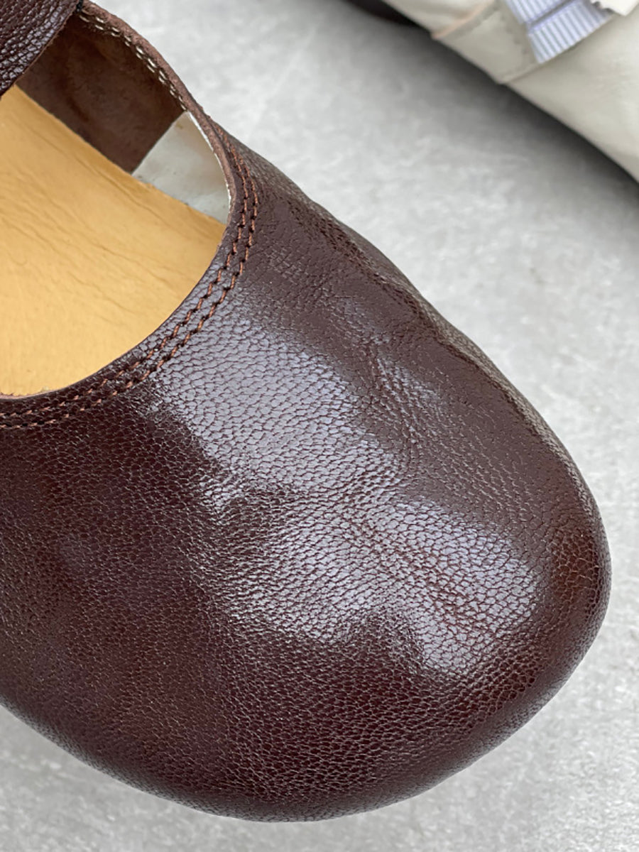Zapatos de tacón bajo de piel auténtica vintage de primavera para mujer