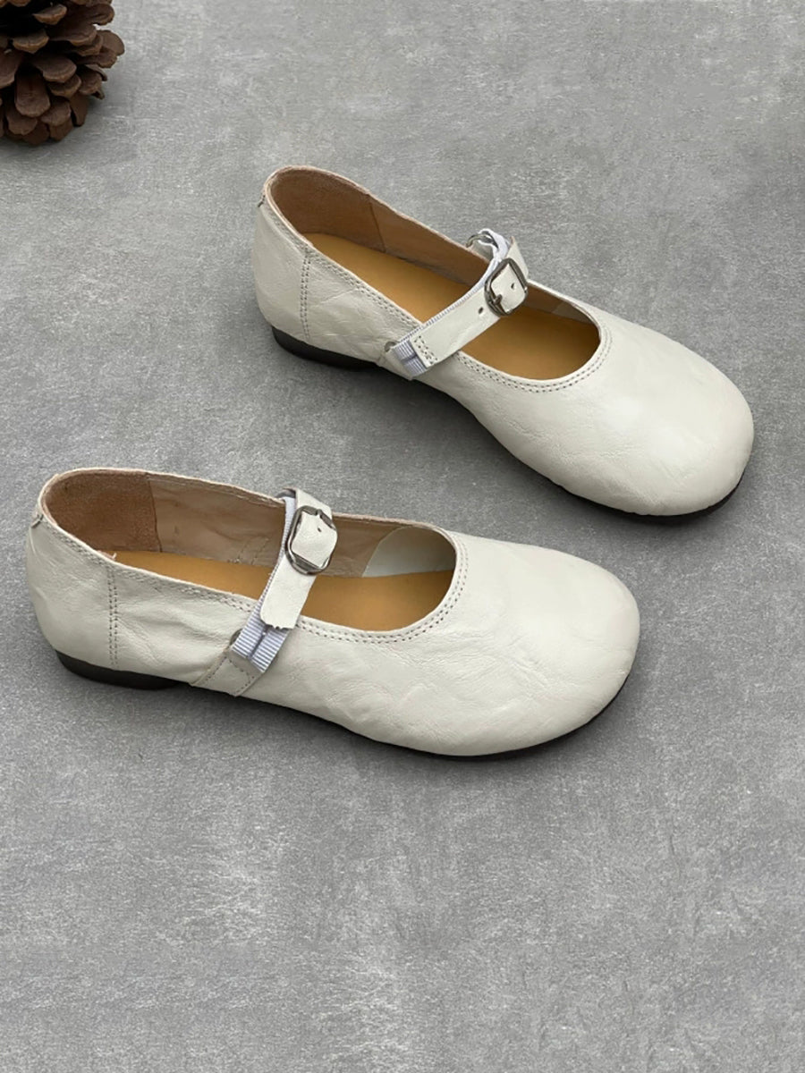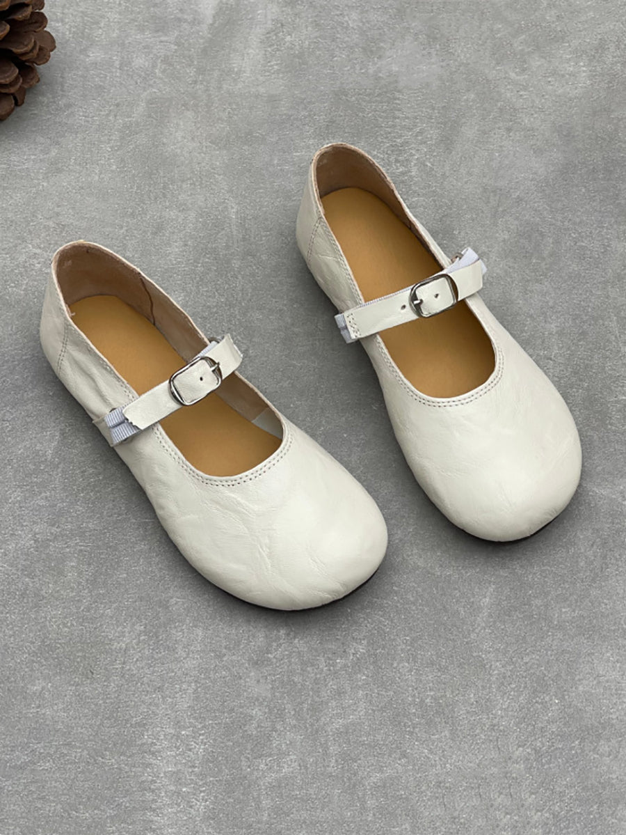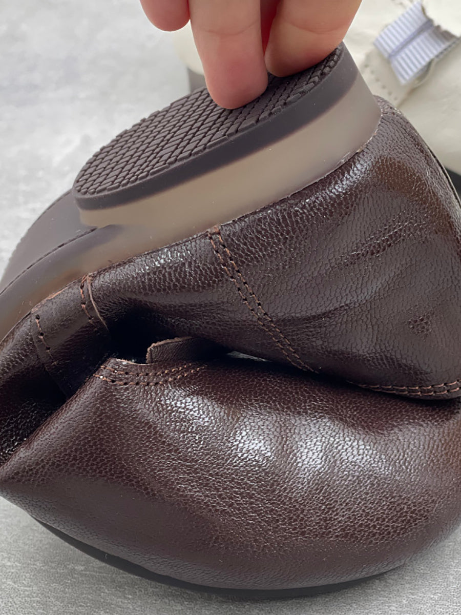 Zapatos de tacón bajo de piel auténtica vintage de primavera para mujer