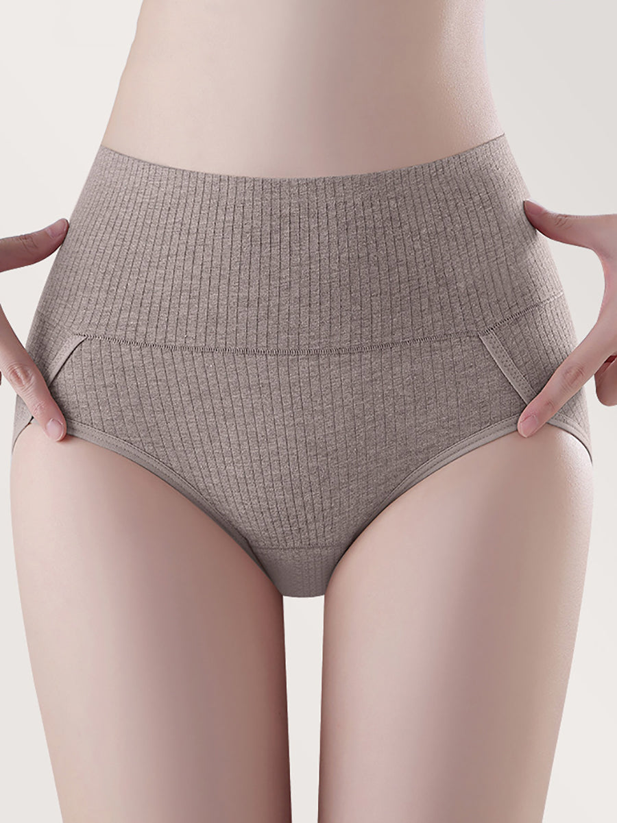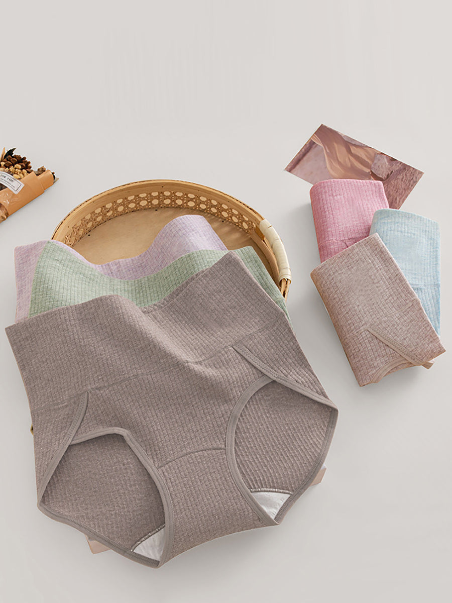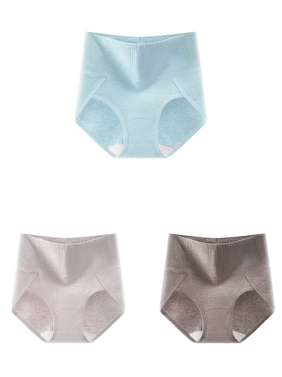 3 piezas de ropa interior de cintura alta de color puro y artístico para mujer