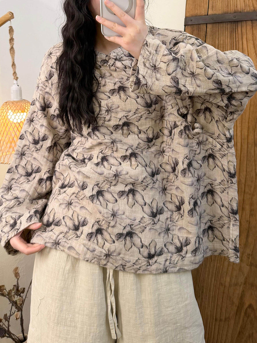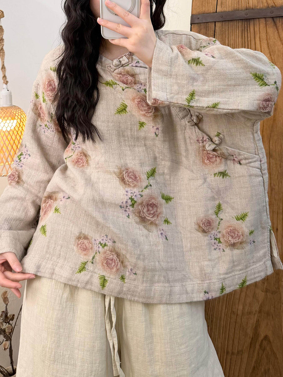 Blusa de cuello redondo con flores primaverales artísticas para mujer