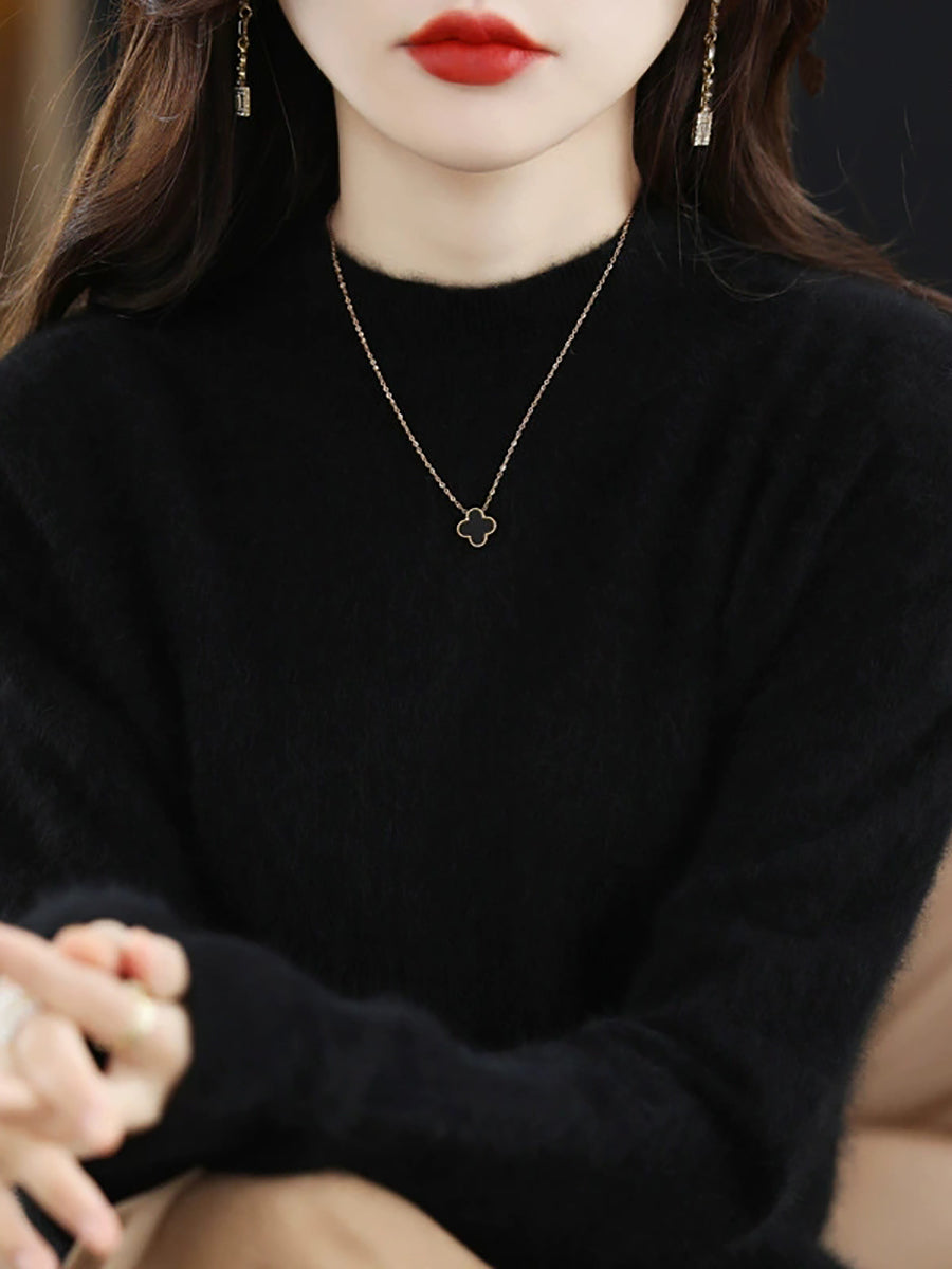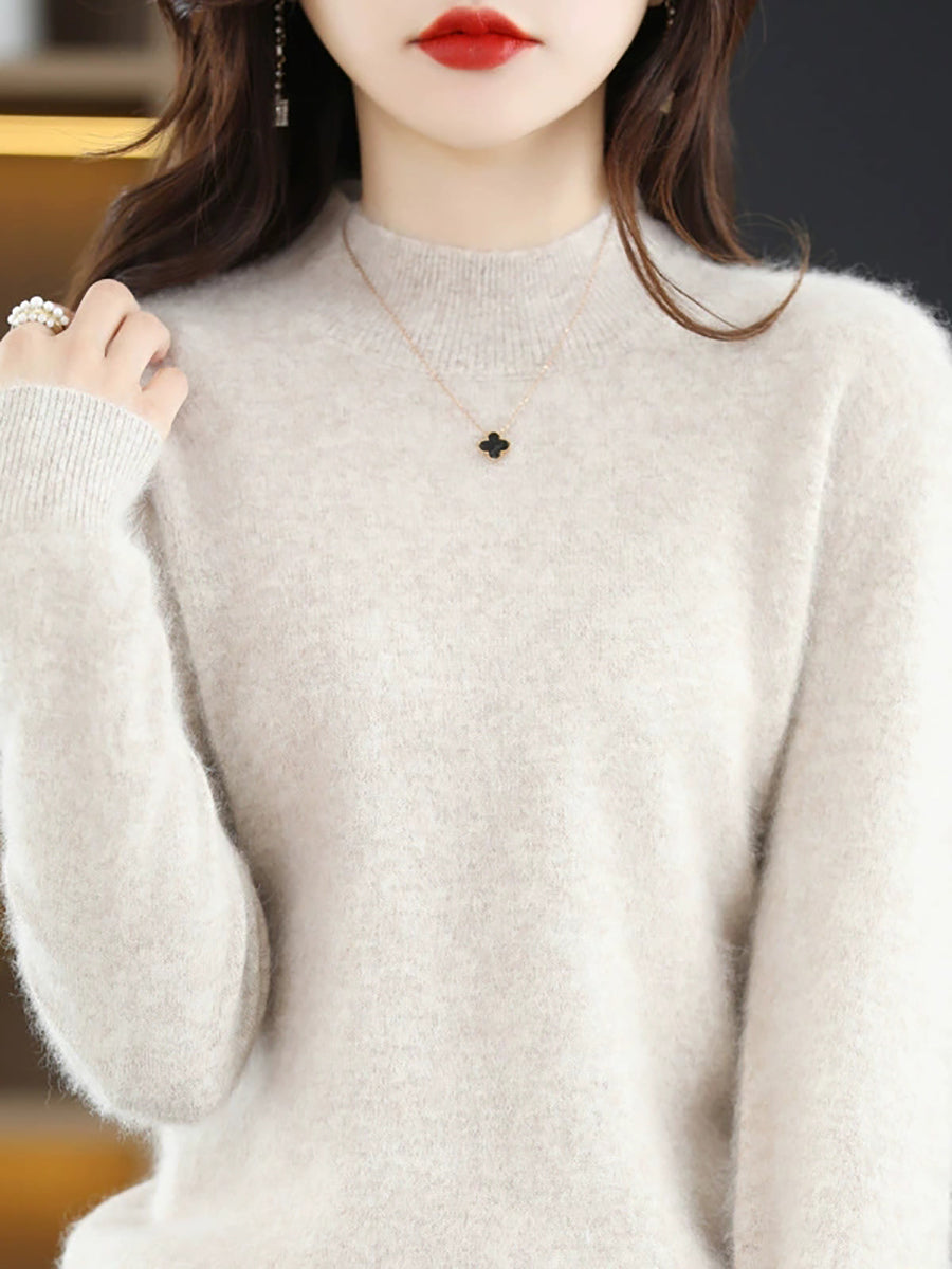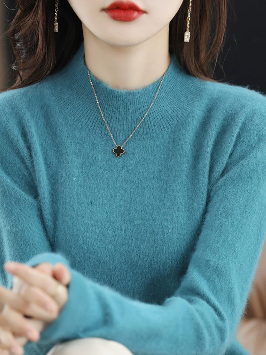 Suéter casual de cuello alto de color puro para mujer, primavera