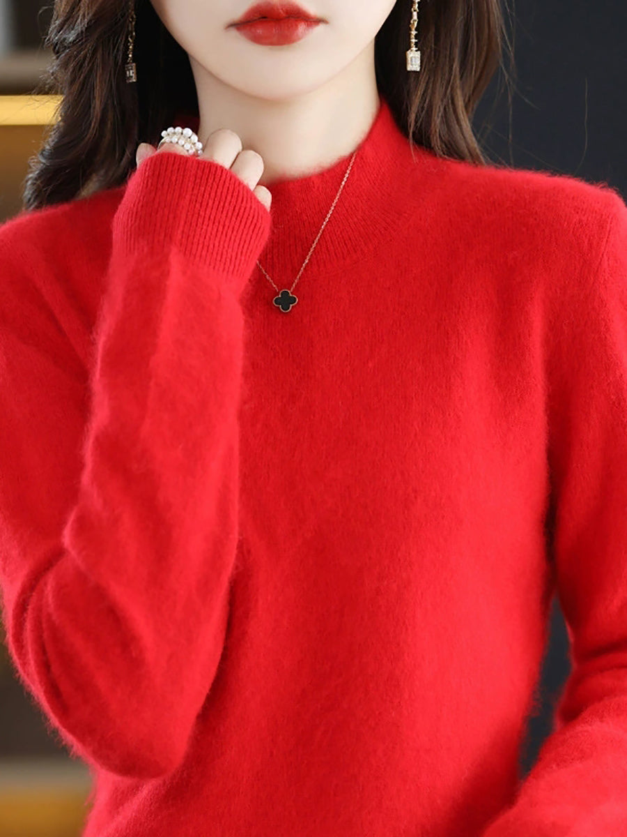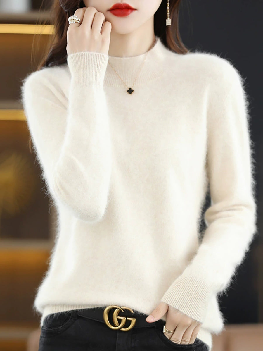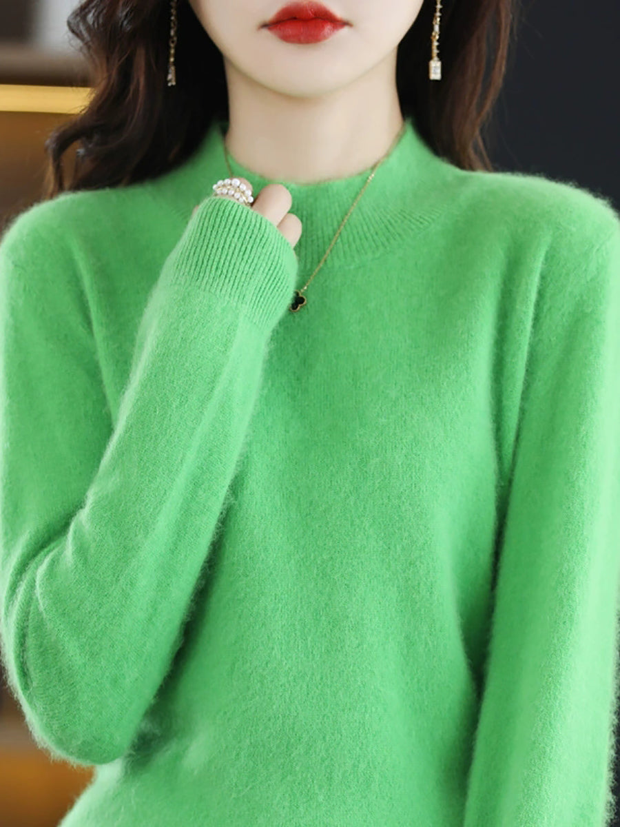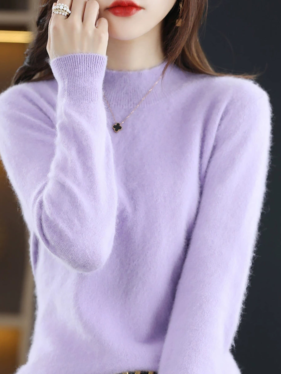Suéter casual de cuello alto de color puro para mujer, primavera