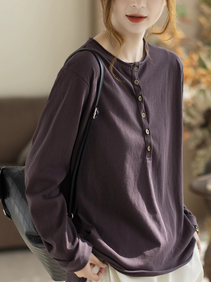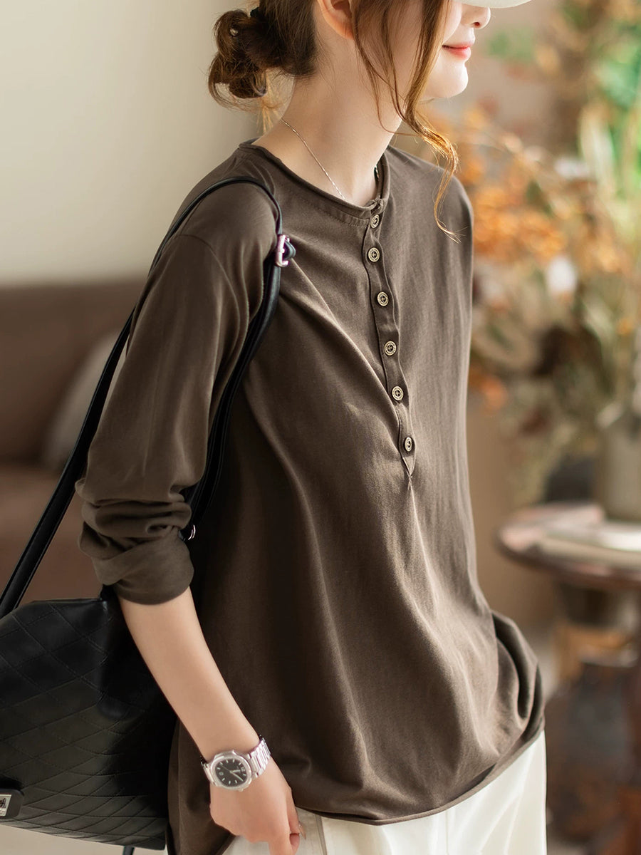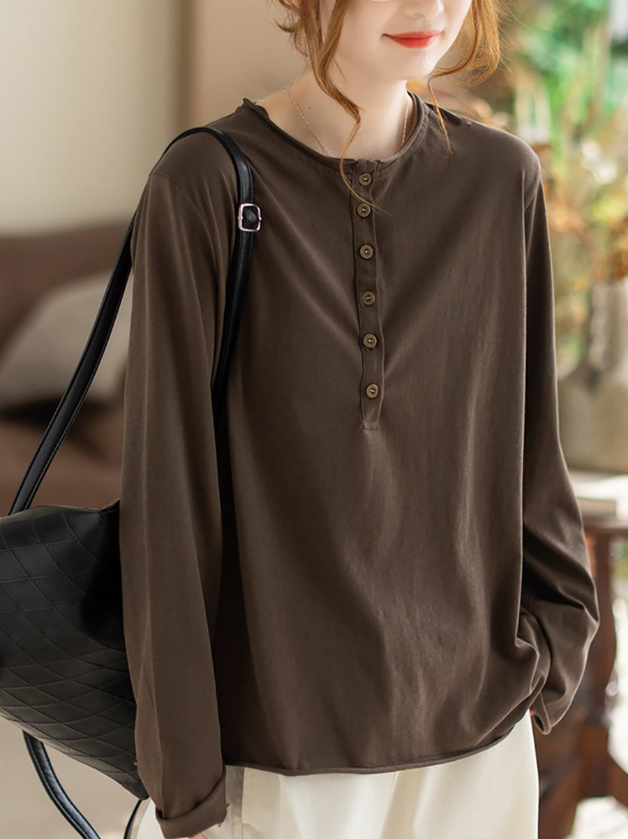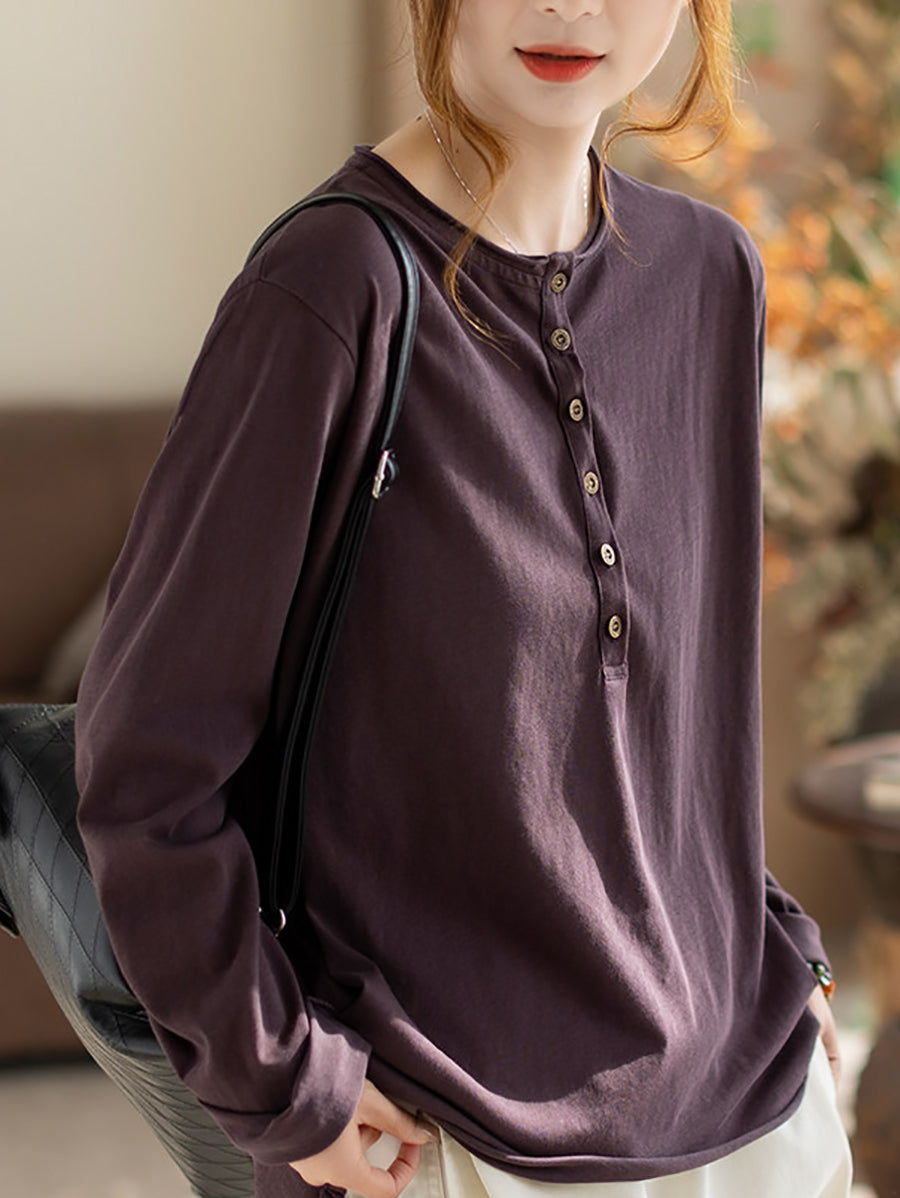 Blusa de algodón con cuello redondo y estampado artístico de primavera para mujer
