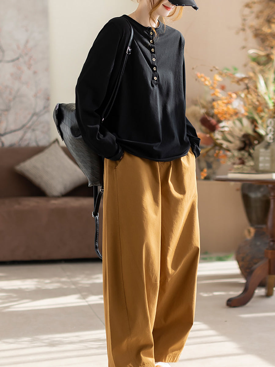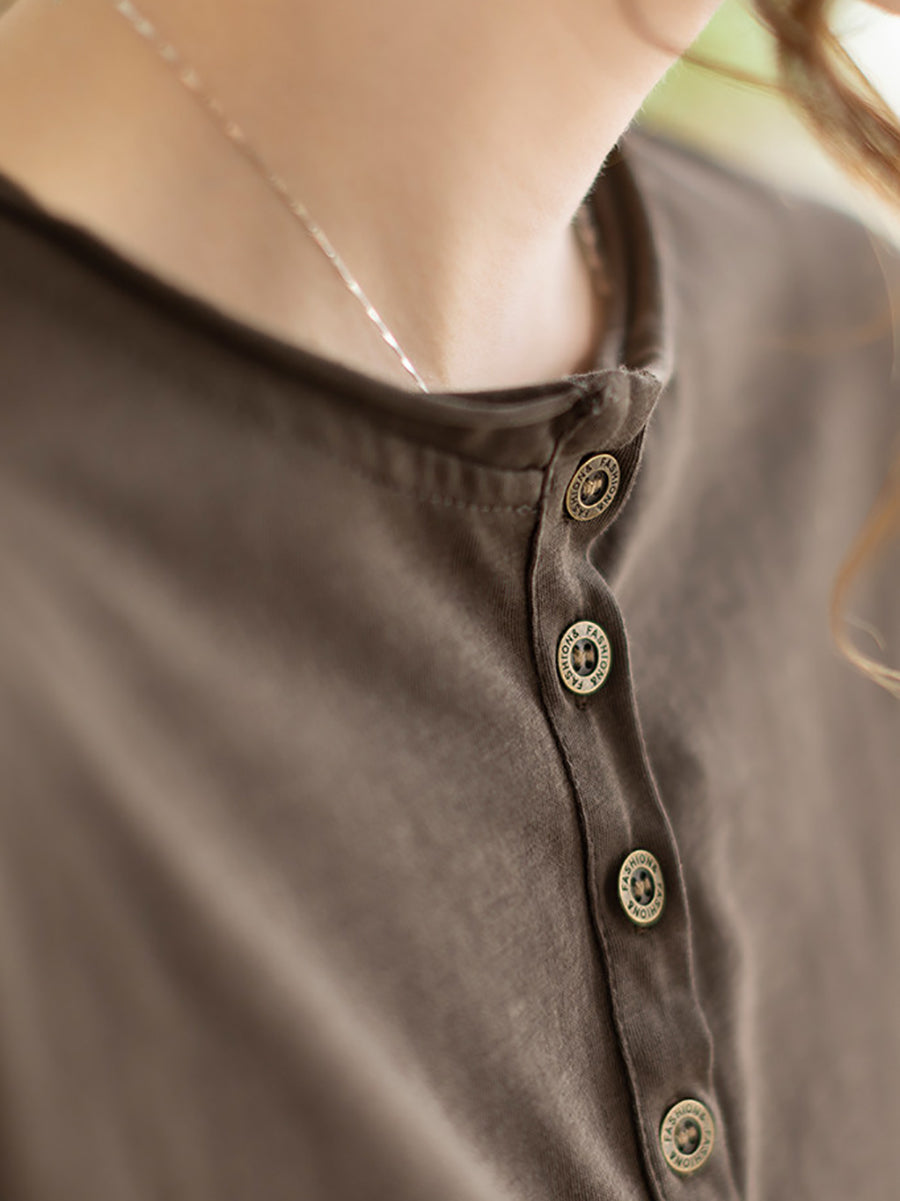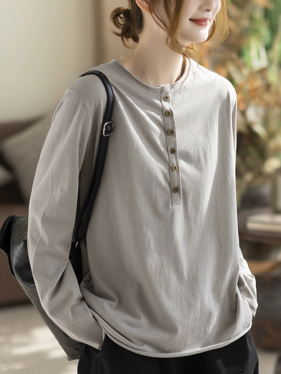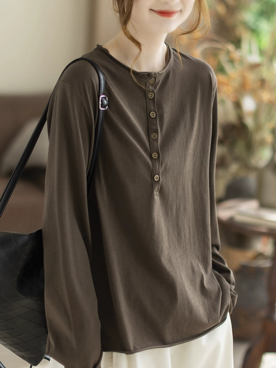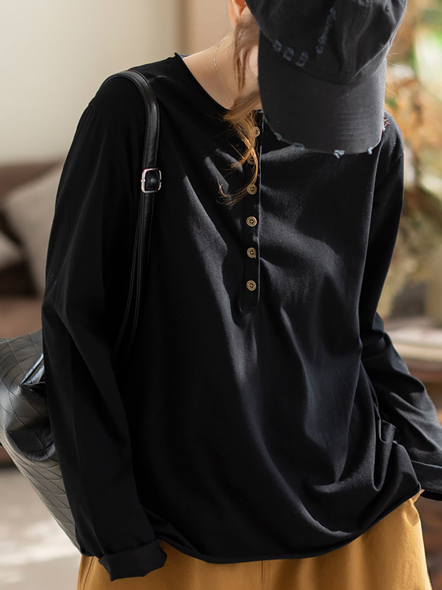 Blusa de algodón con cuello redondo y estampado artístico de primavera para mujer
