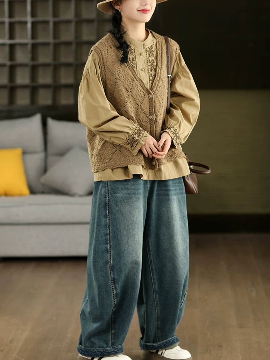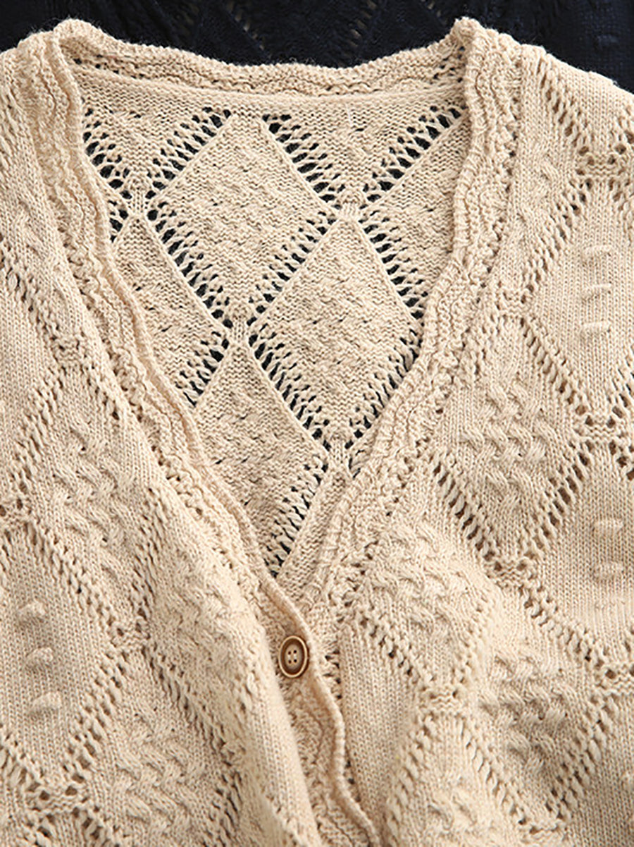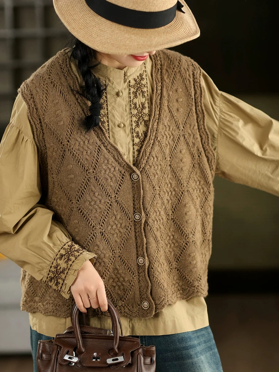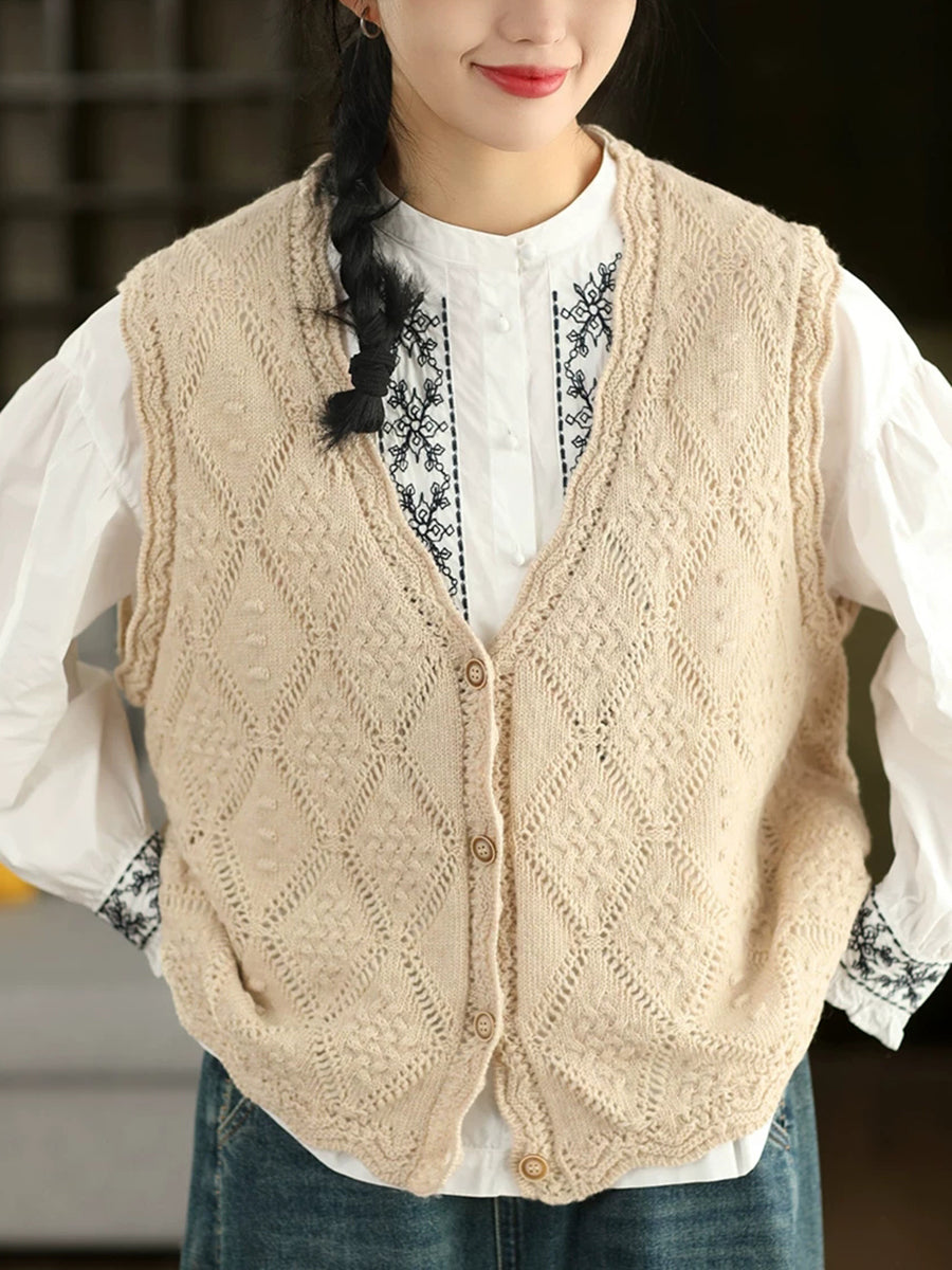 Chaleco de punto con cuello en V y romboides artísticos de primavera para mujer