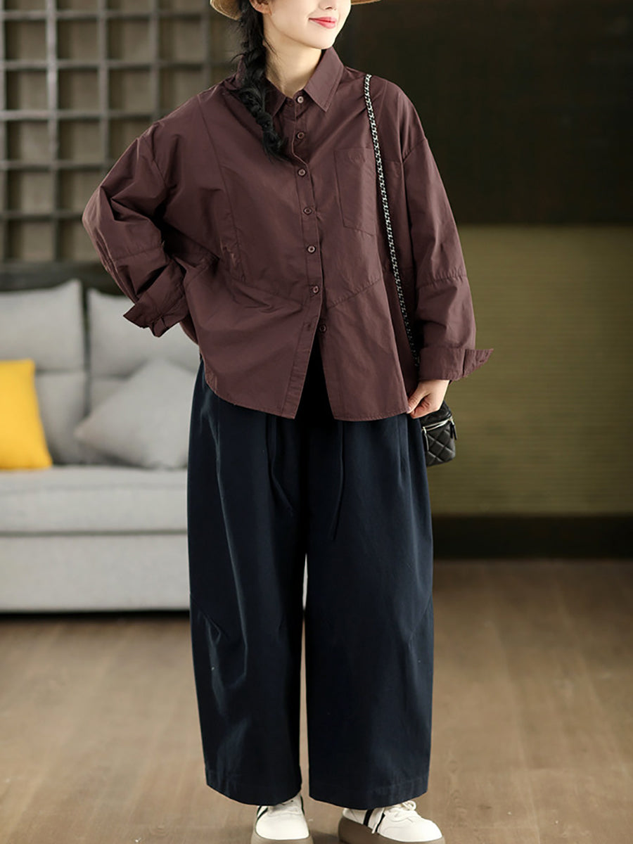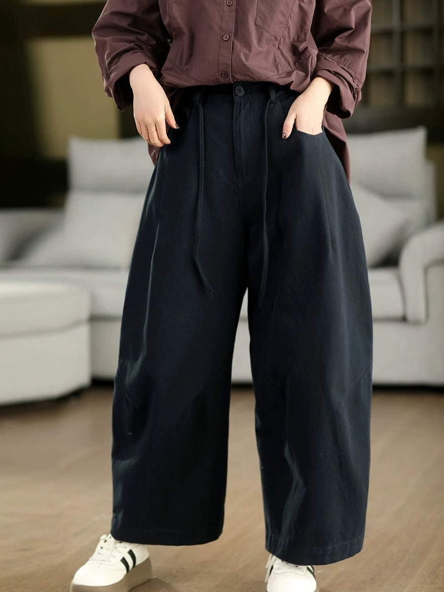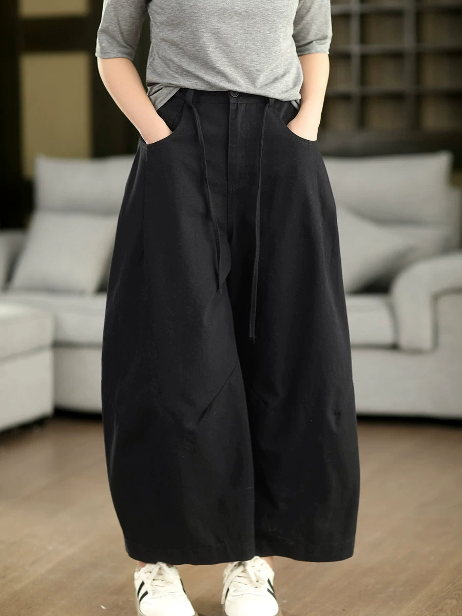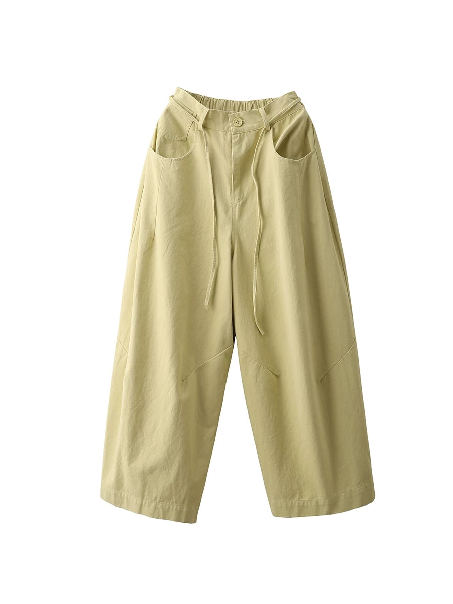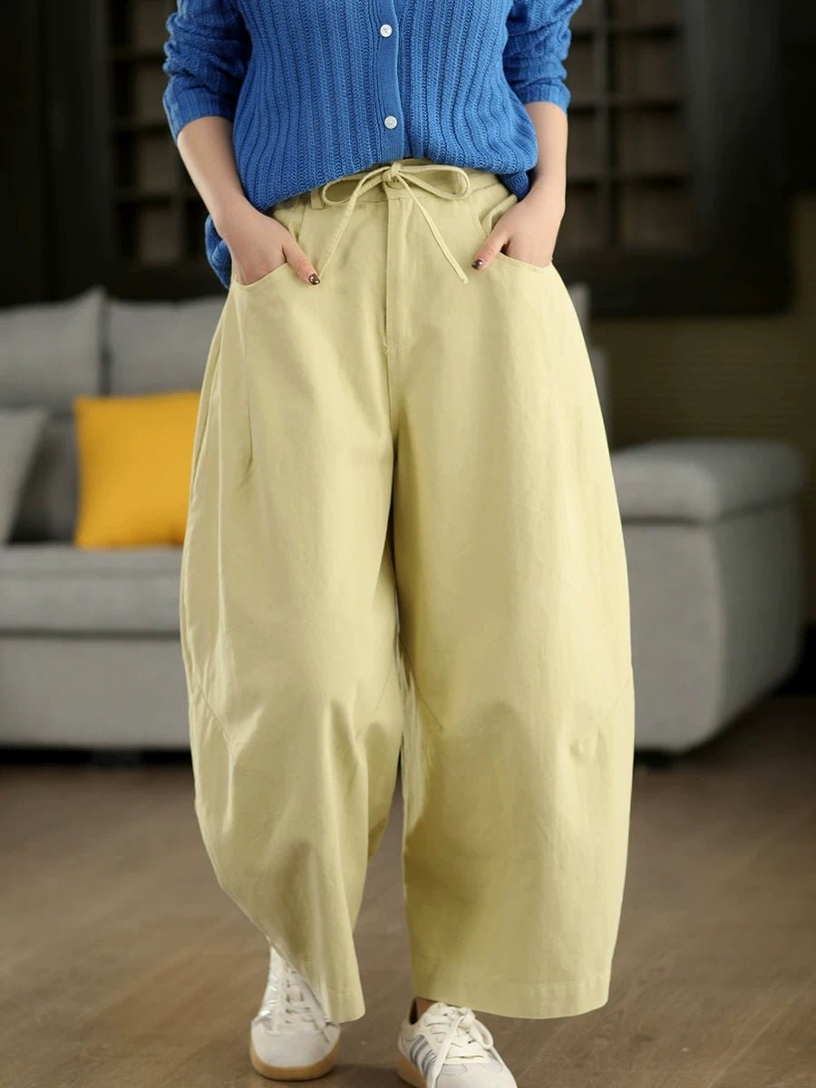 Pantalones anchos 100 % algodón de color puro para mujer, informales, de primavera