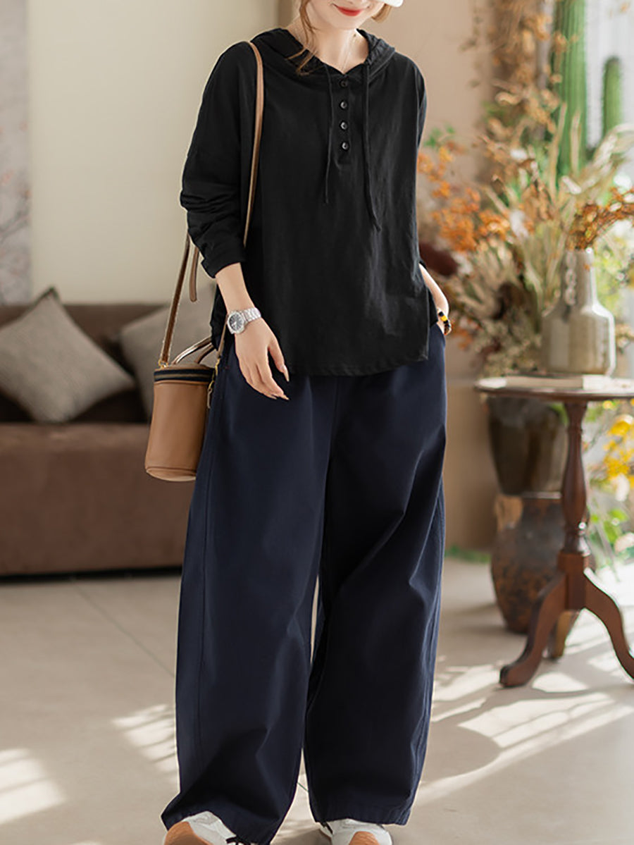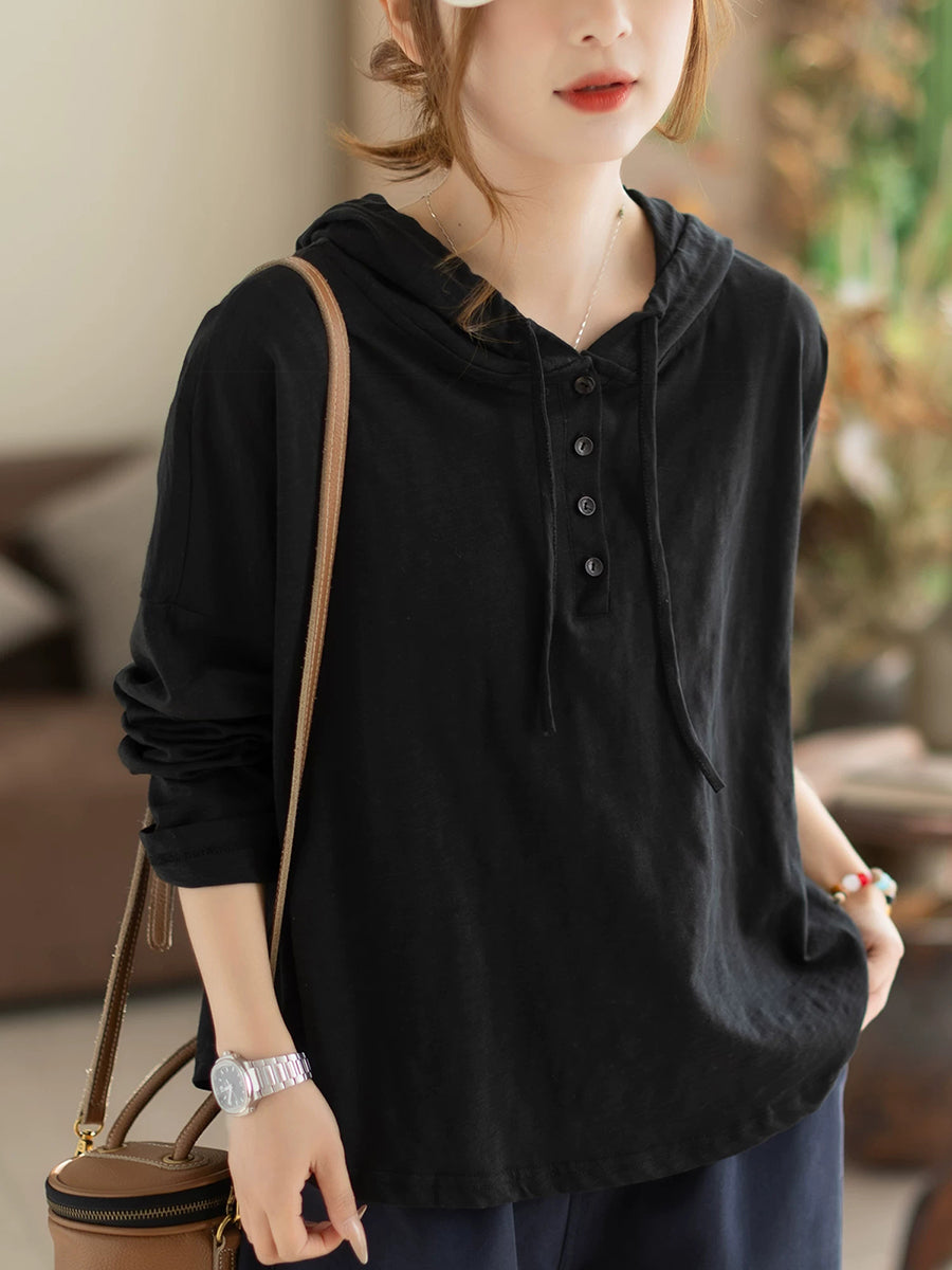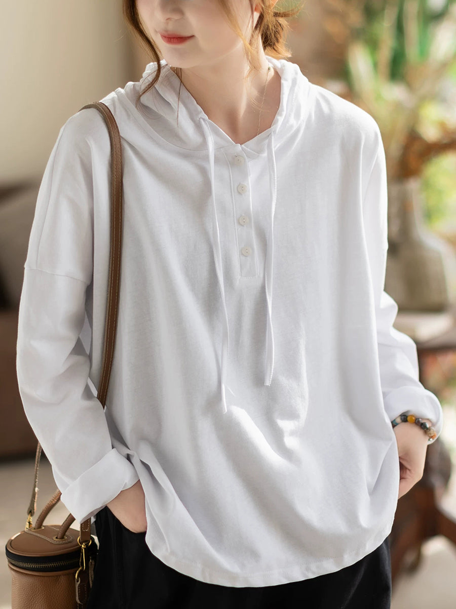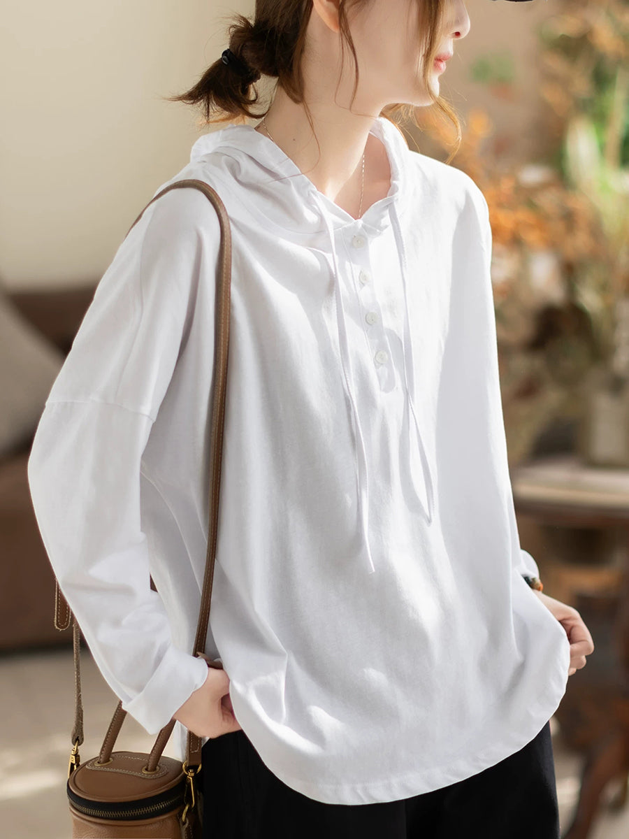 Sudadera con capucha de algodón de color puro informal de primavera para mujer
