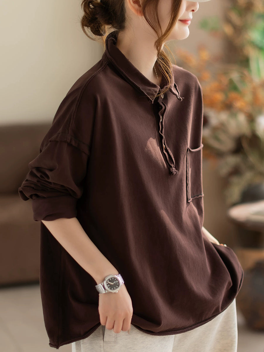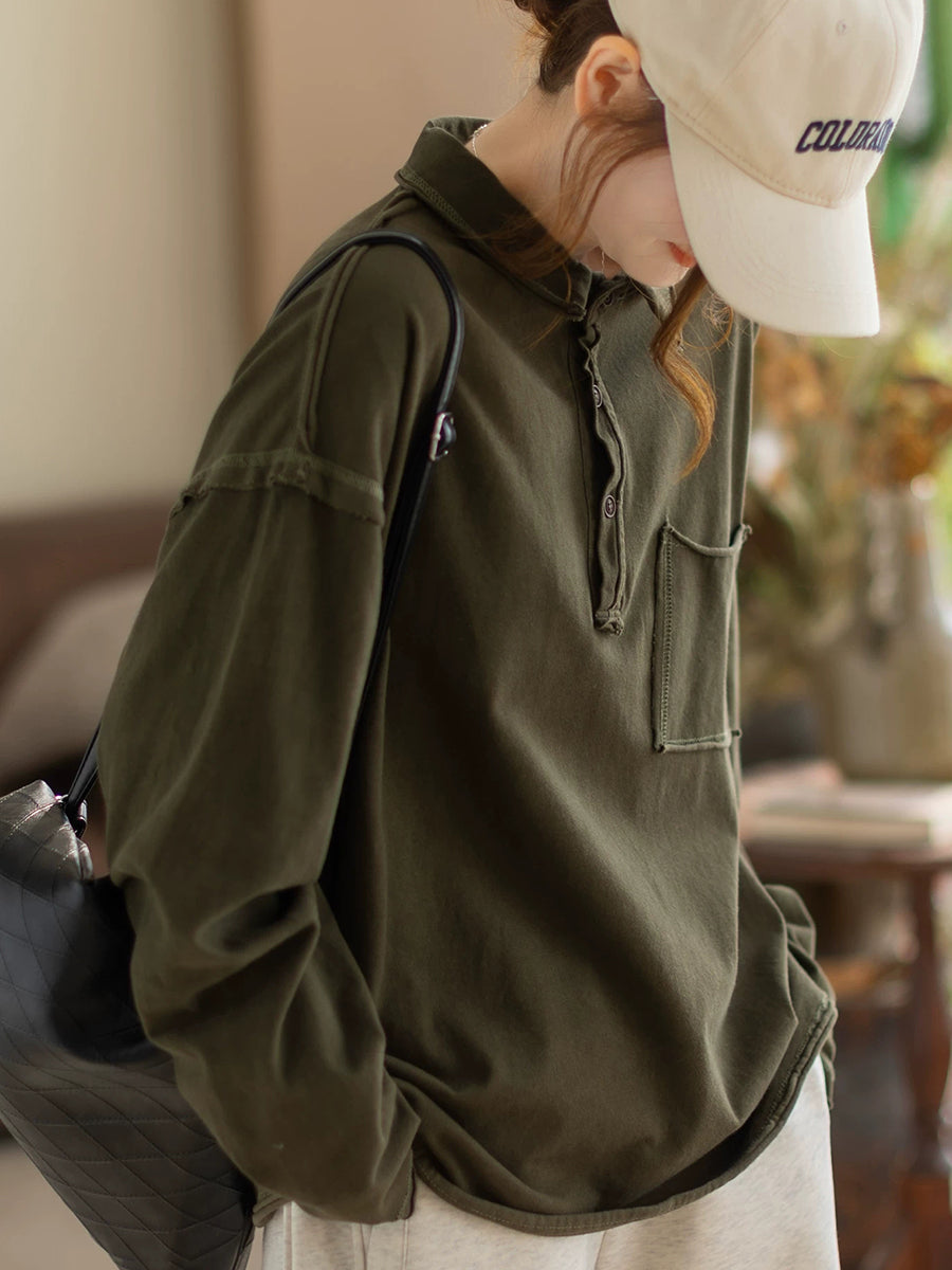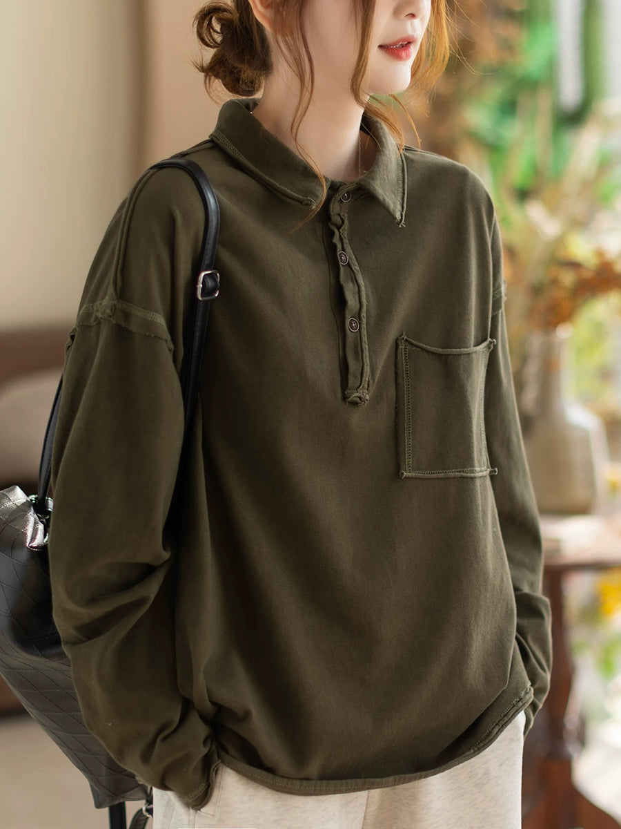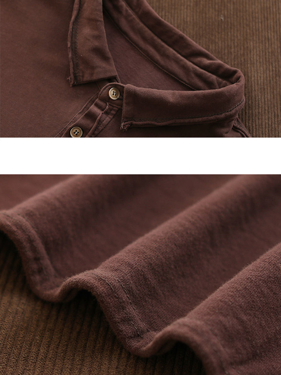 Blusa retro de primavera con cuello vuelto y color puro para mujer