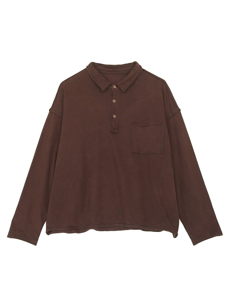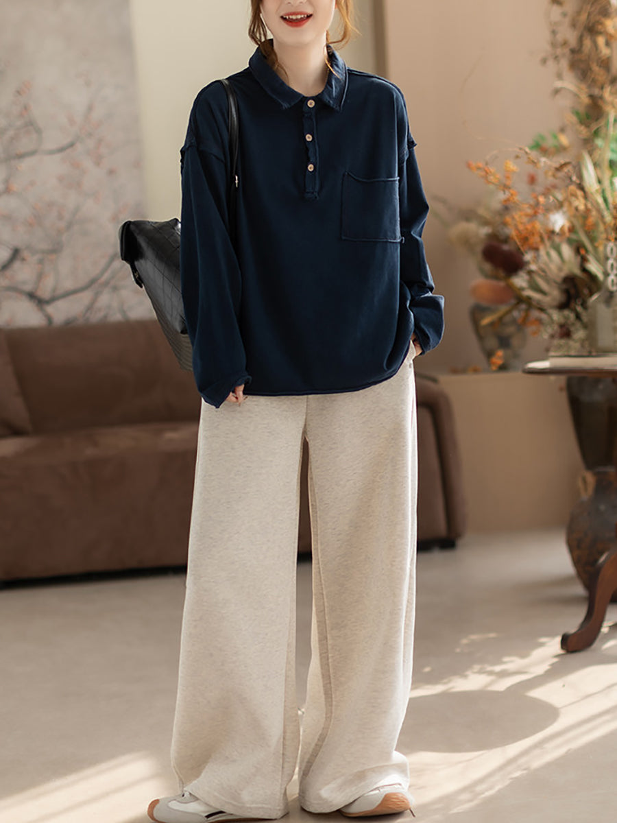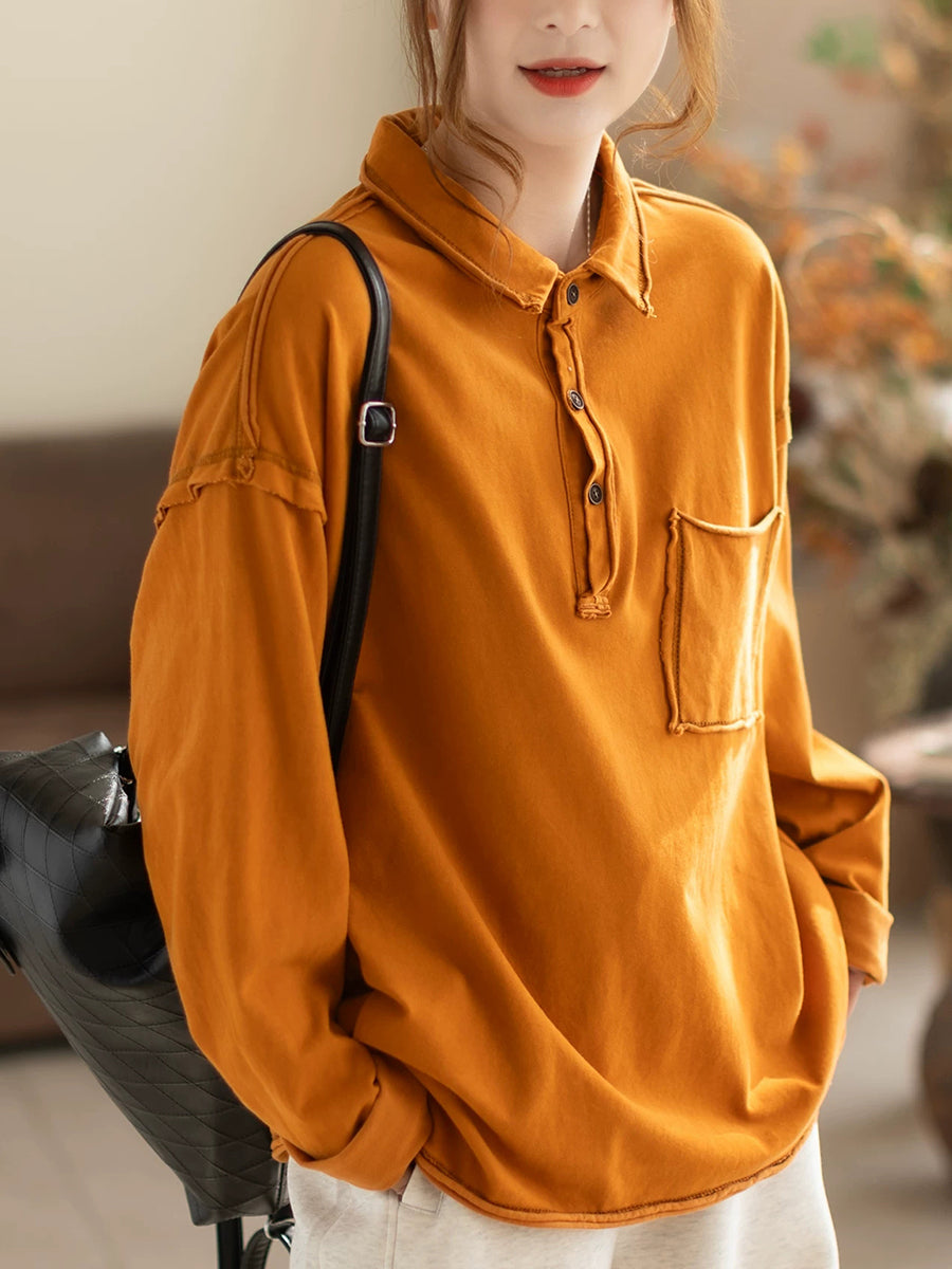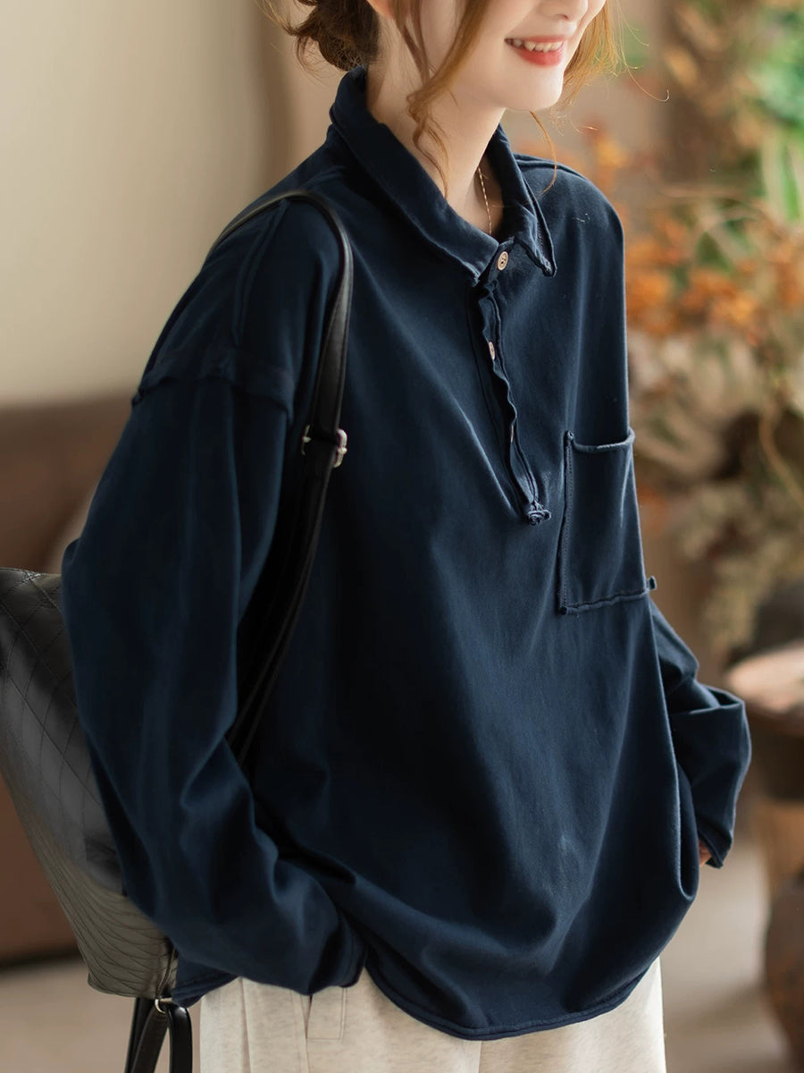 Blusa retro de primavera con cuello vuelto y color puro para mujer