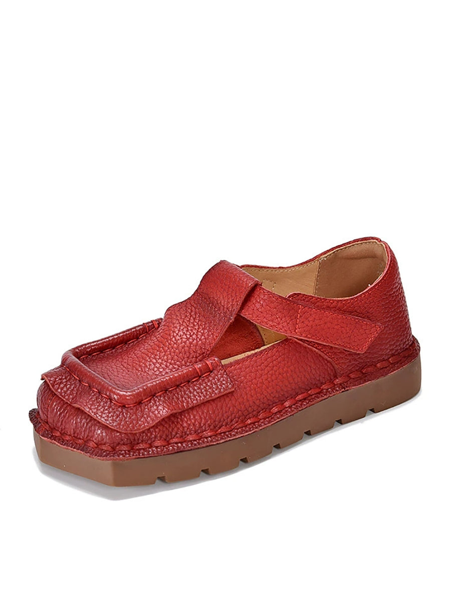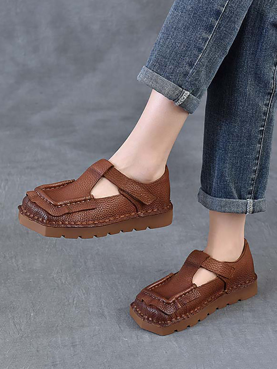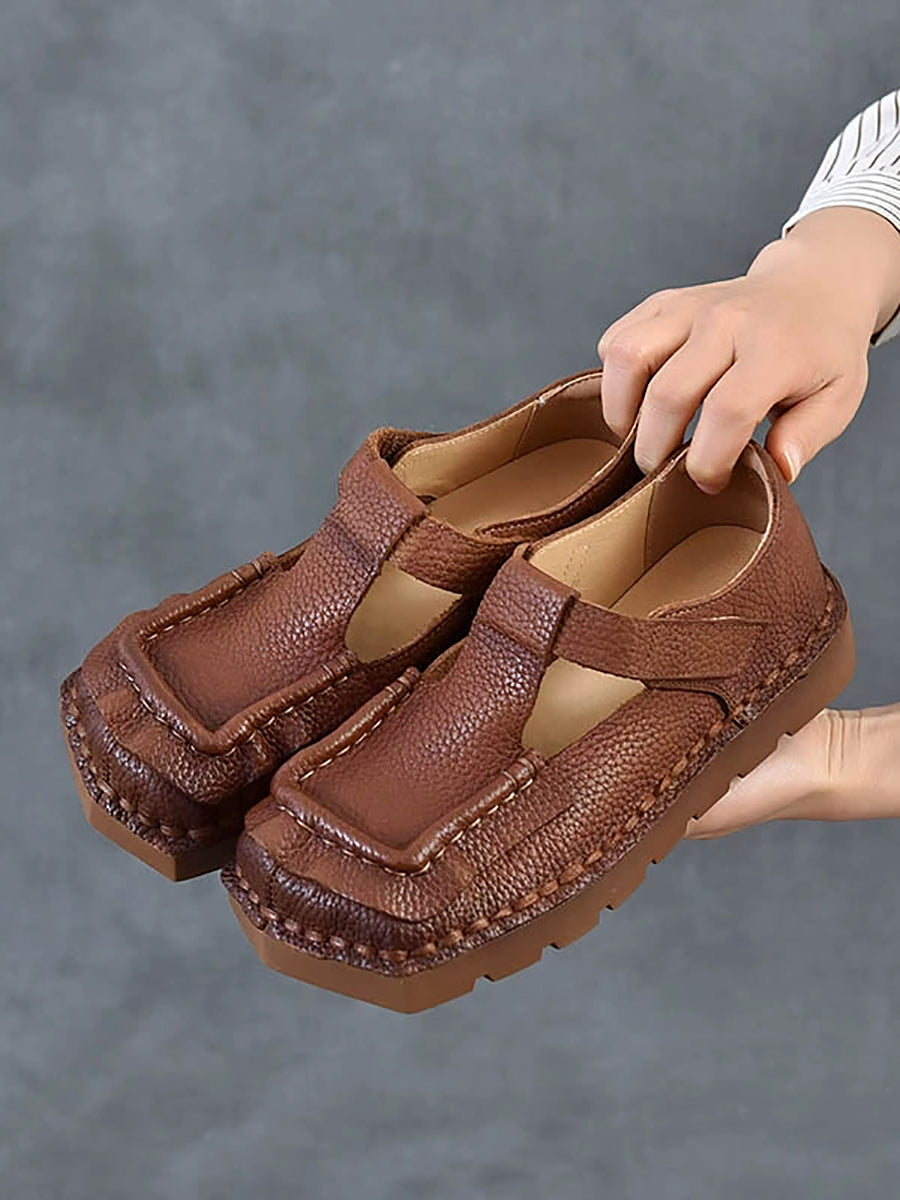 Zapatos vintage de piel auténtica con punta cuadrada para mujer