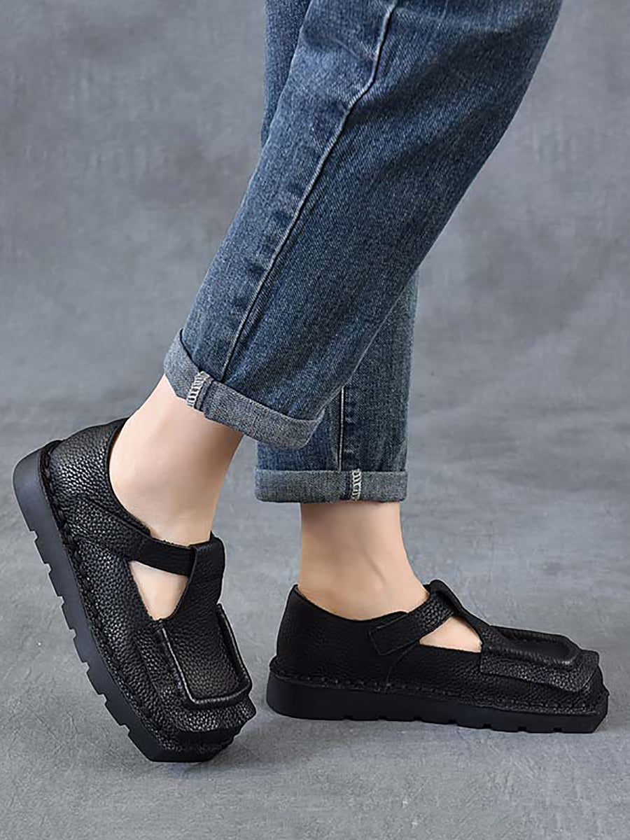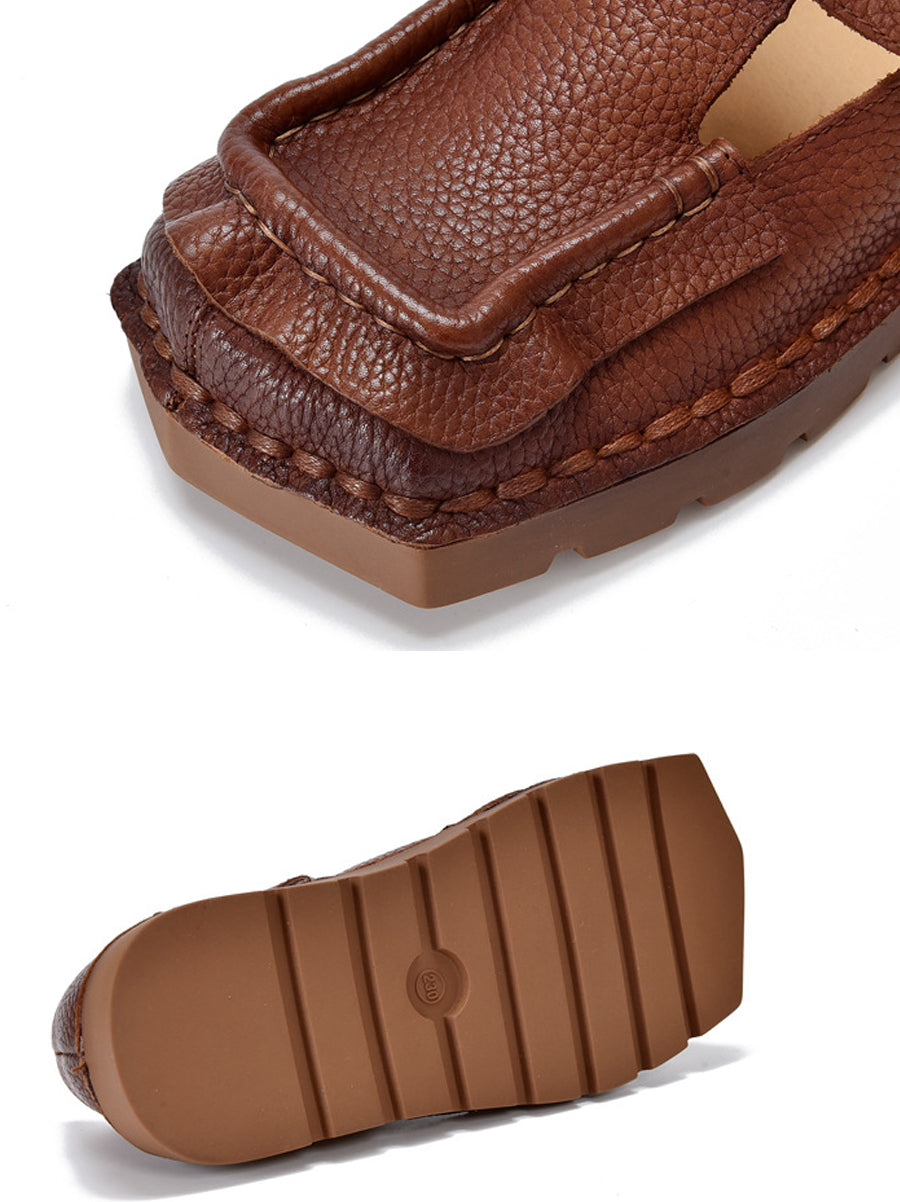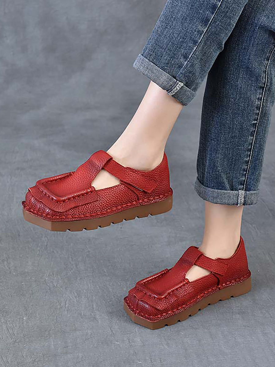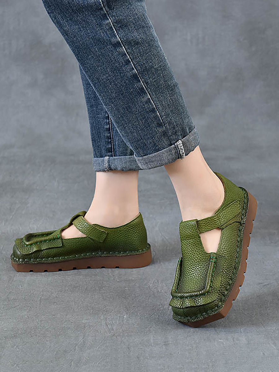 Zapatos vintage de piel auténtica con punta cuadrada para mujer