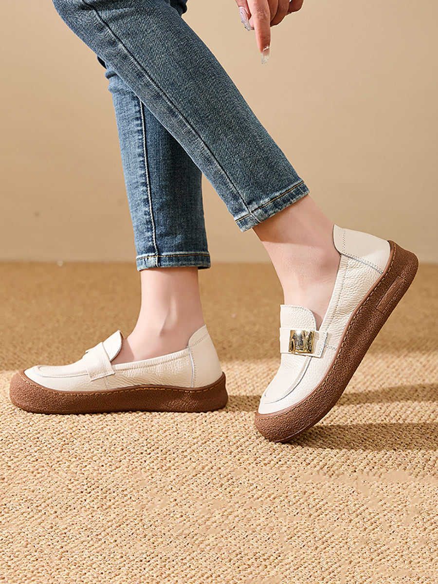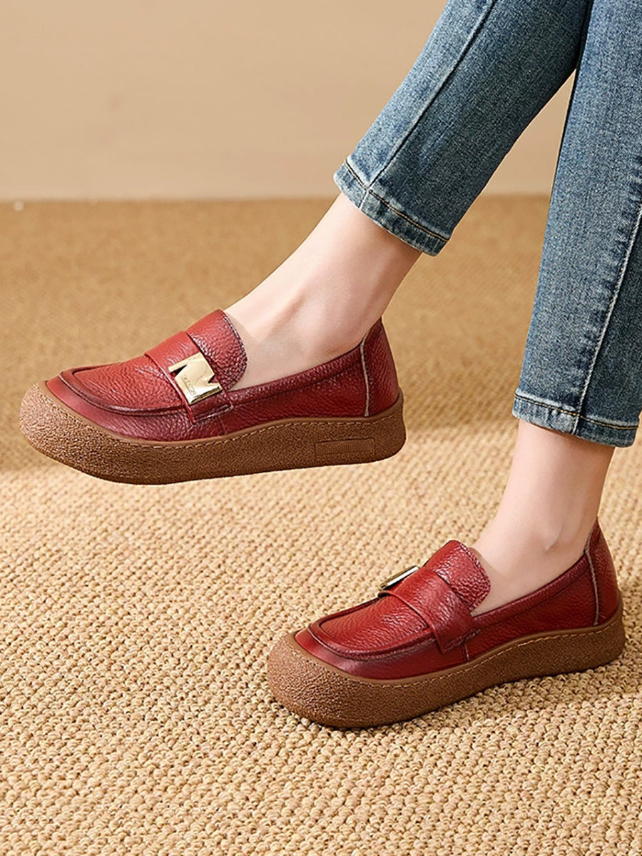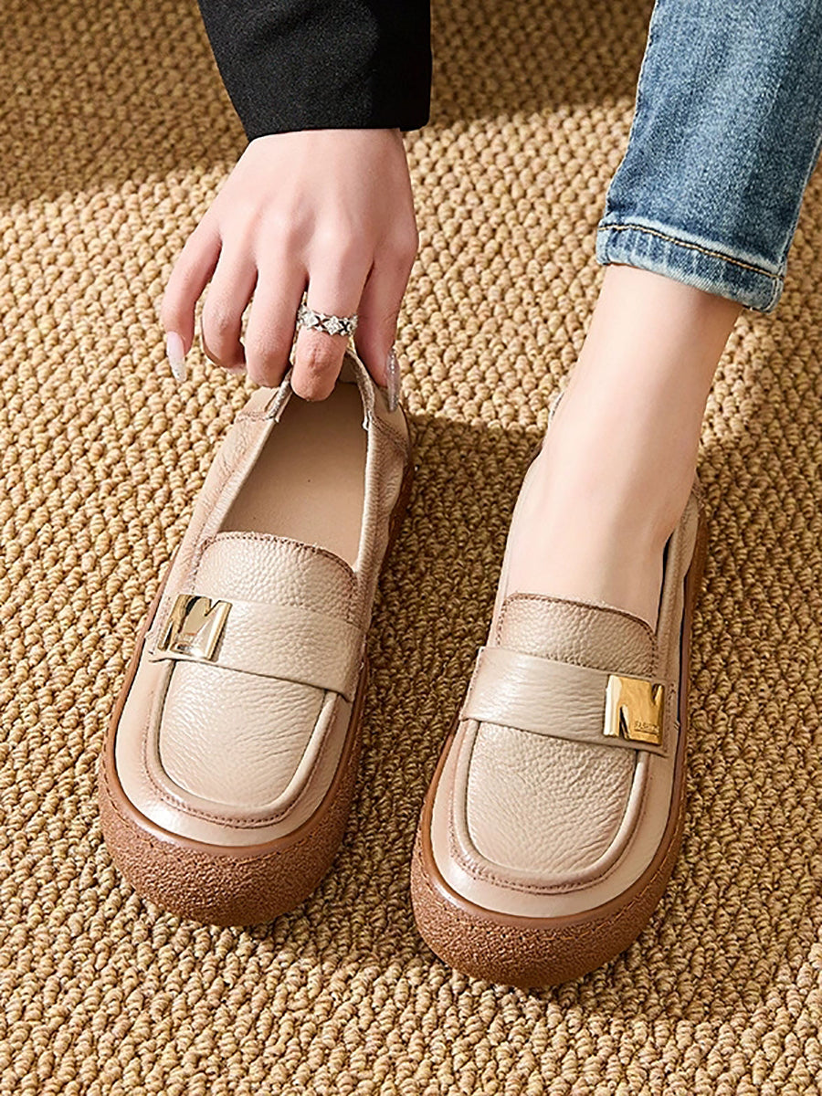 Zapatos planos vintage de piel auténtica para mujer, de primavera