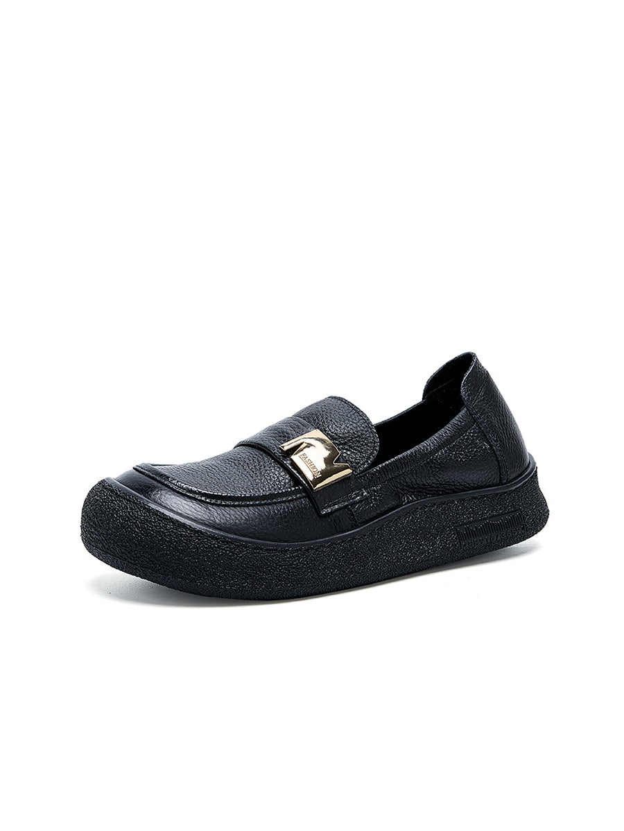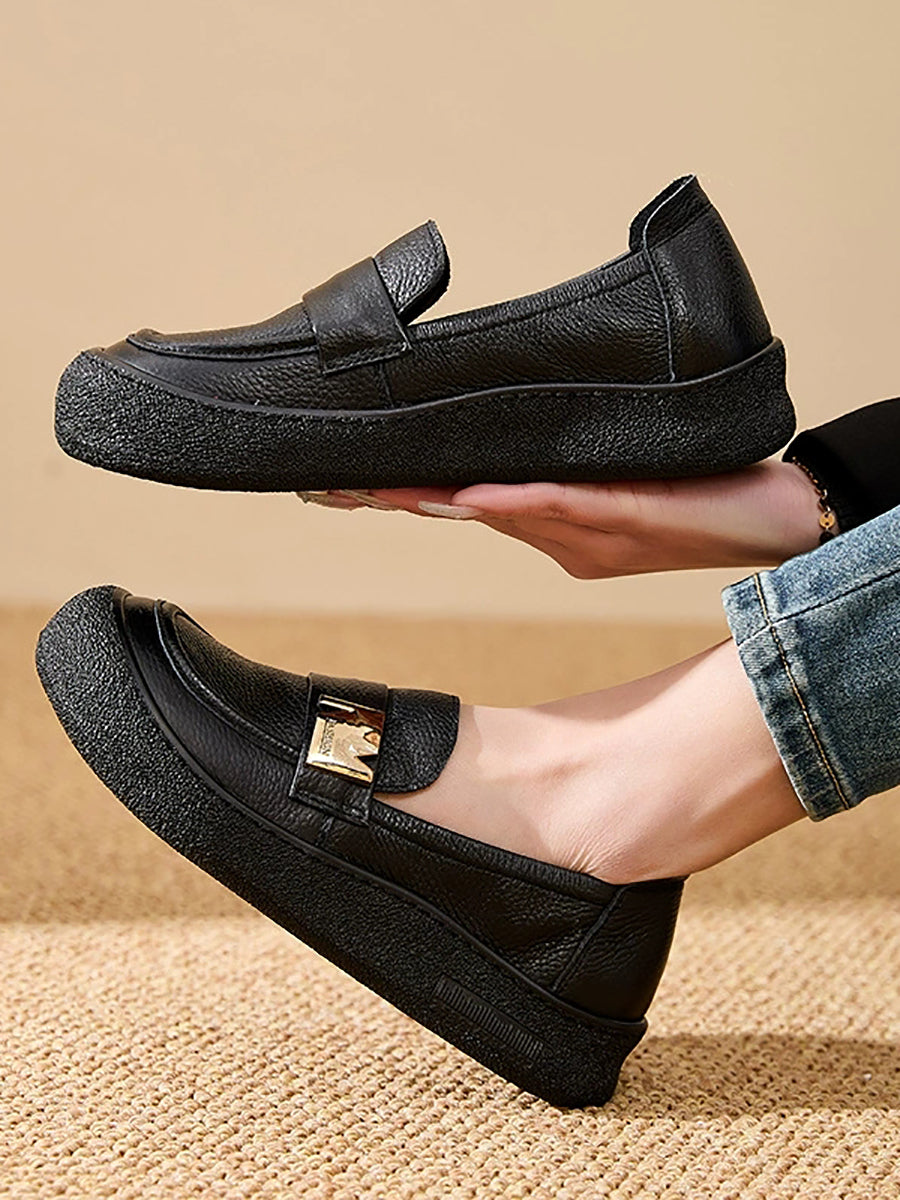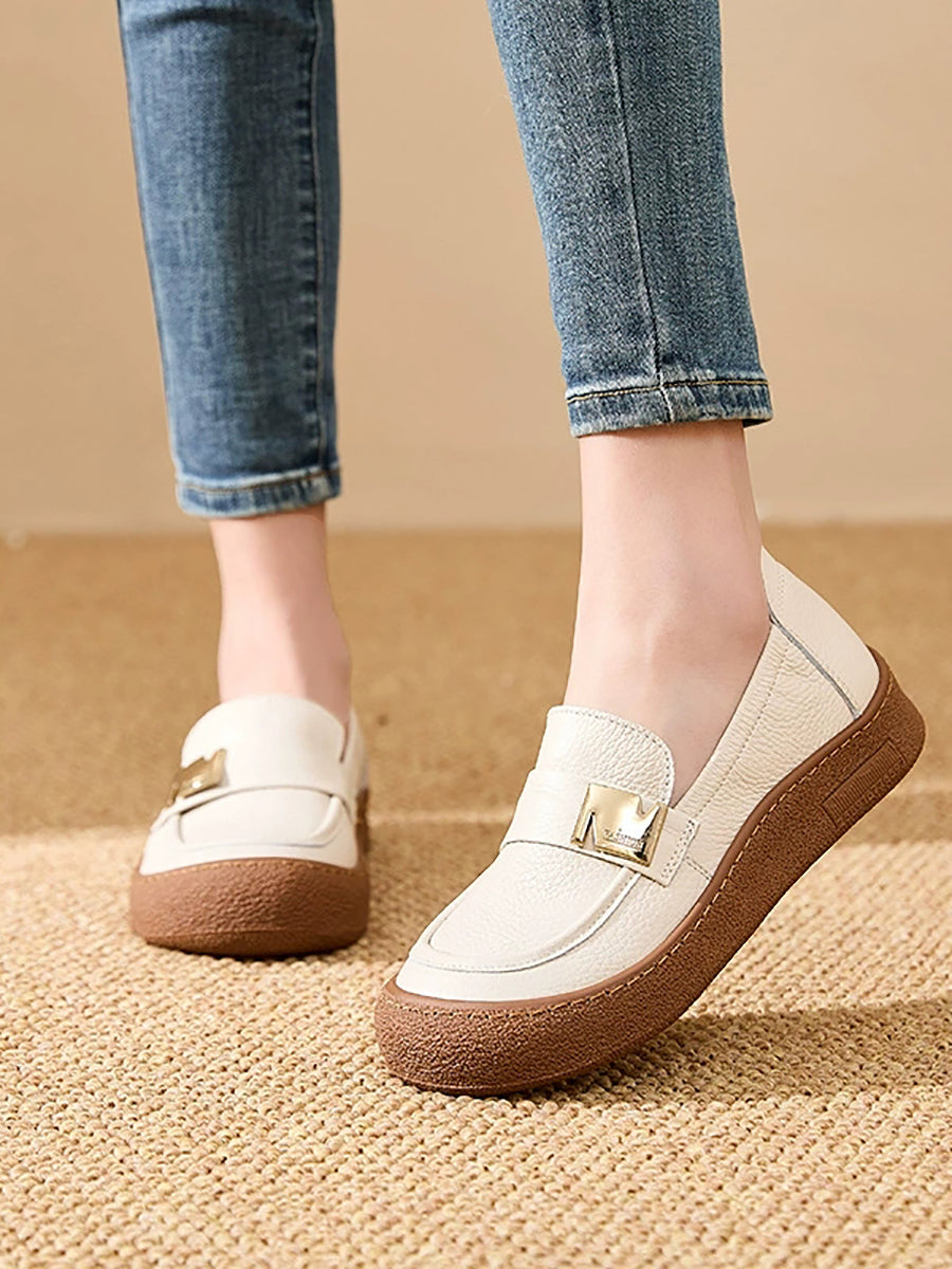 Zapatos planos vintage de piel auténtica para mujer, de primavera