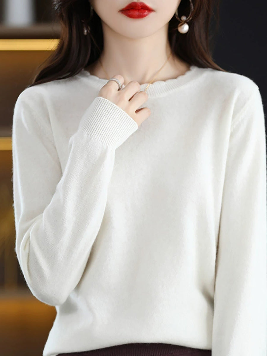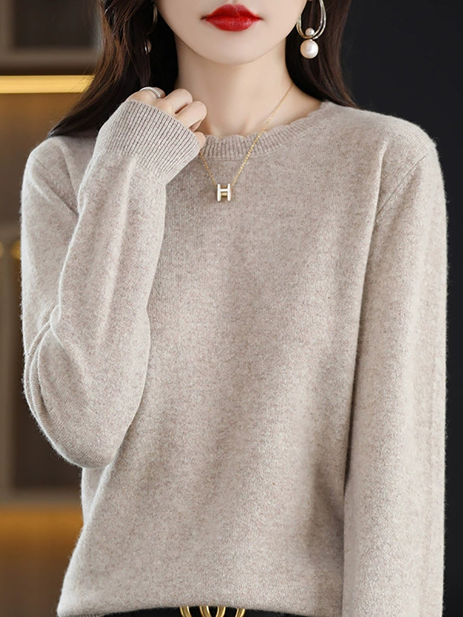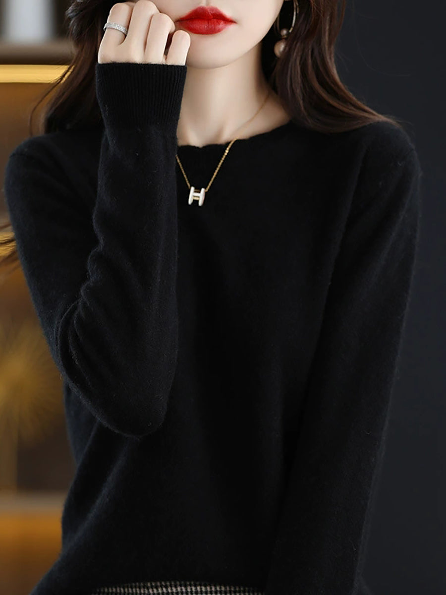 Suéter casual de primavera para mujer, color puro, cuello redondo