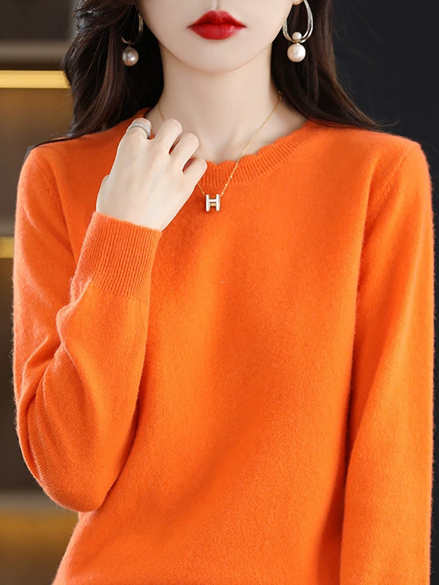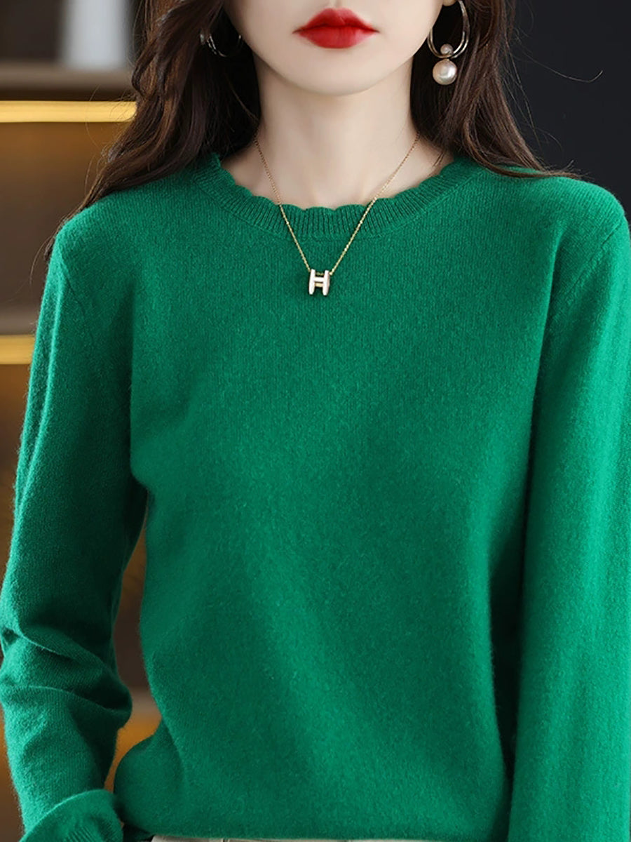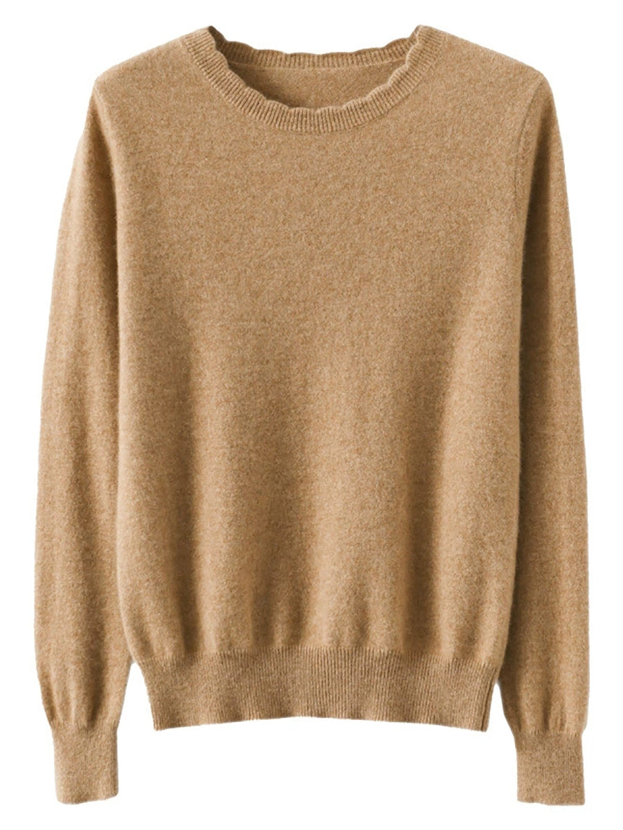 Suéter casual de primavera para mujer, color puro, cuello redondo