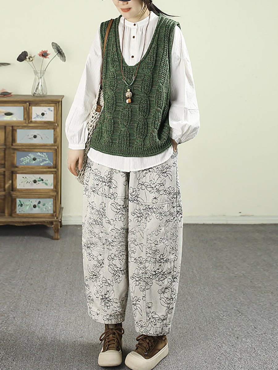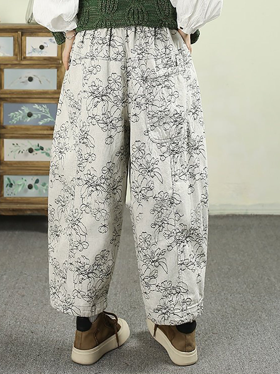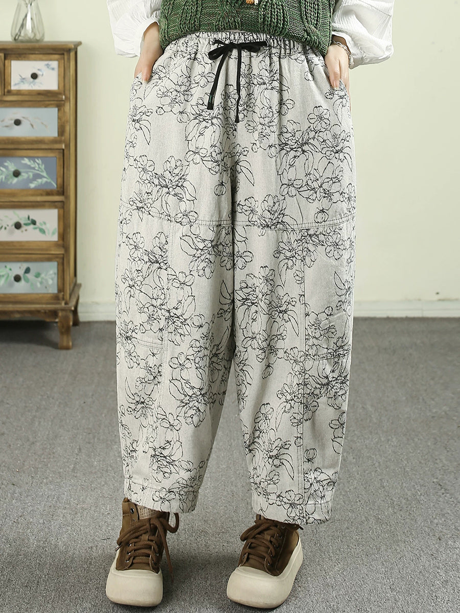 Pantalones harén de mezclilla con estampado floral de primavera para mujer