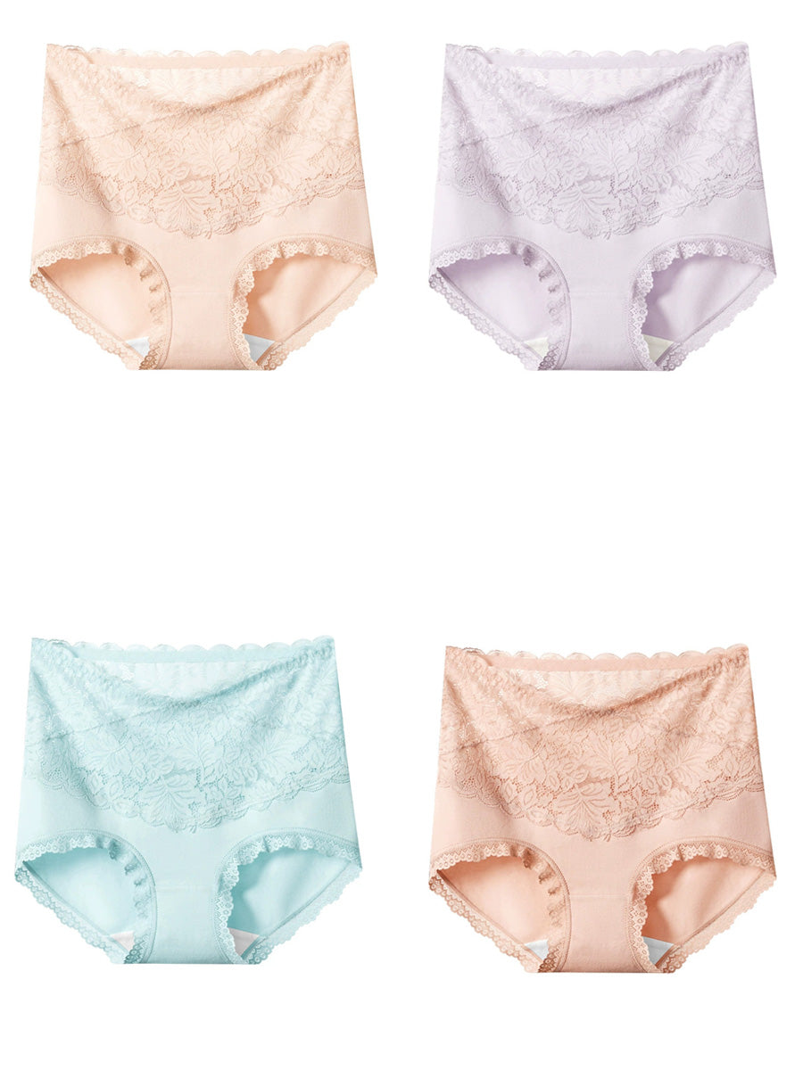 4 piezas de ropa interior de cintura alta con encaje artístico para mujer