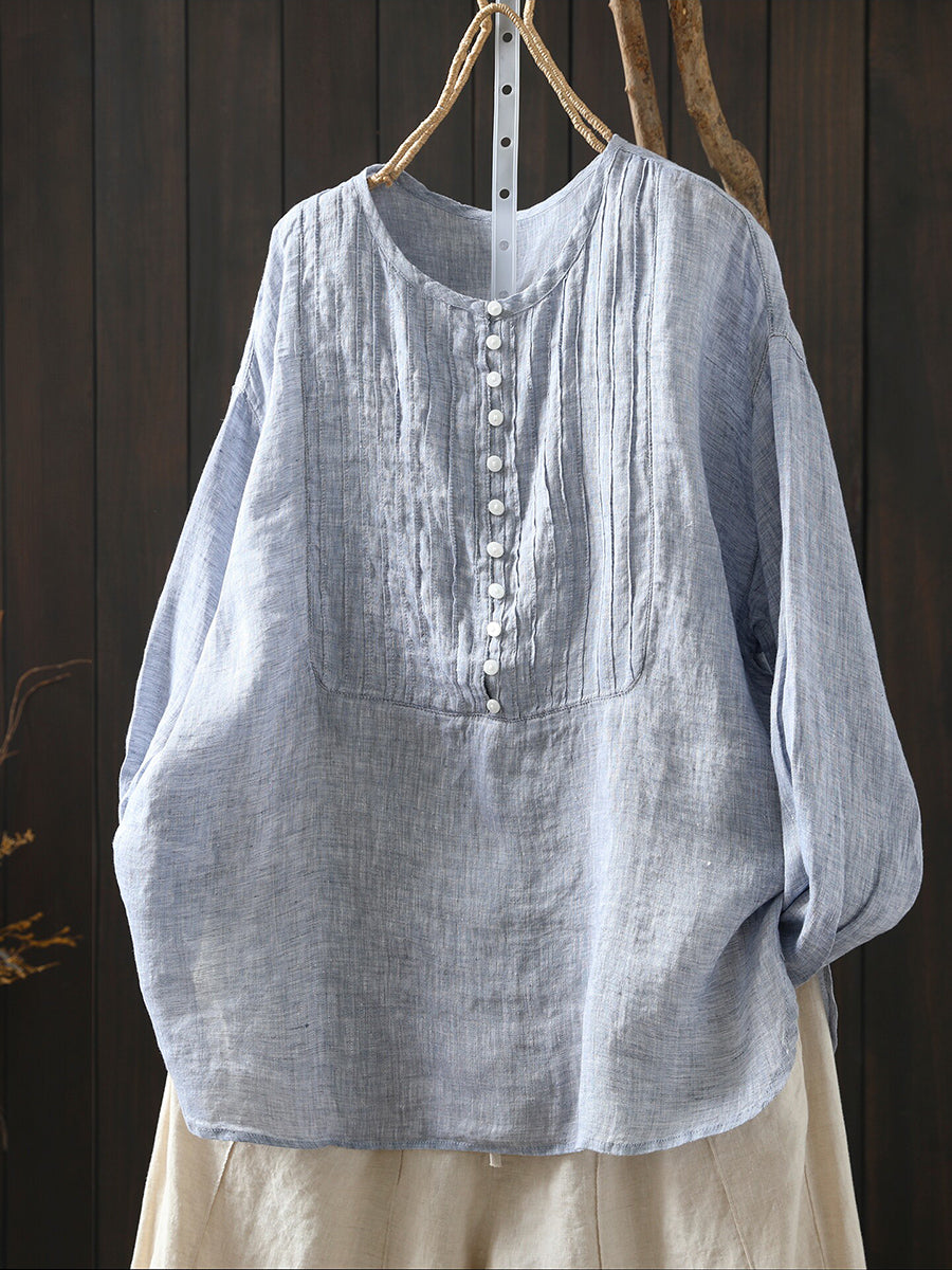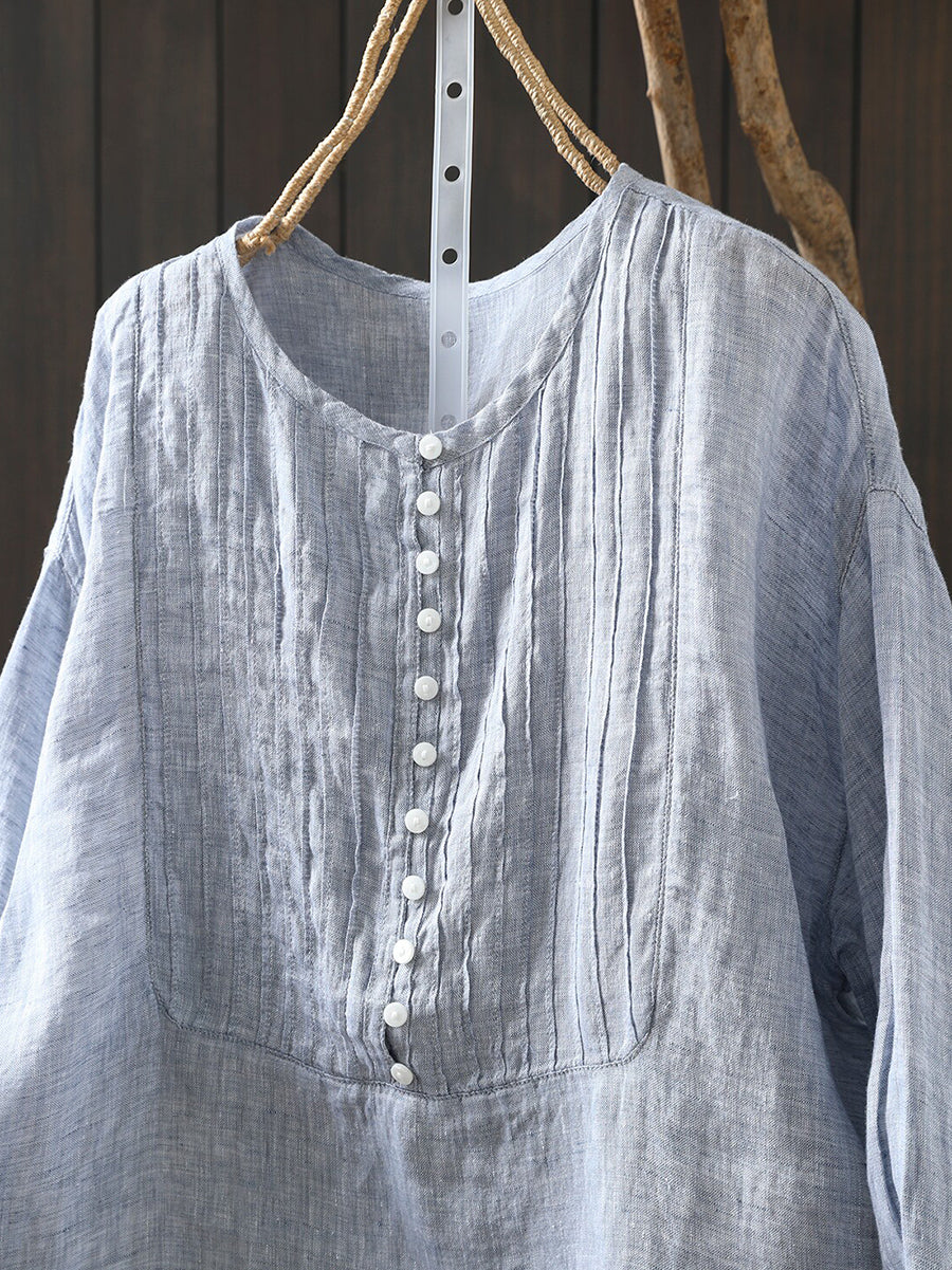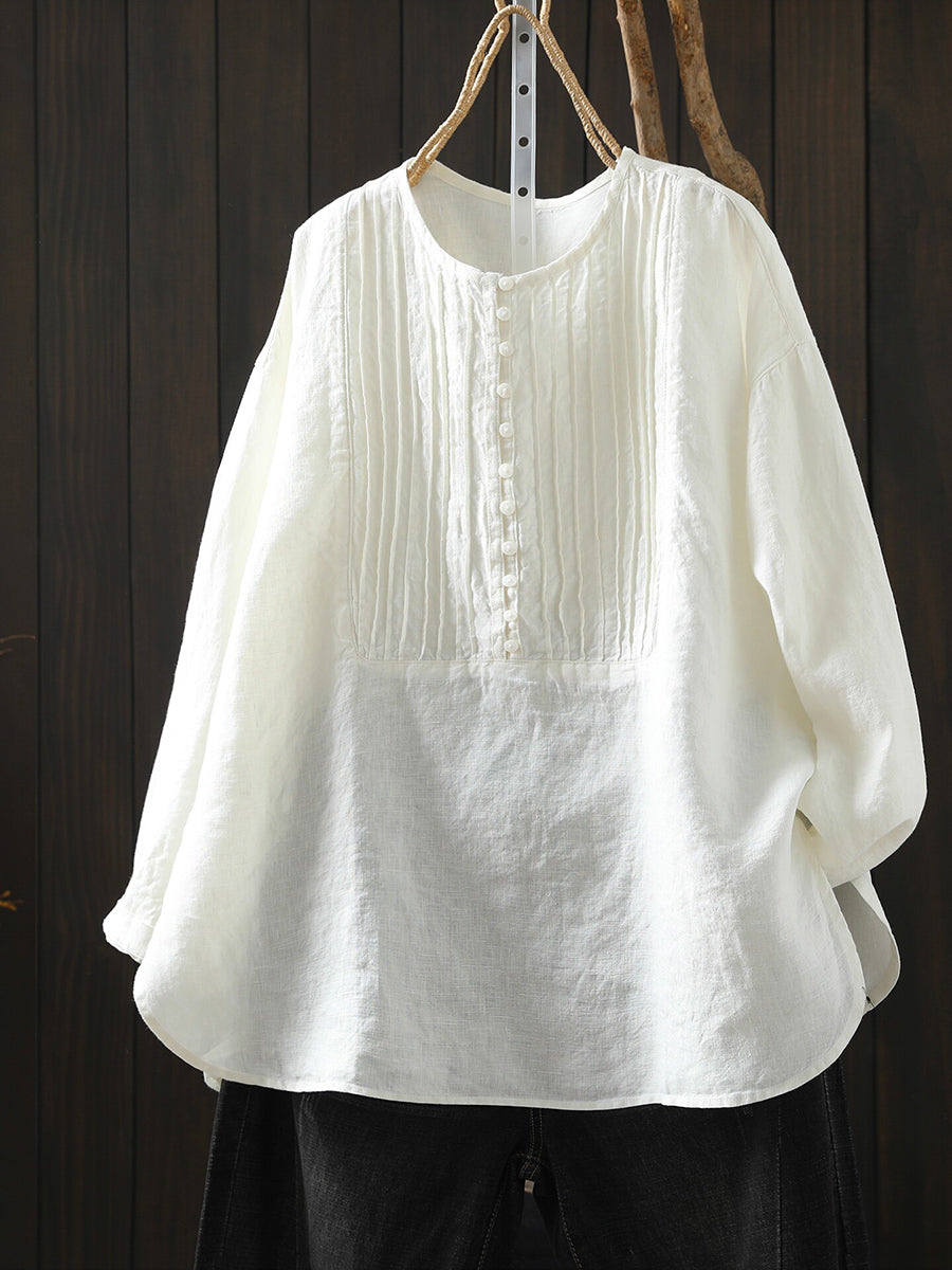 Camisa de lino 100 % fruncida Artsy de primavera para mujer