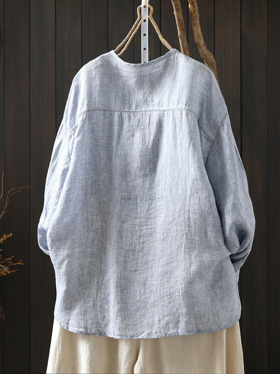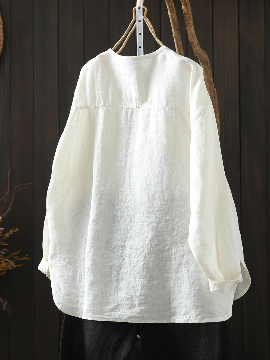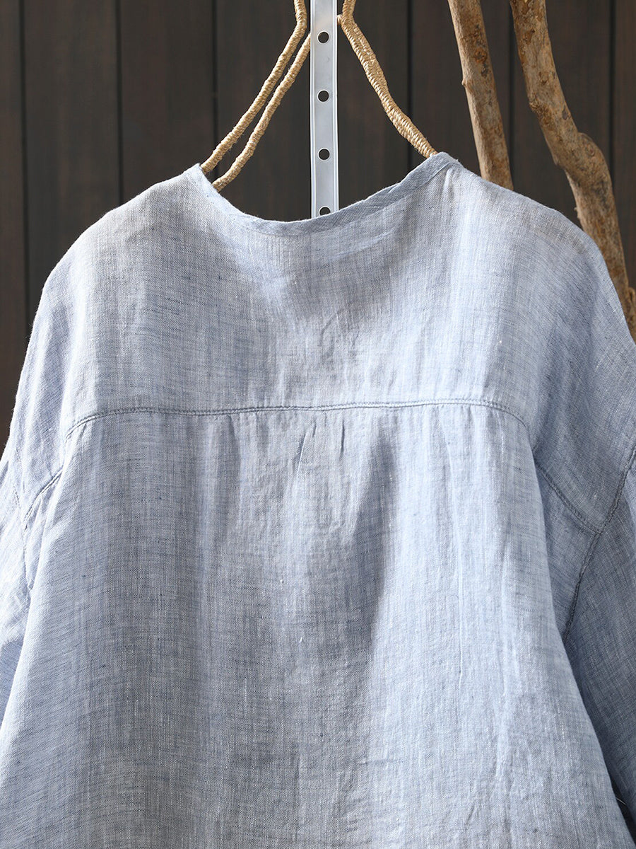 Camisa de lino 100 % fruncida Artsy de primavera para mujer