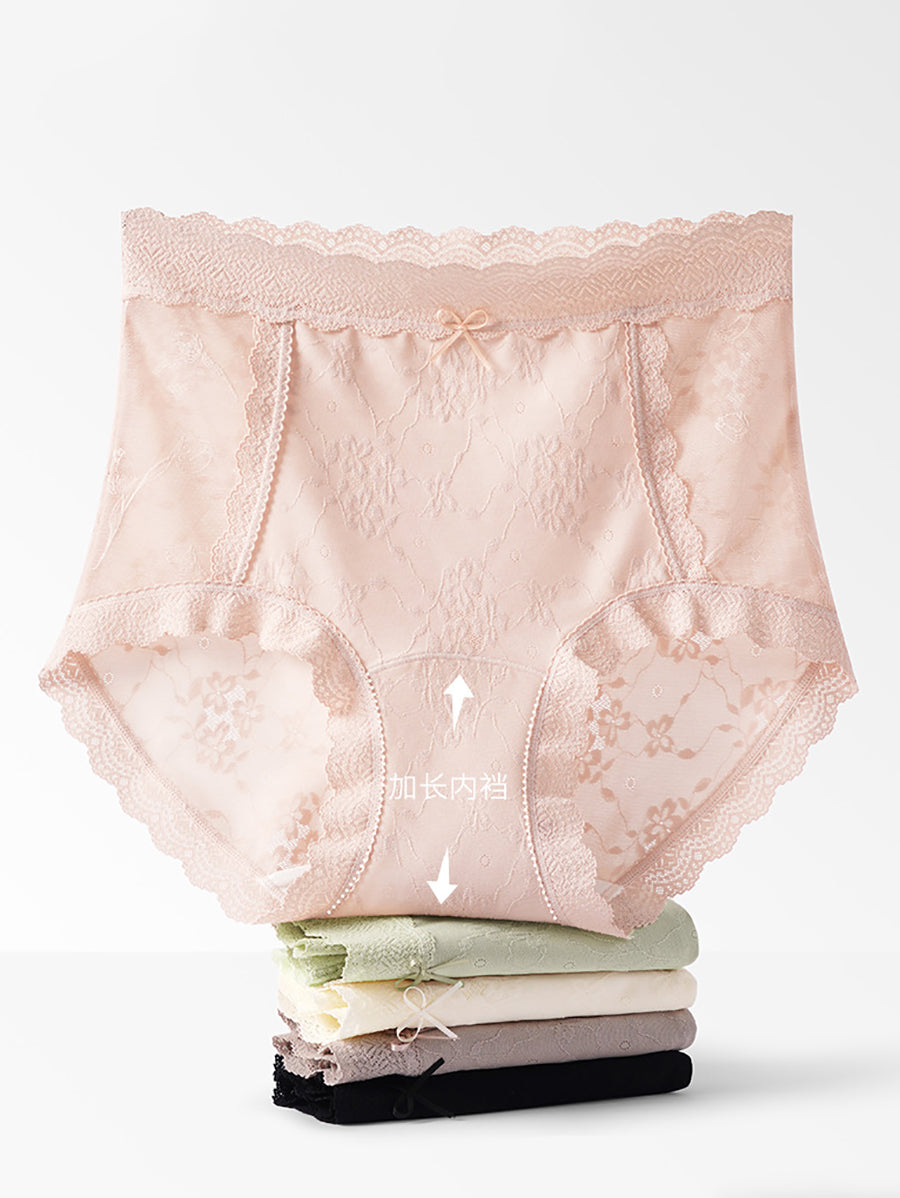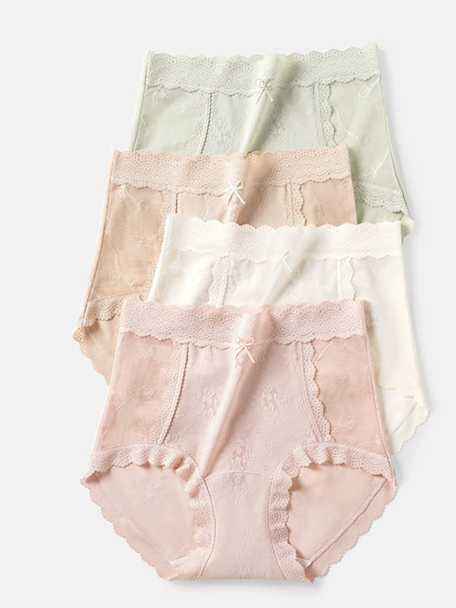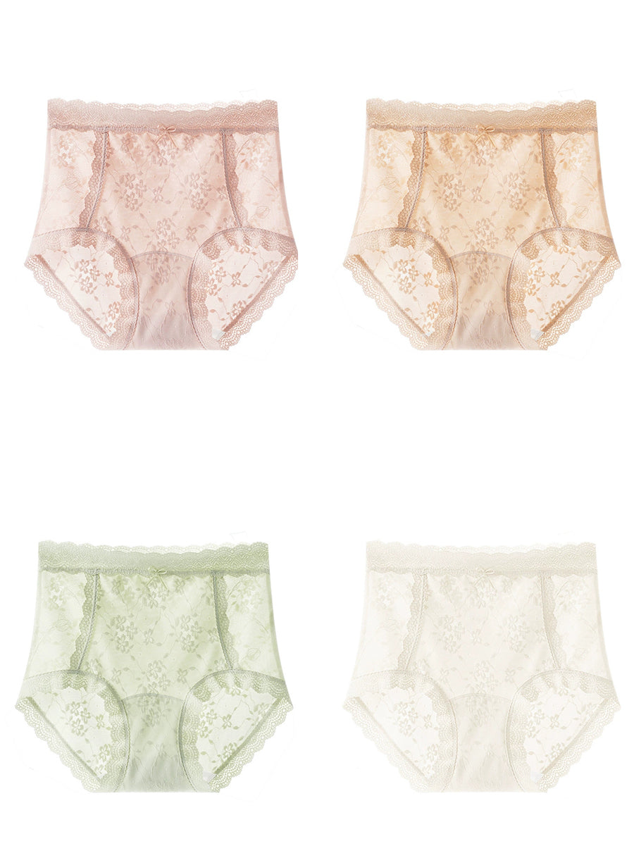 4 piezas de ropa interior de cintura alta con encaje floral artístico para mujer