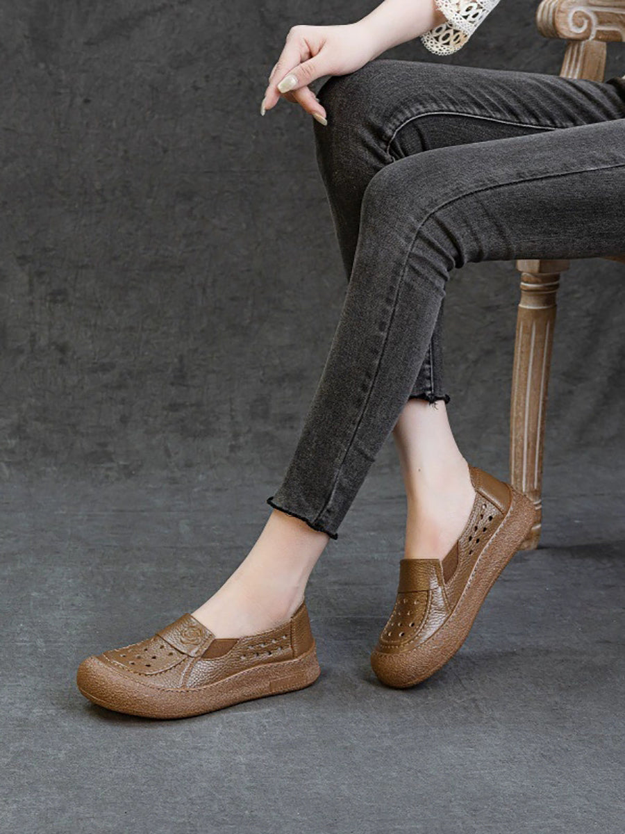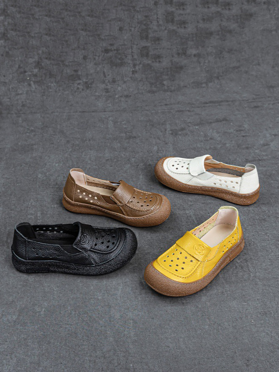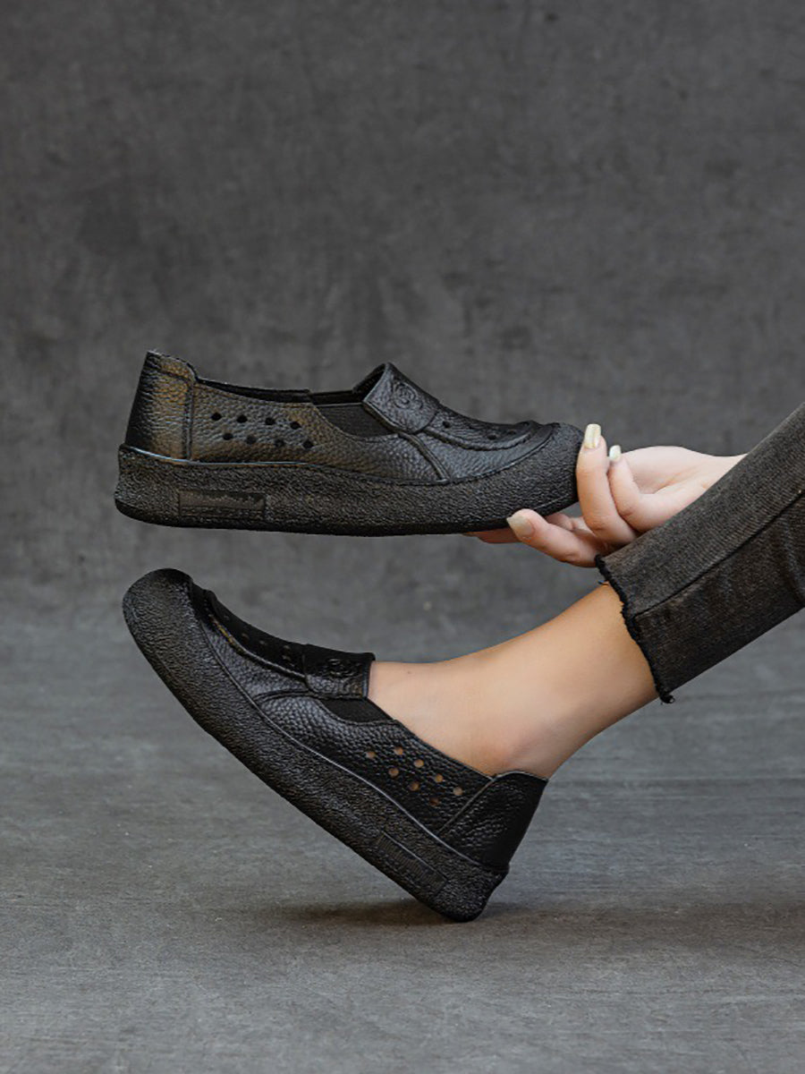Zapatos planos calados de cuero genuino de verano para mujer
